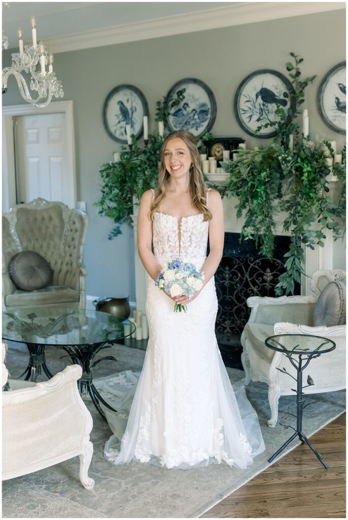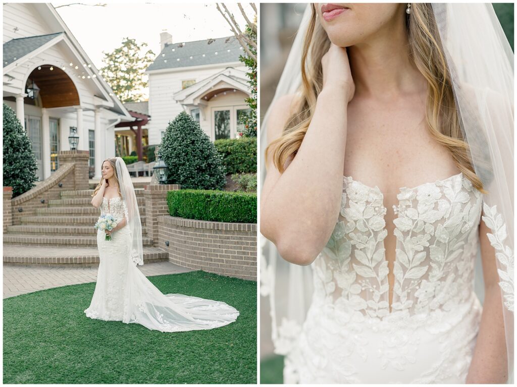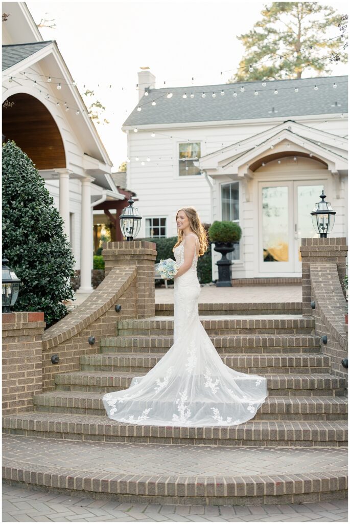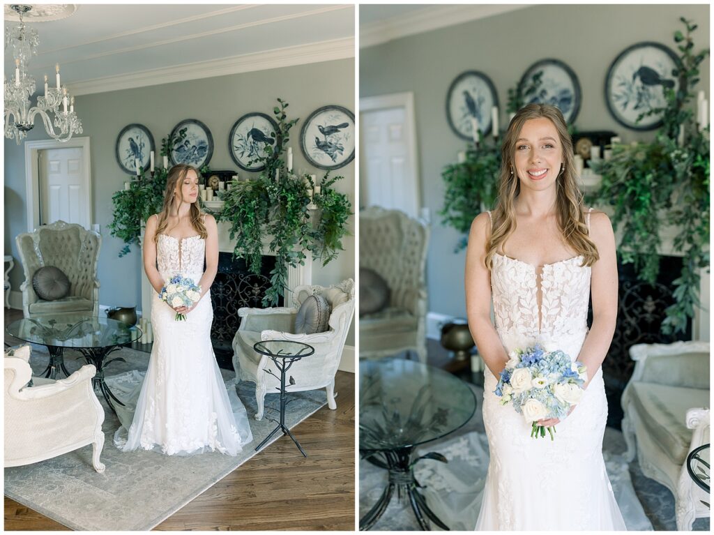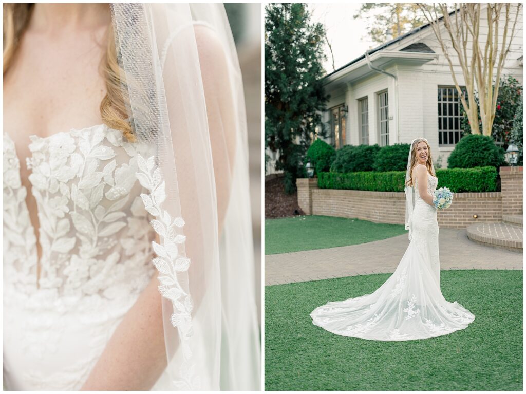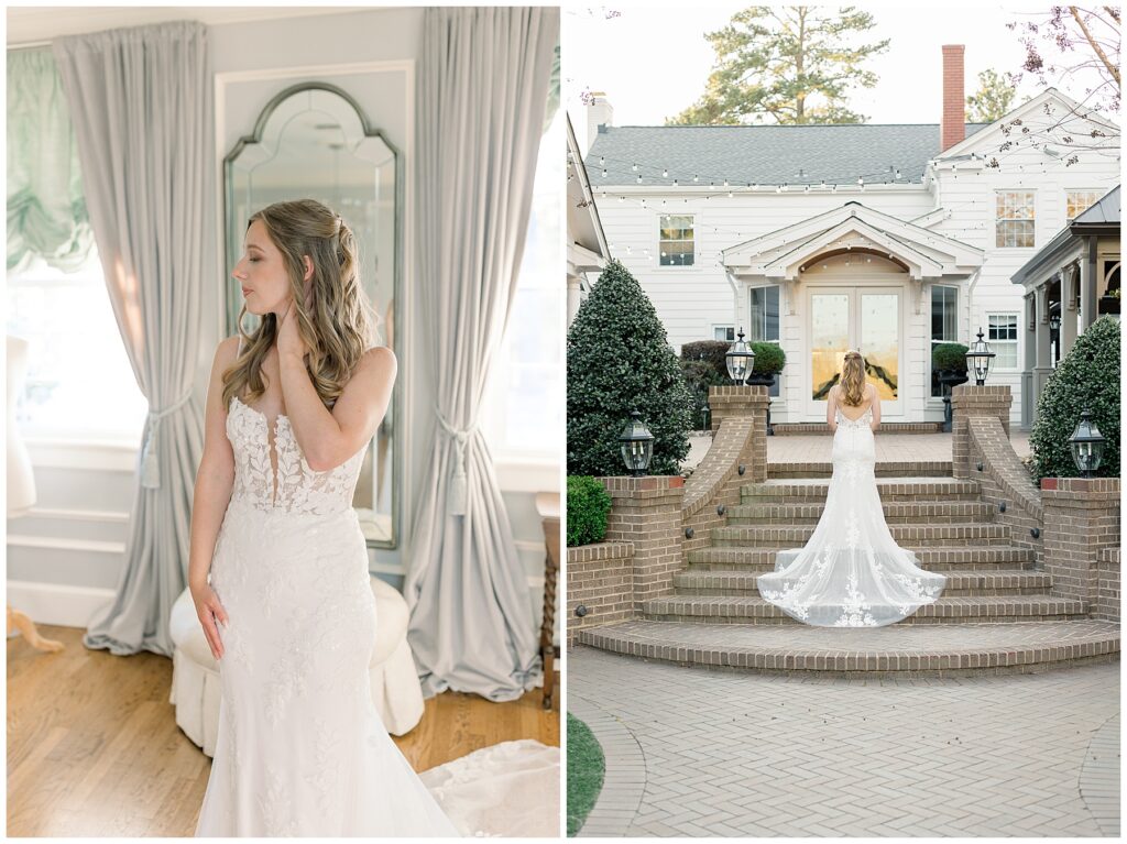 After almost a year since our Engagement Session together, I was so looking forward to catching up with Margaret & photographing her again! We had a beautiful sunny & mild March day… BUT it was the first full day of POLLEN SEASON, and if you’re from eastern NC – you know how crazy that first really full day of pollen is!!!! Margaret was a great sport with it all – shooting indoors for most of our session, and then allowing us to shoot some outdoors once Phillip blew off the outdoor areas (shoutout to Phillip, thank you!!)