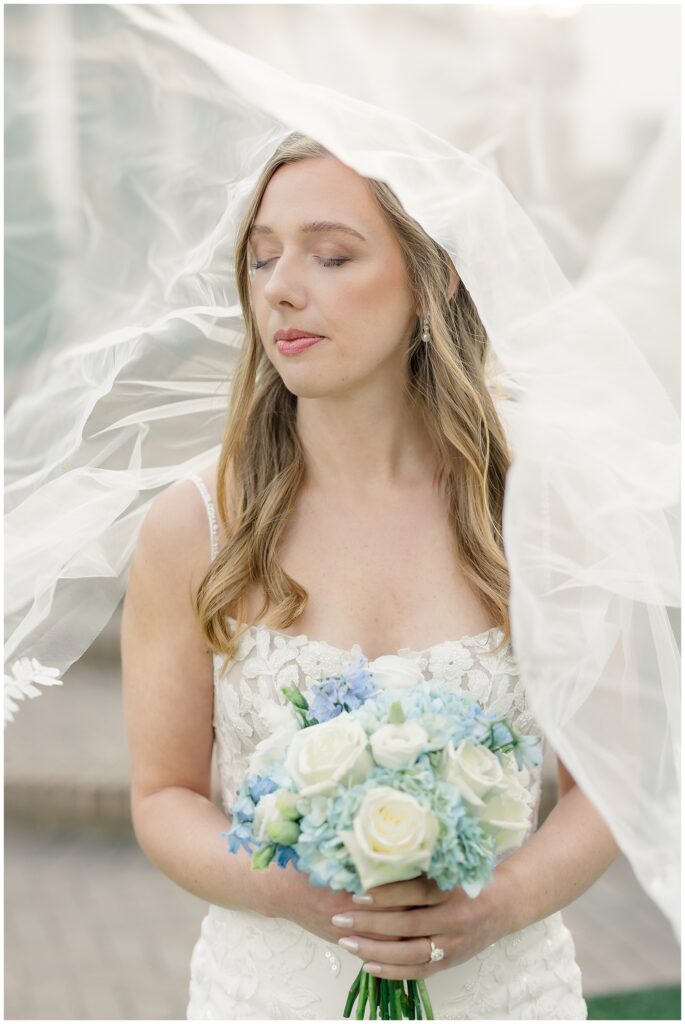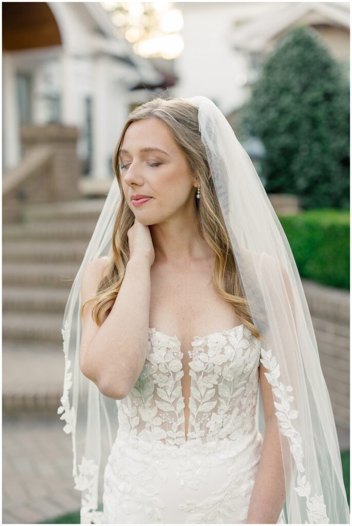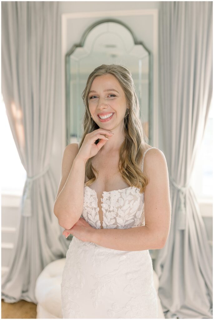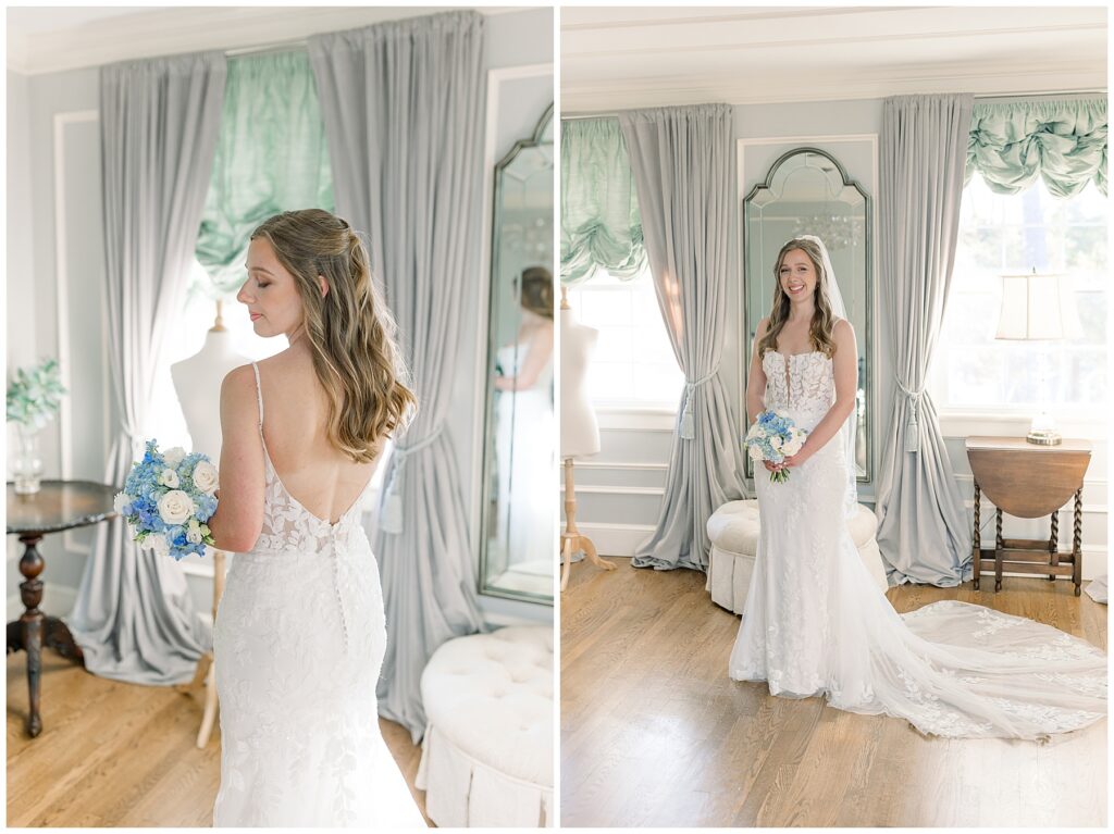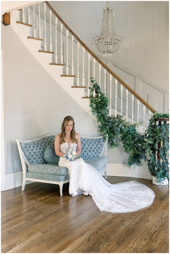 After almost a year since our Engagement Session together, I was so looking forward to catching up with Margaret & photographing her again! We had a beautiful sunny & mild March day… BUT it was the first full day of POLLEN SEASON, and if you’re from eastern NC – you know how crazy that first really full day of pollen is!!!! Margaret was a great sport with it all – shooting indoors for most of our session, and then allowing us to shoot some outdoors once Phillip blew off the outdoor areas (shoutout to Phillip, thank you!!)