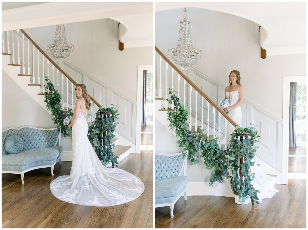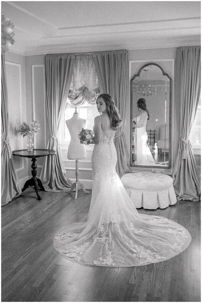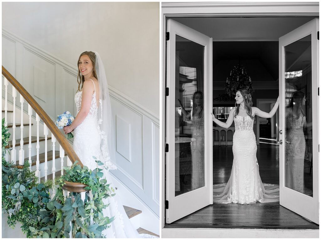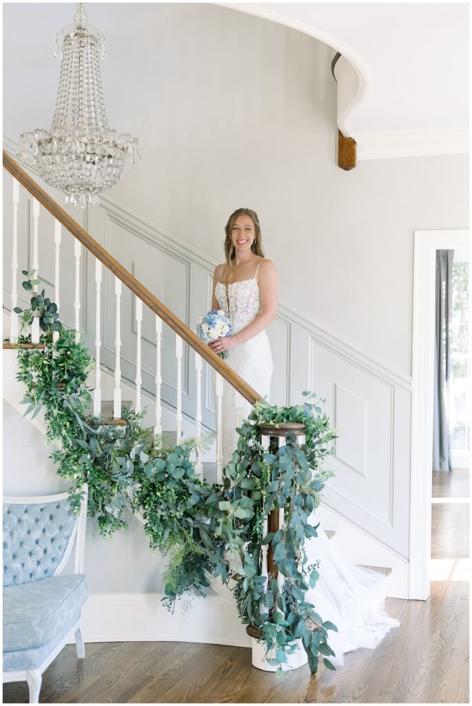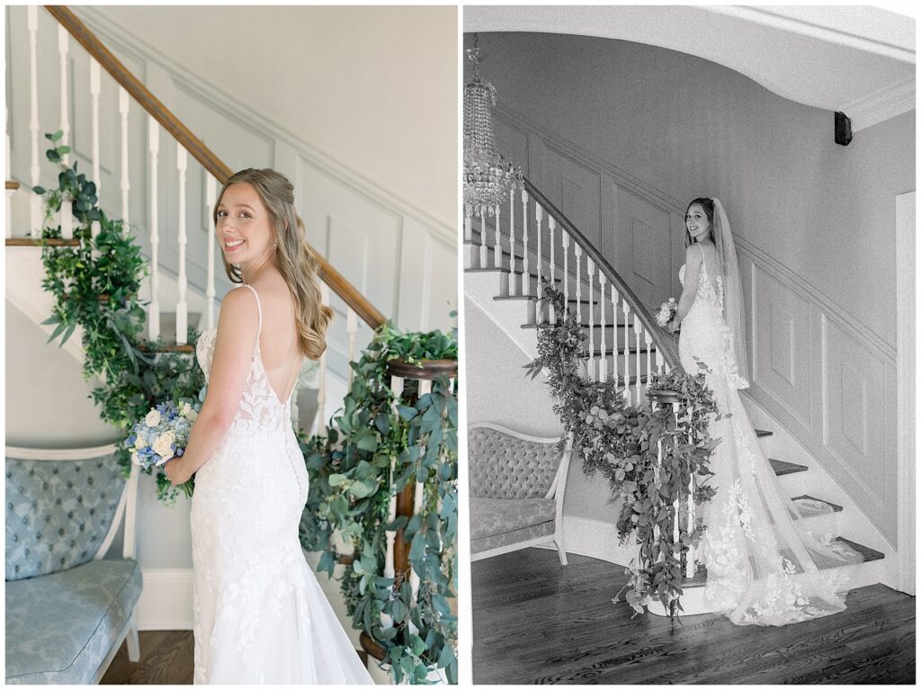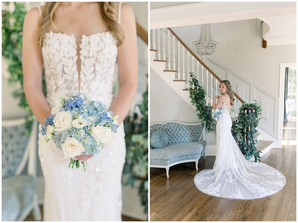 After almost a year since our Engagement Session together, I was so looking forward to catching up with Margaret & photographing her again! We had a beautiful sunny & mild March day… BUT it was the first full day of POLLEN SEASON, and if you’re from eastern NC – you know how crazy that first really full day of pollen is!!!! Margaret was a great sport with it all – shooting indoors for most of our session, and then allowing us to shoot some outdoors once Phillip blew off the outdoor areas (shoutout to Phillip, thank you!!)