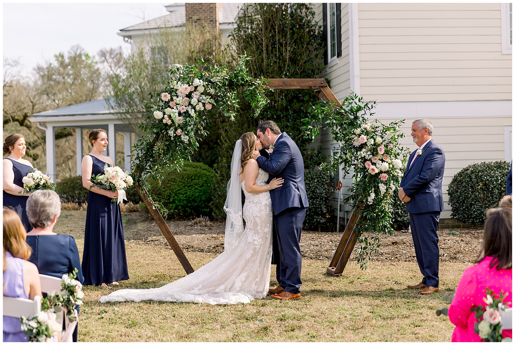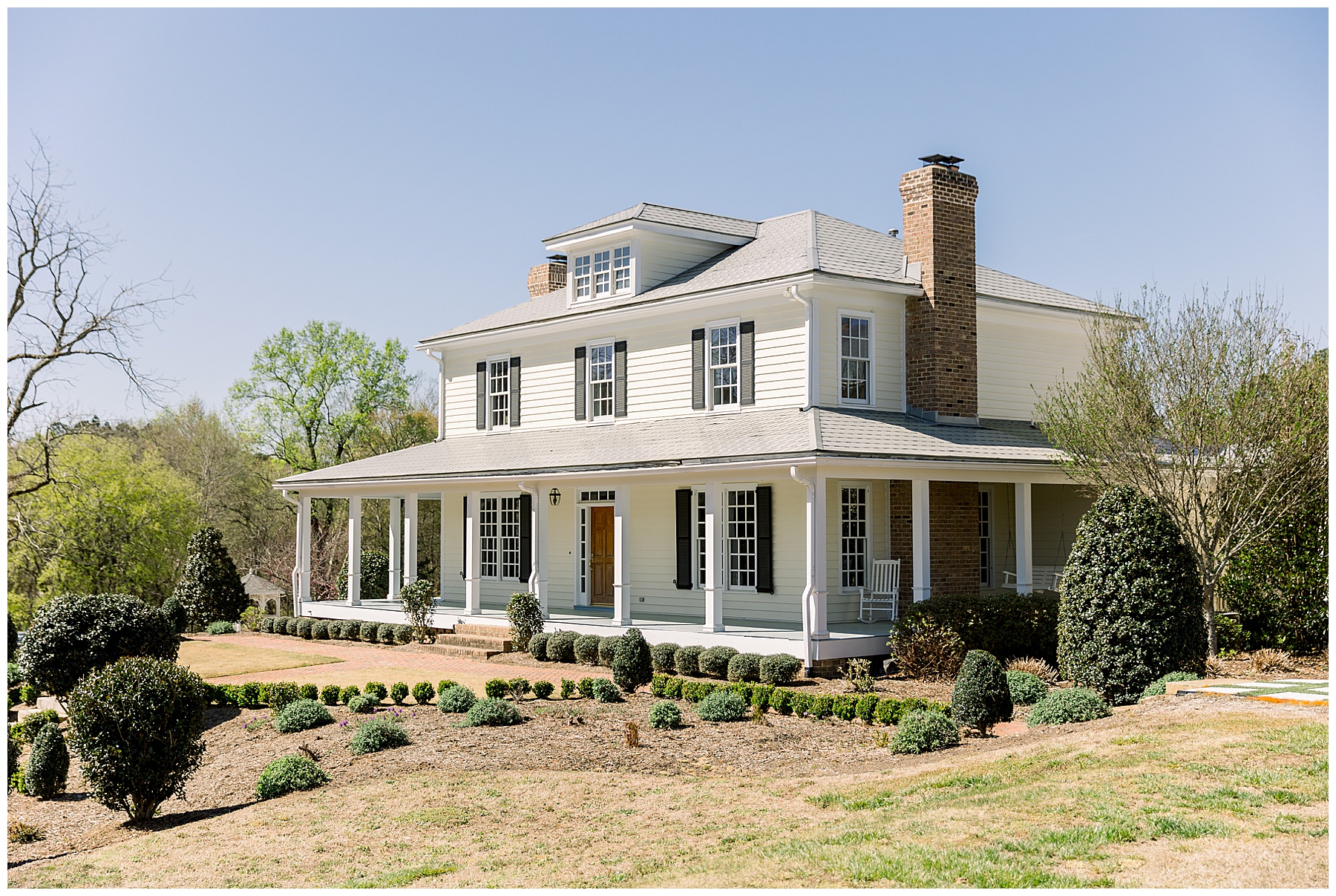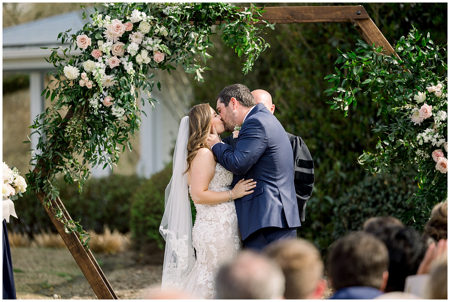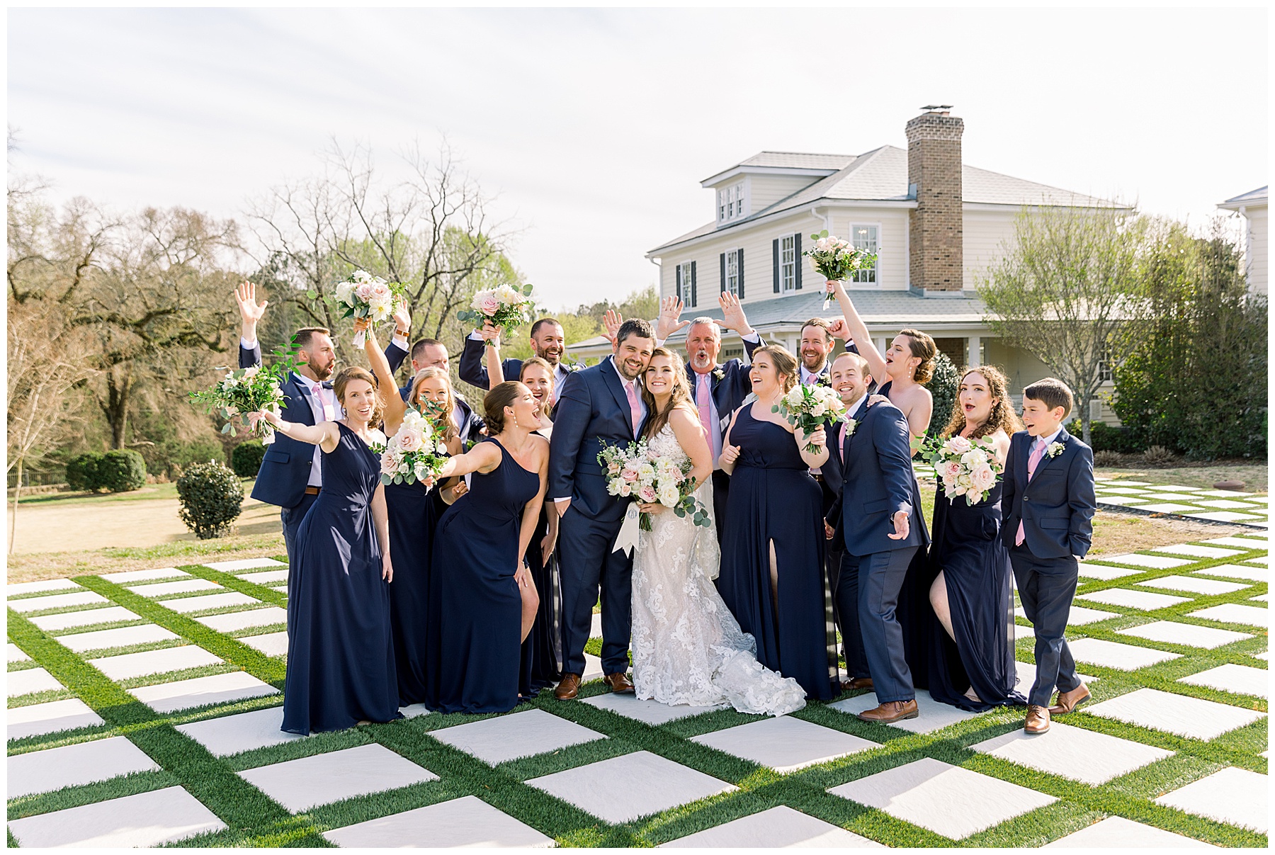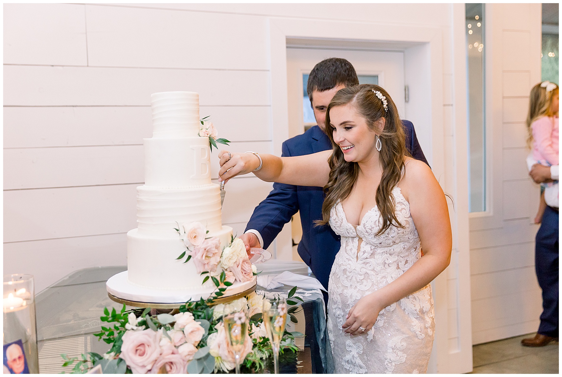 After the ceremony & all the portraits afterwards – they kicked off a fun reception! Toasts and first dances, Cook Shack catered some southern food for dinner, the most beautiful cake was cut, and then DANCING started! Their guests had a great time enjoying both the dance floor, and the beautiful evening outside on the patio!