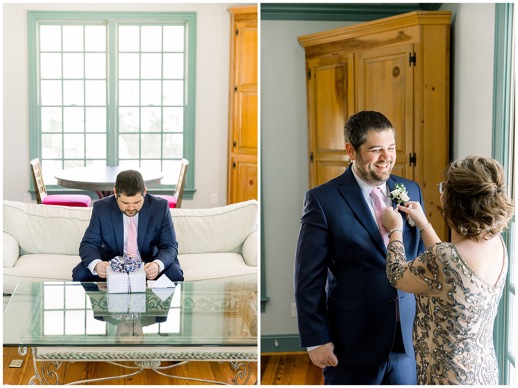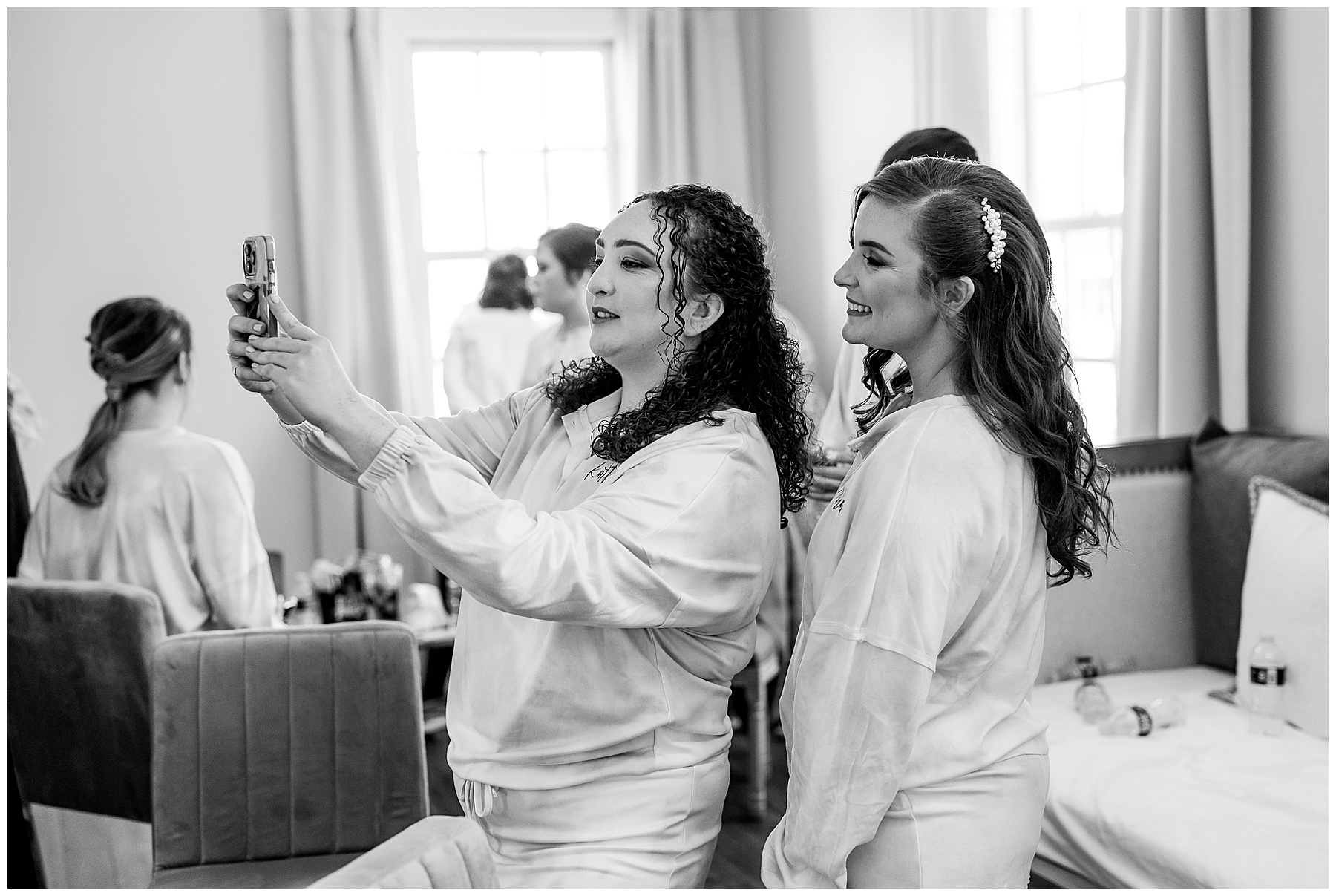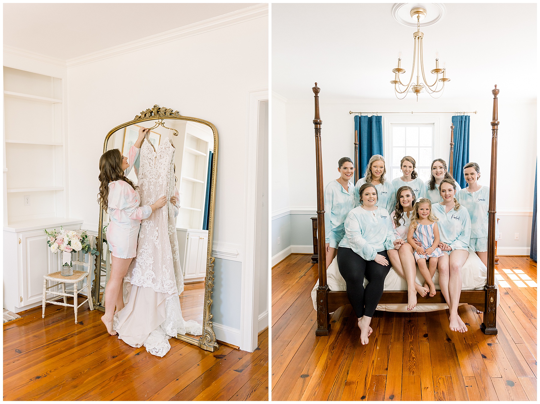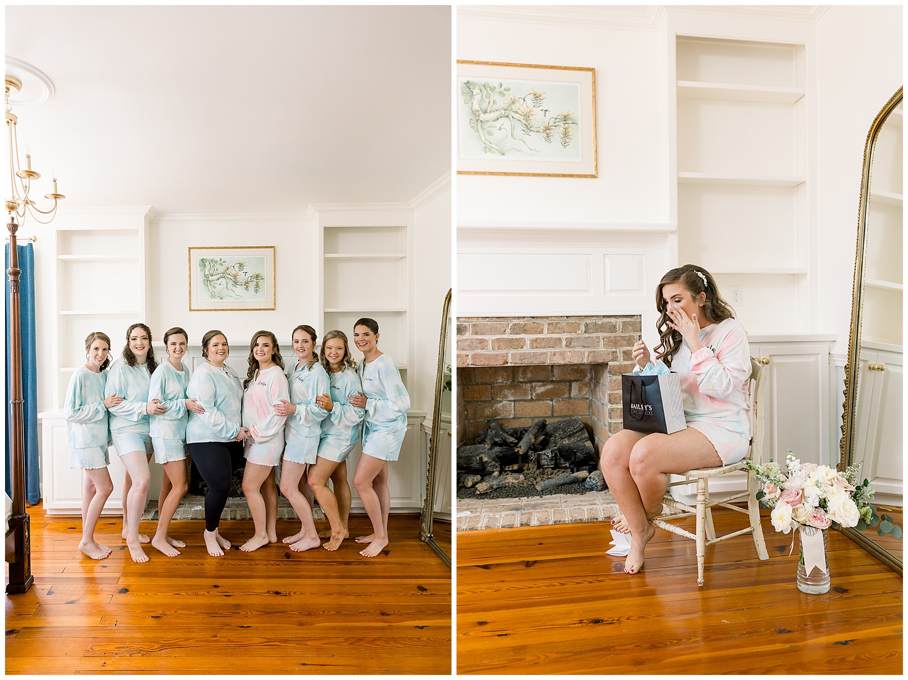 This was only our 2nd Walnut Hill wedding day, and we were excited to see all the new renovations in person. All the girls were upstairs enjoying the new getting-ready room, listening to music, and having hair & makeup done! They were dressed in super comfy tye-dye PJ sets, and they were all so sweet. Marla looked absolutely stunning and was so calm for a bride!!! She got emotional reading her card from Andrew, and it was so special to capture that moment!