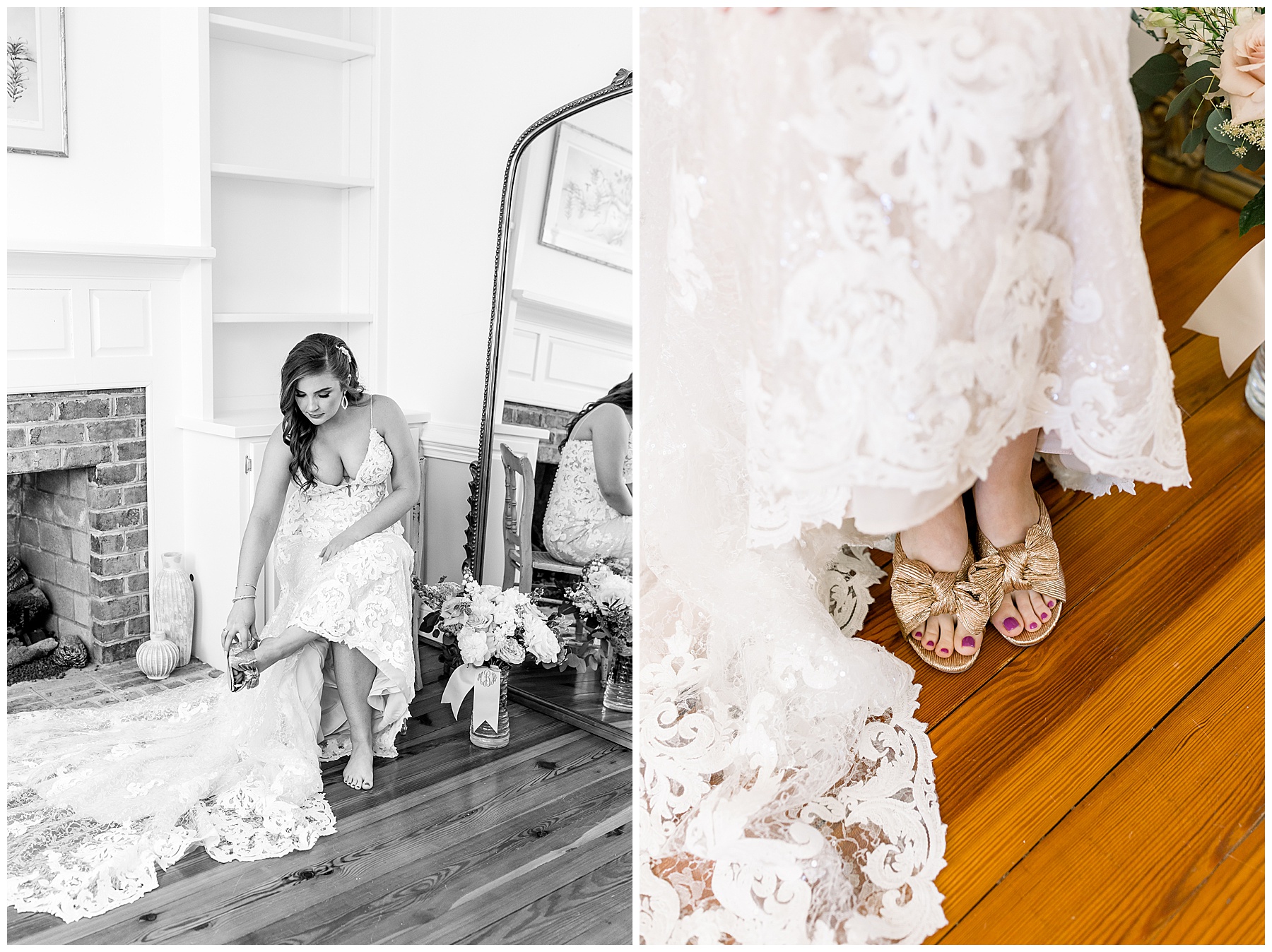 I especially loved photographing Marla’s details that morning. Her invitation suite was classic, yet with the most beautiful feminine script font that I really loved. Her bouquet by Brushed by Bec was whimsical and loose with so many unique textures. Marla had ordered a custom grosgrain ribbon with her NEW initials in blue as her “something blue”. I was OBSESSED how that turned out – and hope more brides do a custom ribbon like that someday!!! Also, how fun are those shoes?! I want the gold version of those shoes to wear to next year’s holiday parties. Sooooo fun!