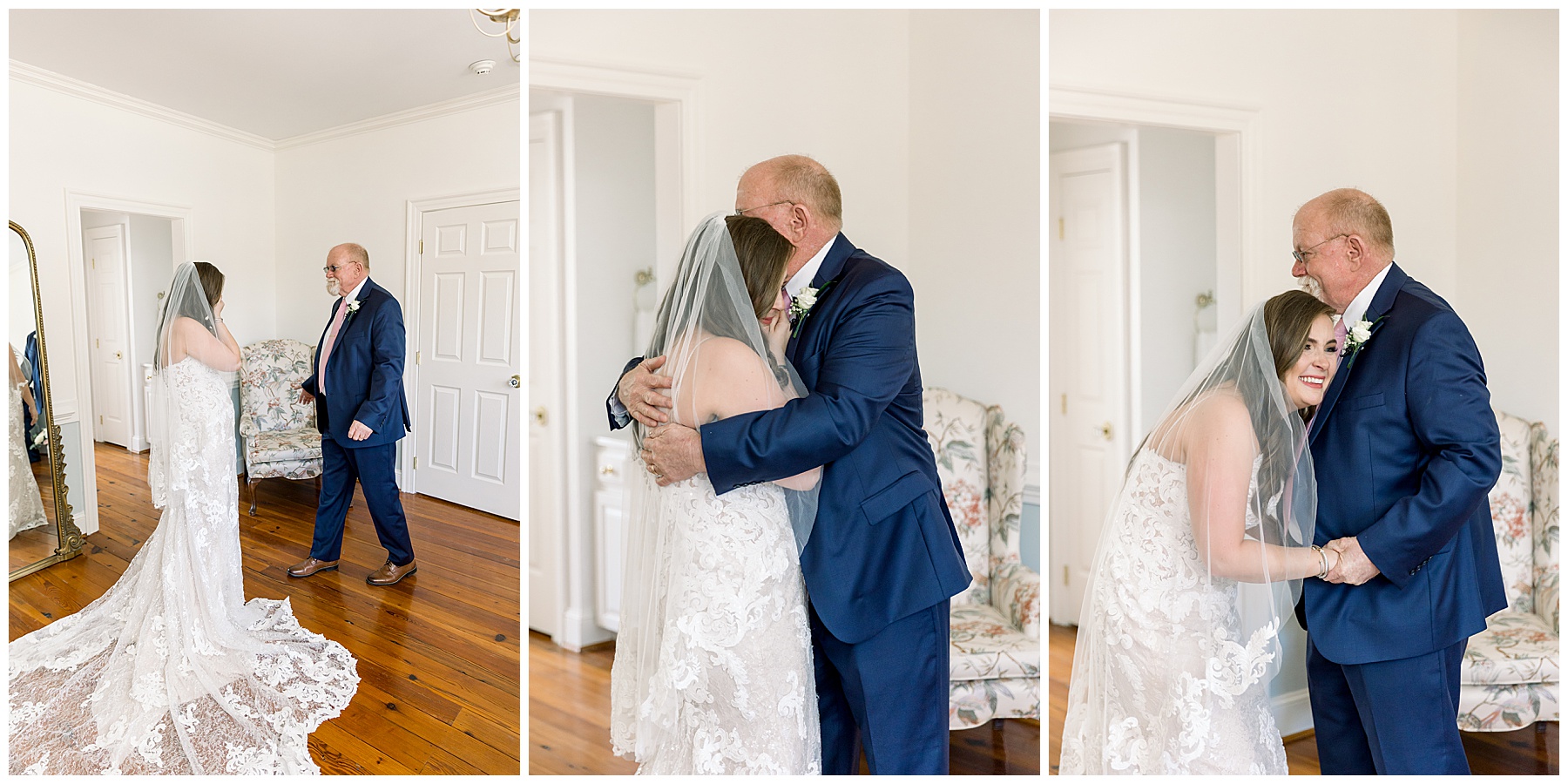 We photographed a precious First Look between Marla & her dad, and it was just the sweetest with some tears shed and hugs shared. Her dad, Dale, really wanted her whole Bridal “look” to be a complete surprise to him, so he hadn’t even peeked at her dress, photos of her trying on dresses, or even looked at her Bridal portrait. So this First Look was his first time seeing Marla as a bride, and it was really special!!!