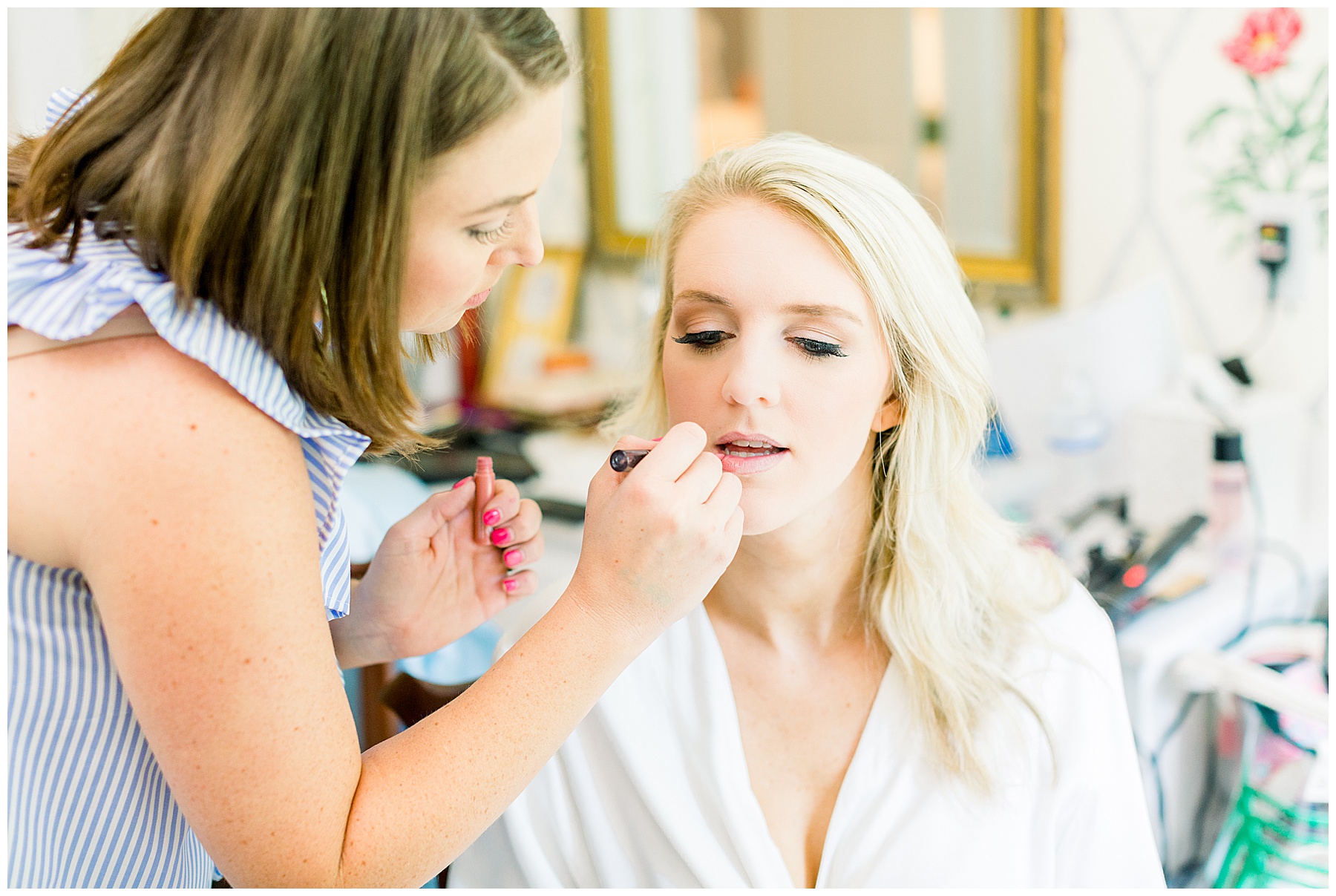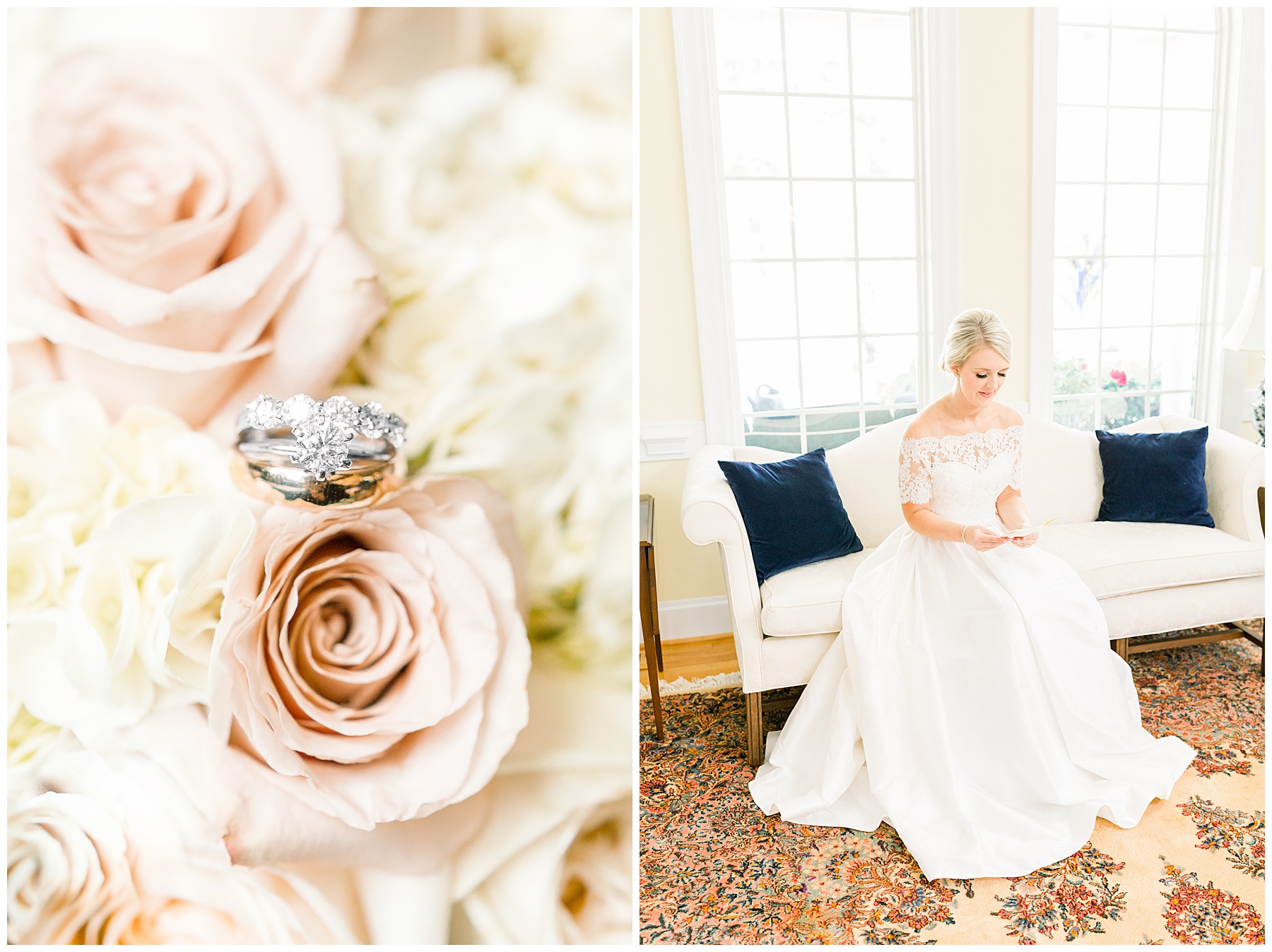 We kicked off the morning photographing all the details and getting-ready at Mary Margaret’s parents home. The team of ladies from John Michael’s were rocking out hair and makeup, and were so quick, efficient, and did a beautiful job! I really loved the hydrangea robes that Mary Margaret chose for her bridesmaids to wear, and I used hydrangeas from her mom’s backyard in the detail photos to tie everything in together!