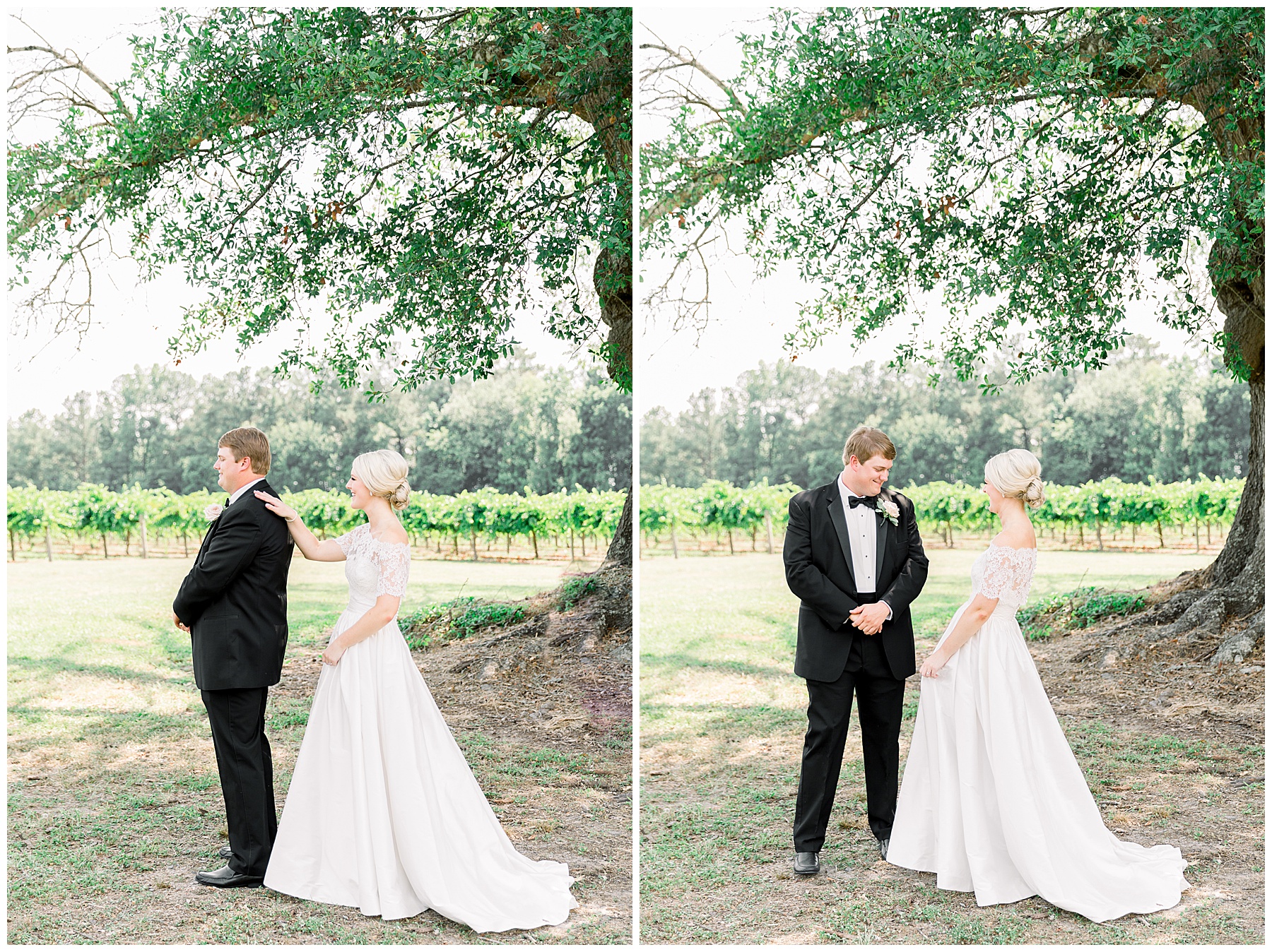 Mary Margaret and John Wesley chose another piece of family property for their First Look and portraits, and there was a HUGE oak tree that her grandma loved. We took all our portraits there, and it was so pretty!!!