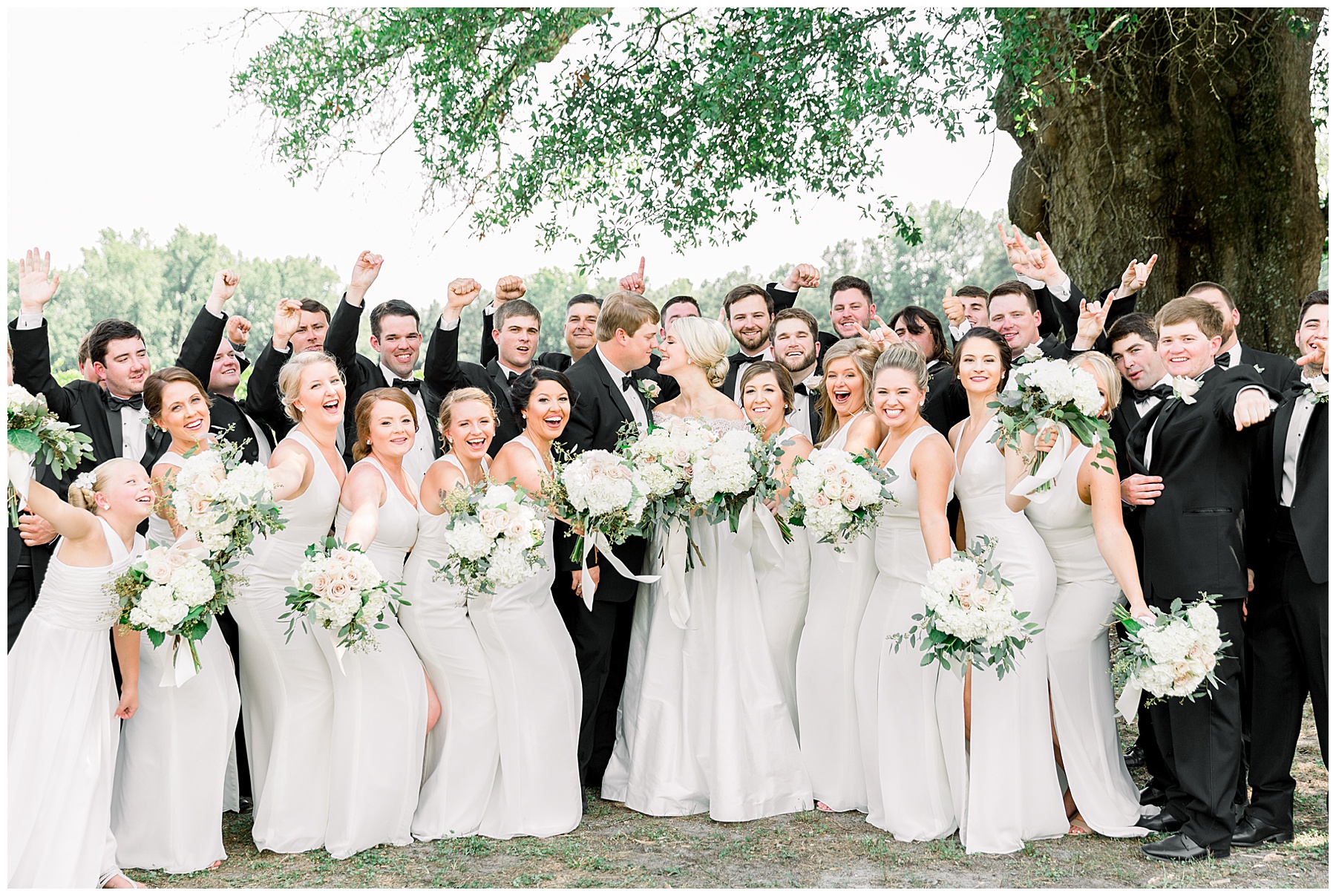 A day that COULD have been chaotic with 5 locations, a 37-person bridal party, and 500 guests all in 93 degrees was instead one of the BEST DAYS EVER…. all because of how KIND, loving, and FUN every single person we encountered were! Mary Margaret was bursting with laughter all day with the BIGGEST smiles, John Wesley was joking around and having the best time, and the bridal parties were a ton of fun and just really sweet!