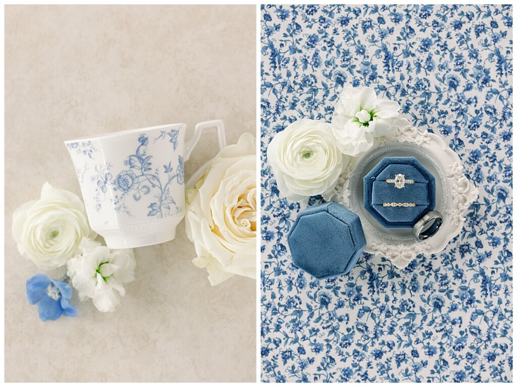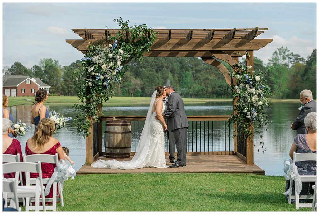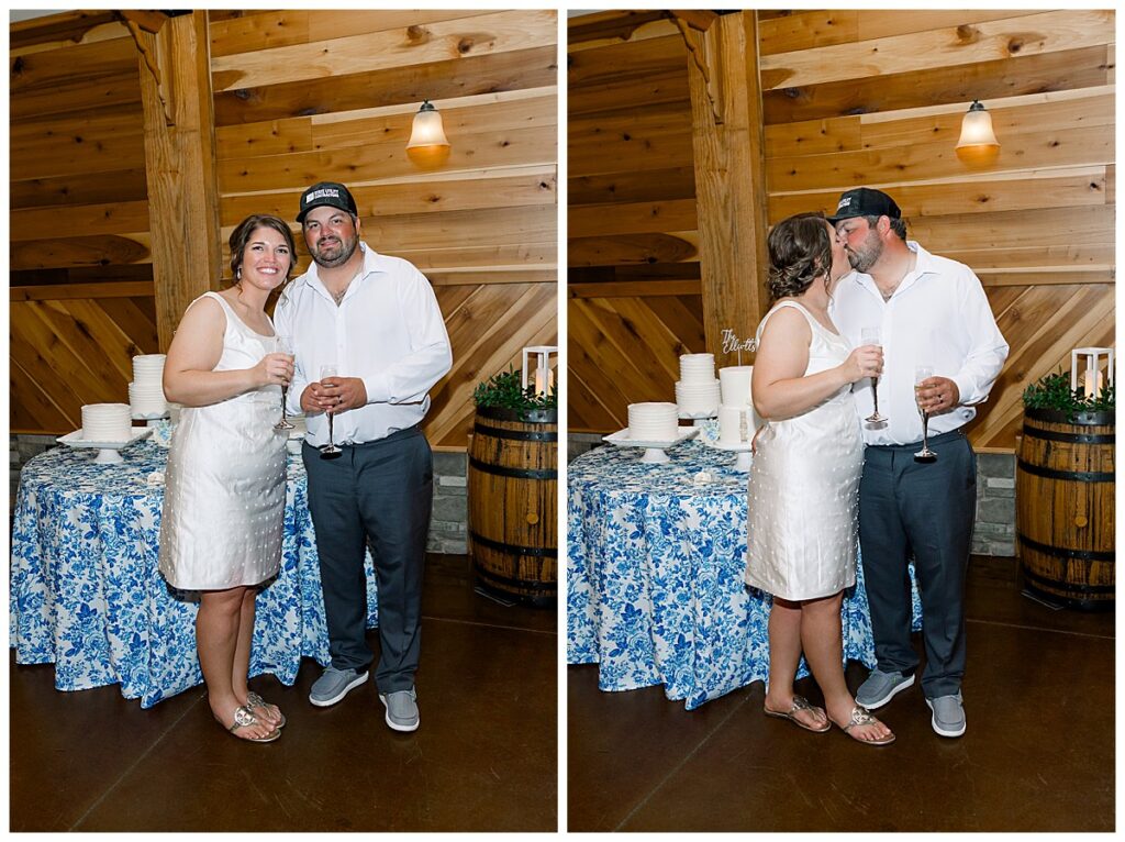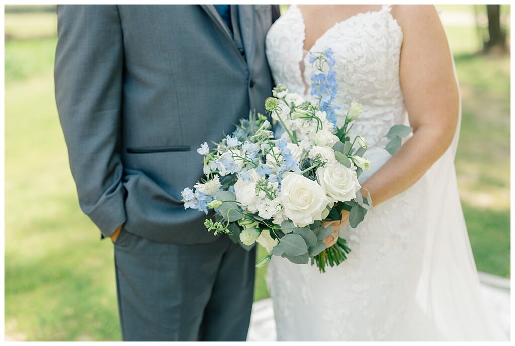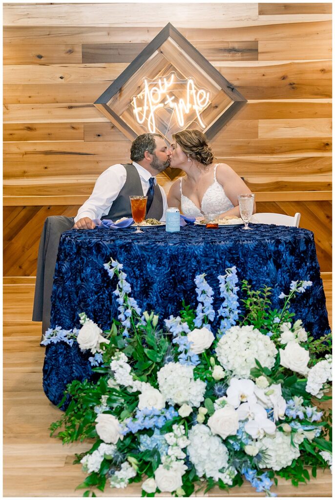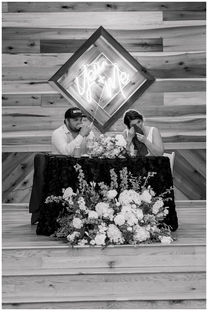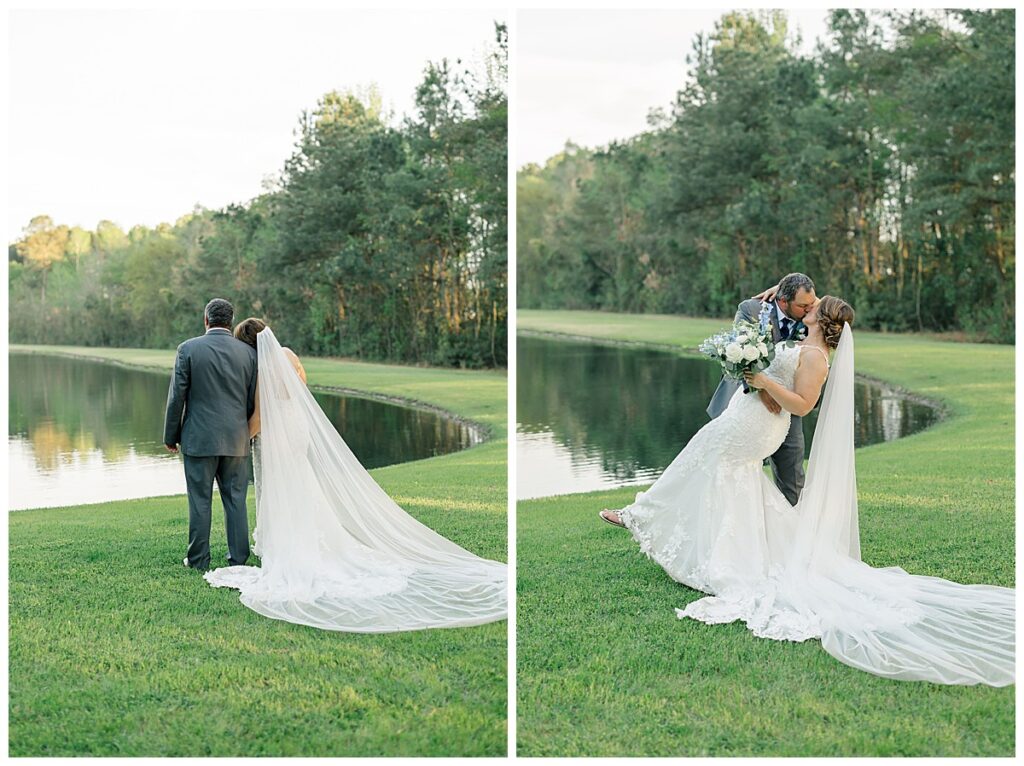 The ceremony was SO stunning at the pond, with an over-the-top floral design on the gazebo (shoutout to Brushed by Bec!) and Grey seeing Megan come down the aisle (even after doing a First Look!) he teared up and was emotional in that special moment! It was sooooo precious!! After the ceremony, they got to hangout with their guests & enjoy cocktail hour on the patio. The reception design was SOOO GORGEOUS with all heirloom chinoiserie vases from their family on the tables. I loved the varying heights and colors – and of course the beautiful sweetheart table with all the florals! The multiple cakes on the cake table was so unique and I also loved that idea a lot (bonus that the chocolate cake I tried was SO YUMMY) :)