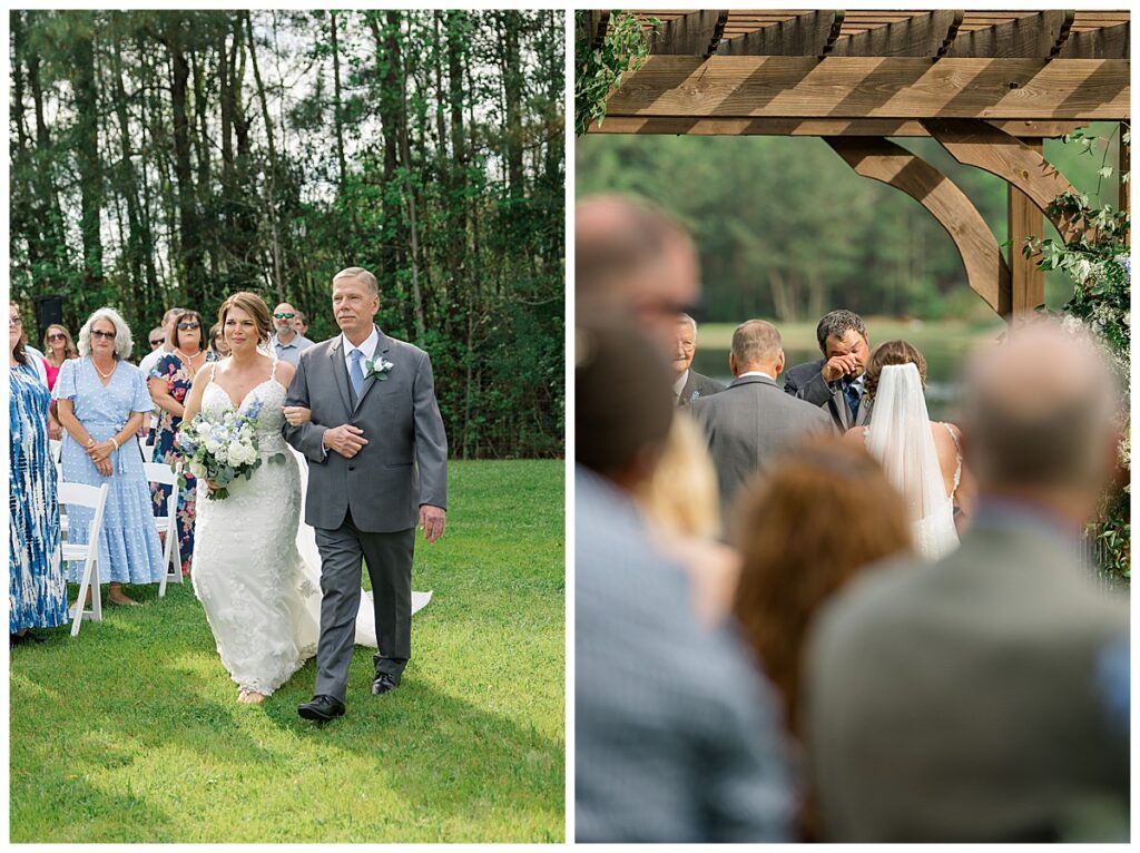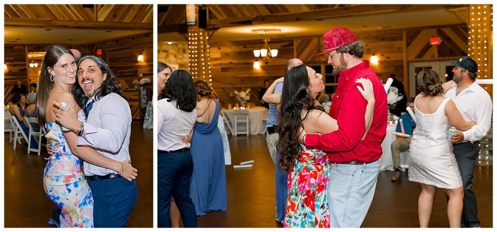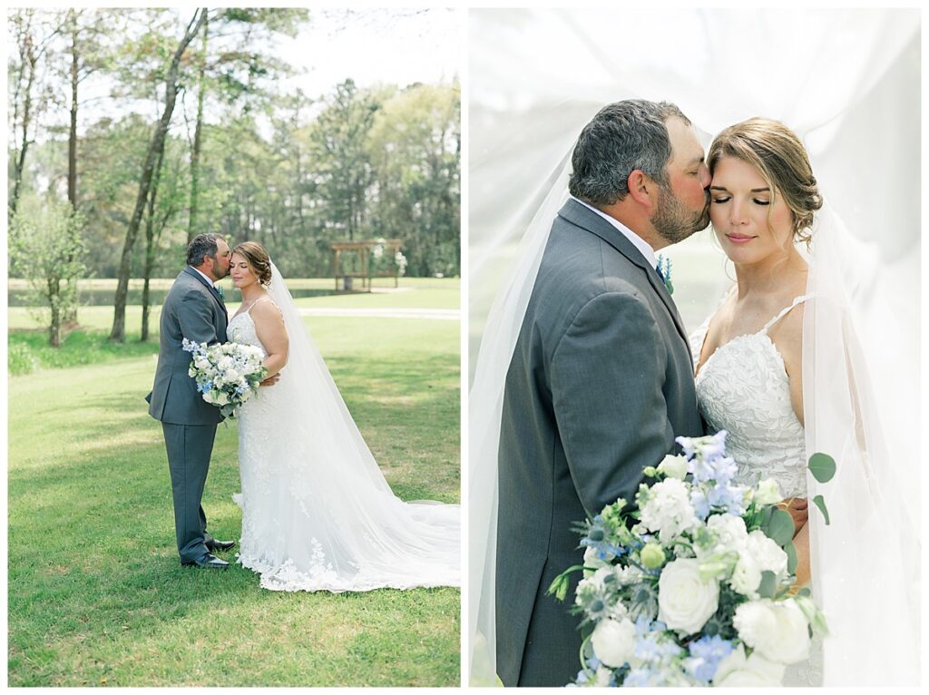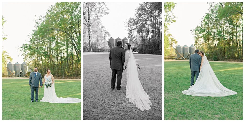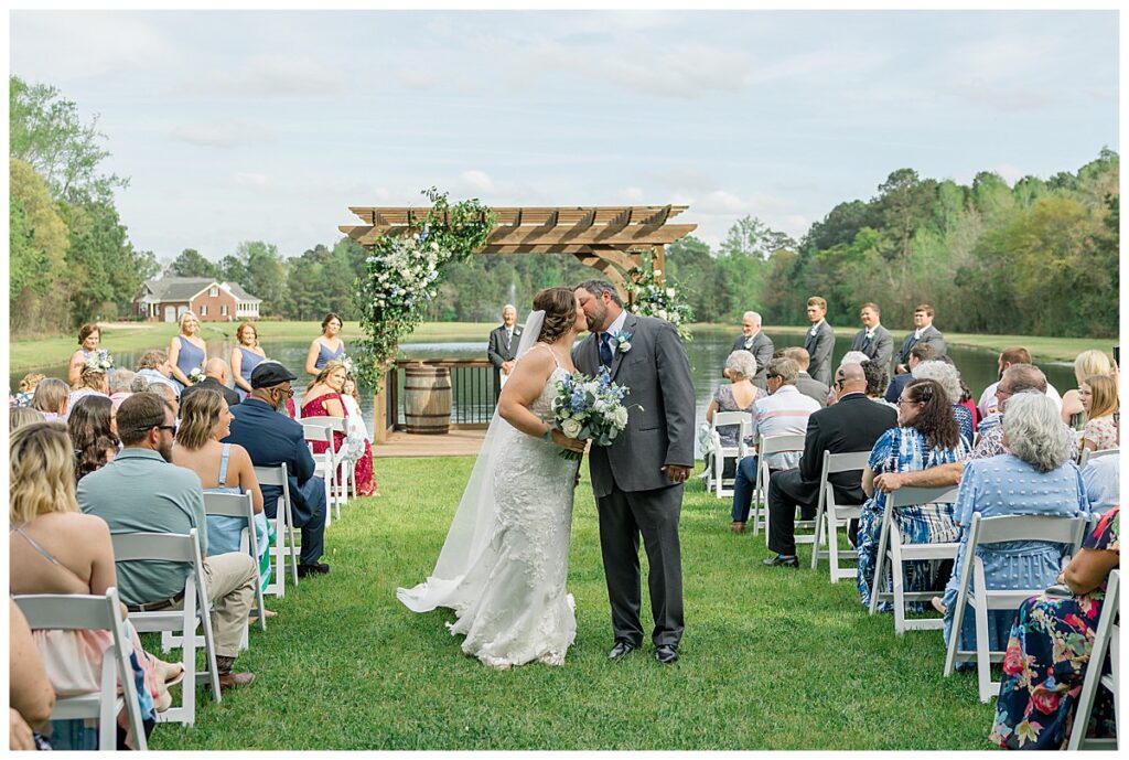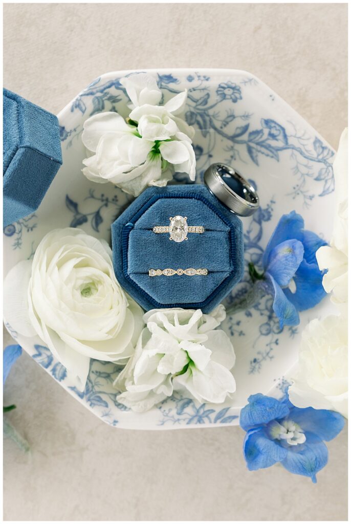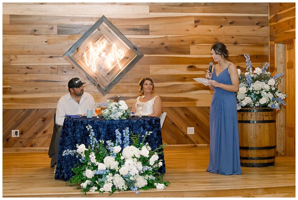 The ceremony was SO stunning at the pond, with an over-the-top floral design on the gazebo (shoutout to Brushed by Bec!) and Grey seeing Megan come down the aisle (even after doing a First Look!) he teared up and was emotional in that special moment! It was sooooo precious!! After the ceremony, they got to hangout with their guests & enjoy cocktail hour on the patio. The reception design was SOOO GORGEOUS with all heirloom chinoiserie vases from their family on the tables. I loved the varying heights and colors – and of course the beautiful sweetheart table with all the florals! The multiple cakes on the cake table was so unique and I also loved that idea a lot (bonus that the chocolate cake I tried was SO YUMMY) :)
