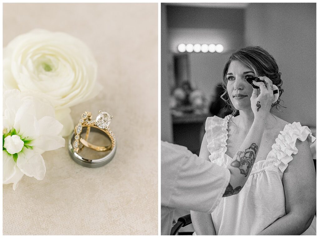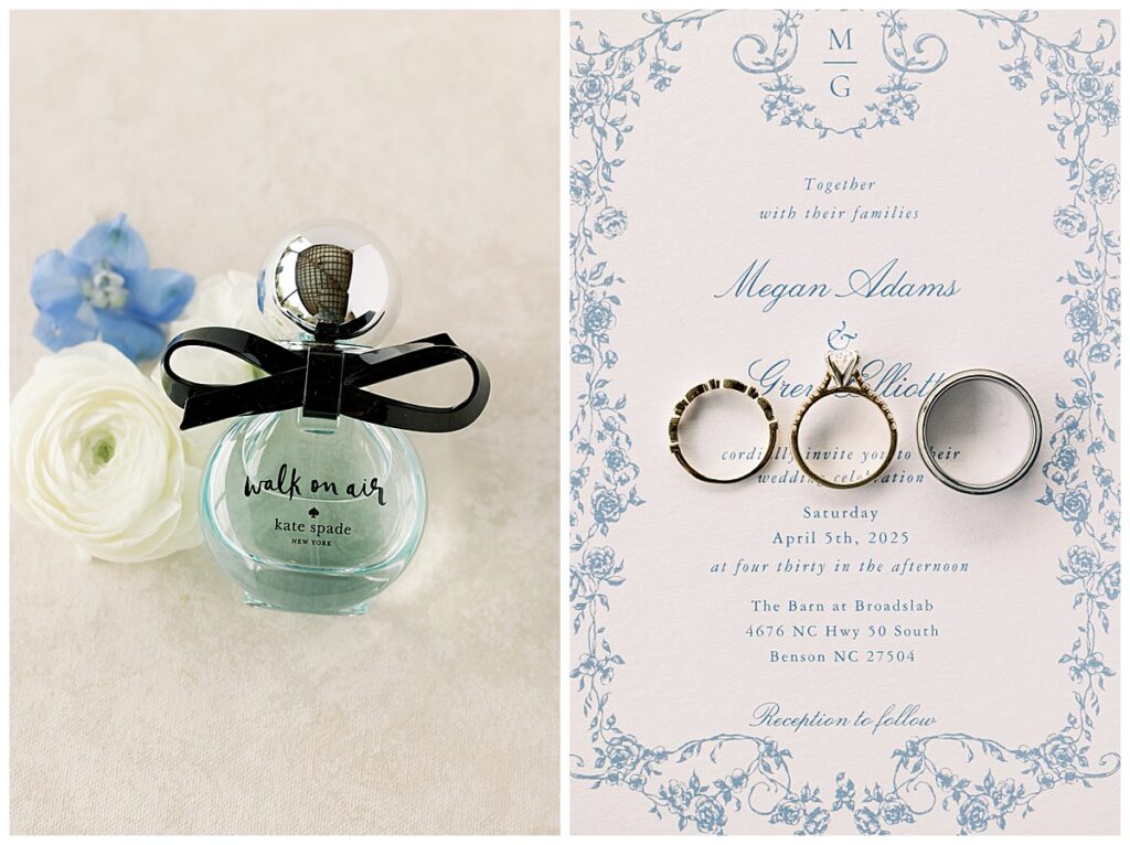 We had a beautiful (but warm!) 85º April day, with pops of sunshine that I loved – and a slight breeze to help with that unexpected hot day!!! When we pulled up to the venue, Megan was already knocking on the bridal suite window and waving at us! She’s the cutest!!! We started off the morning photographing all of her beautiful details (I loved her invitation suite and was so spoiled with all her fun pieces to photograph!) and got to hang out with her sweet bridesmaids. Megan & her precious mom, Kim surprised ME with my two favorite drinks in the fridge for me to have AND a present!!! They are literally the most thoughtful and generous people to surprise US on THEIR special day. Wow!!!