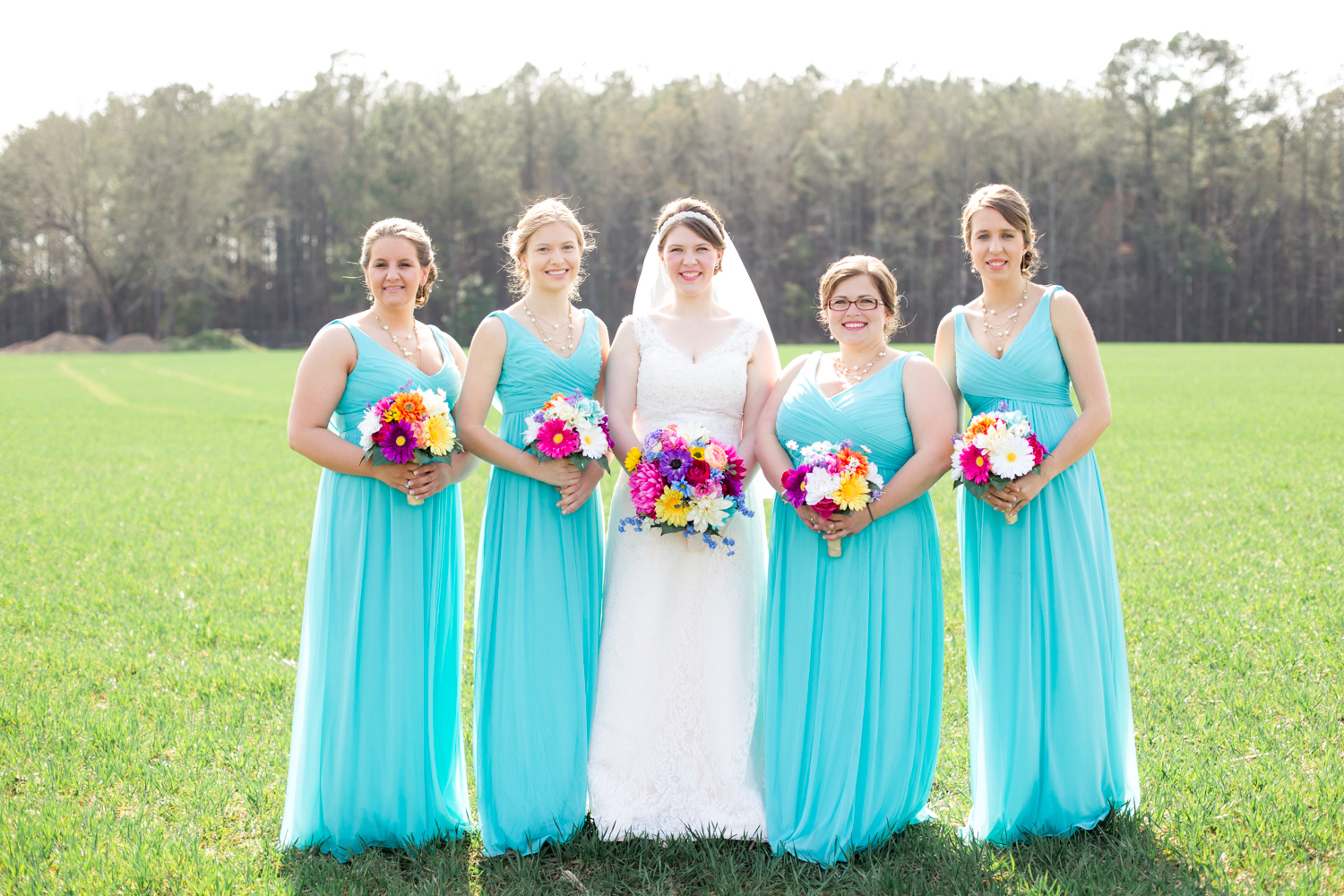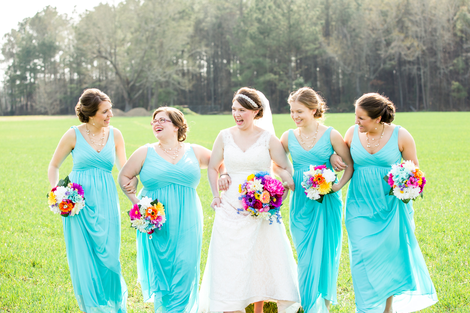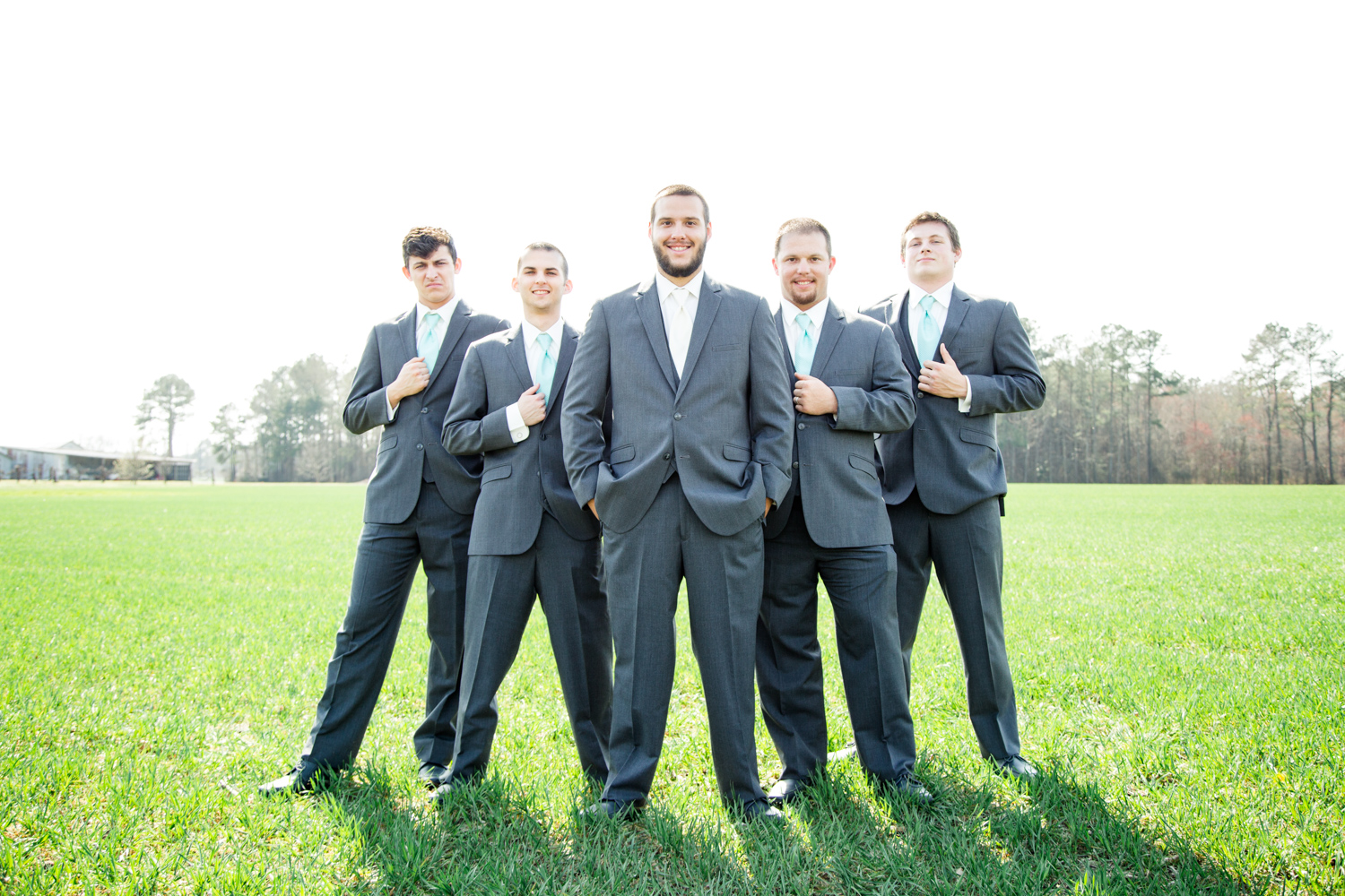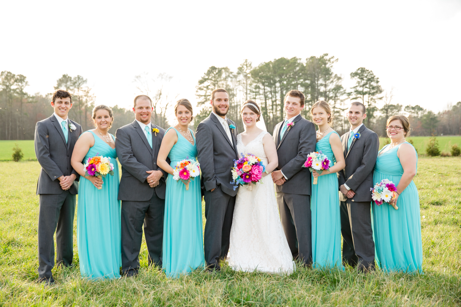We had the most PERFECT day to have a March wedding. The sun peeked out, and it was warm. We went stomping through the tall grass to get Bridal Party shots, and the girls even had to jump over a little ditch – they did so in great spirits! Phillip had fun with the guys – they were ALL firefighters, so posing with the Firetuck was unique and awesome.