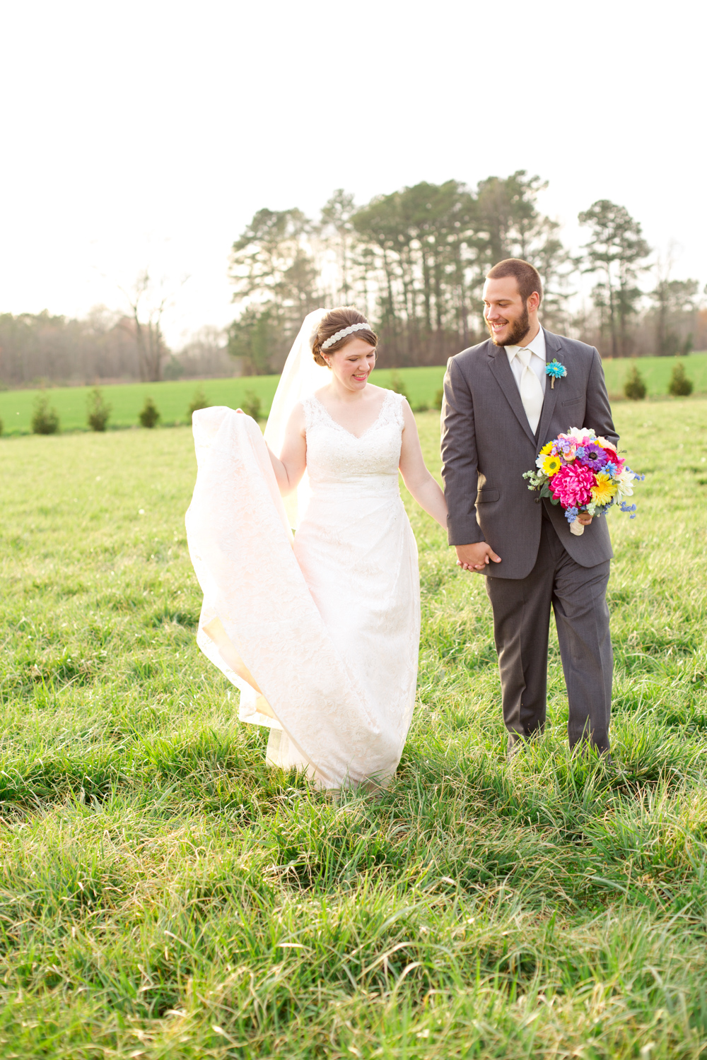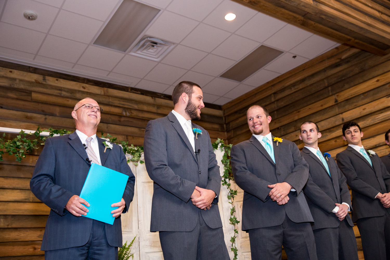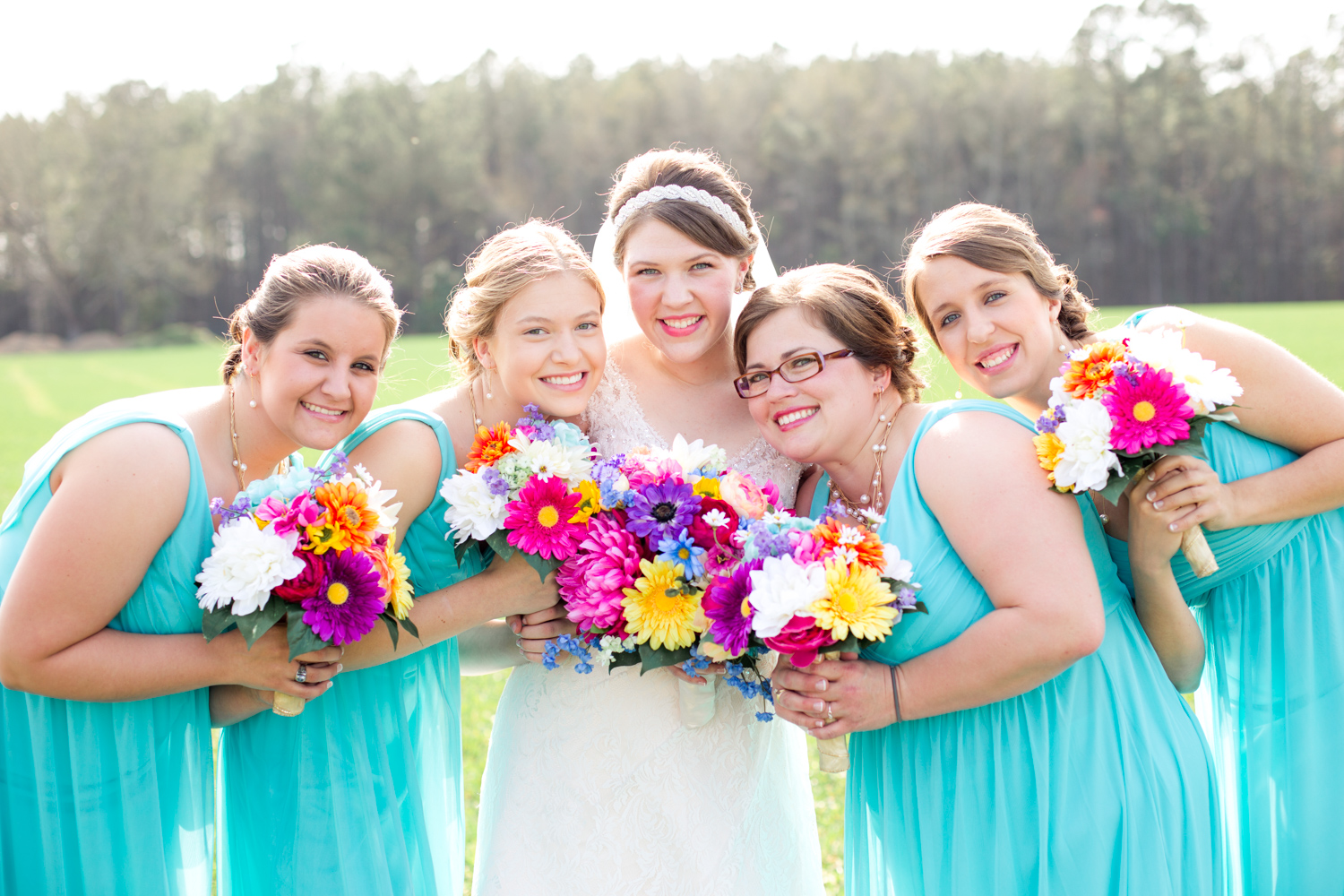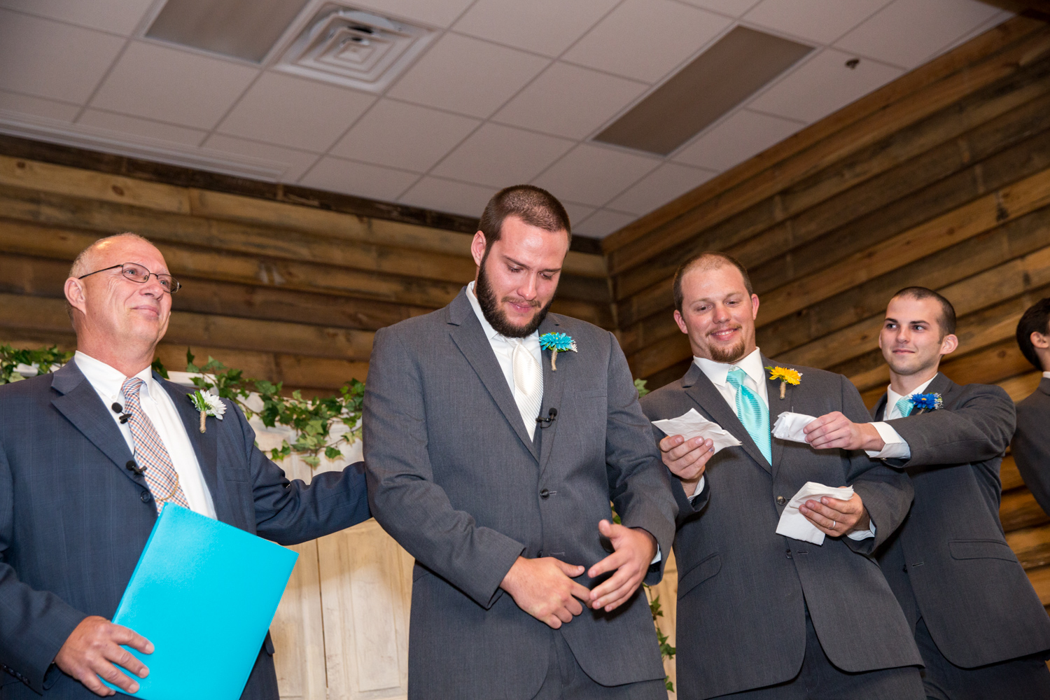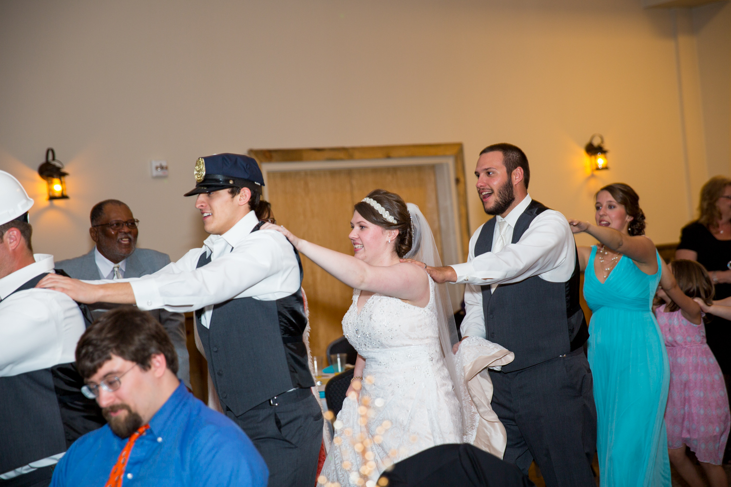 We had the most PERFECT day to have a March wedding. The sun peeked out, and it was warm. We went stomping through the tall grass to get Bridal Party shots, and the girls even had to jump over a little ditch – they did so in great spirits! Phillip had fun with the guys – they were ALL firefighters, so posing with the Firetuck was unique and awesome.