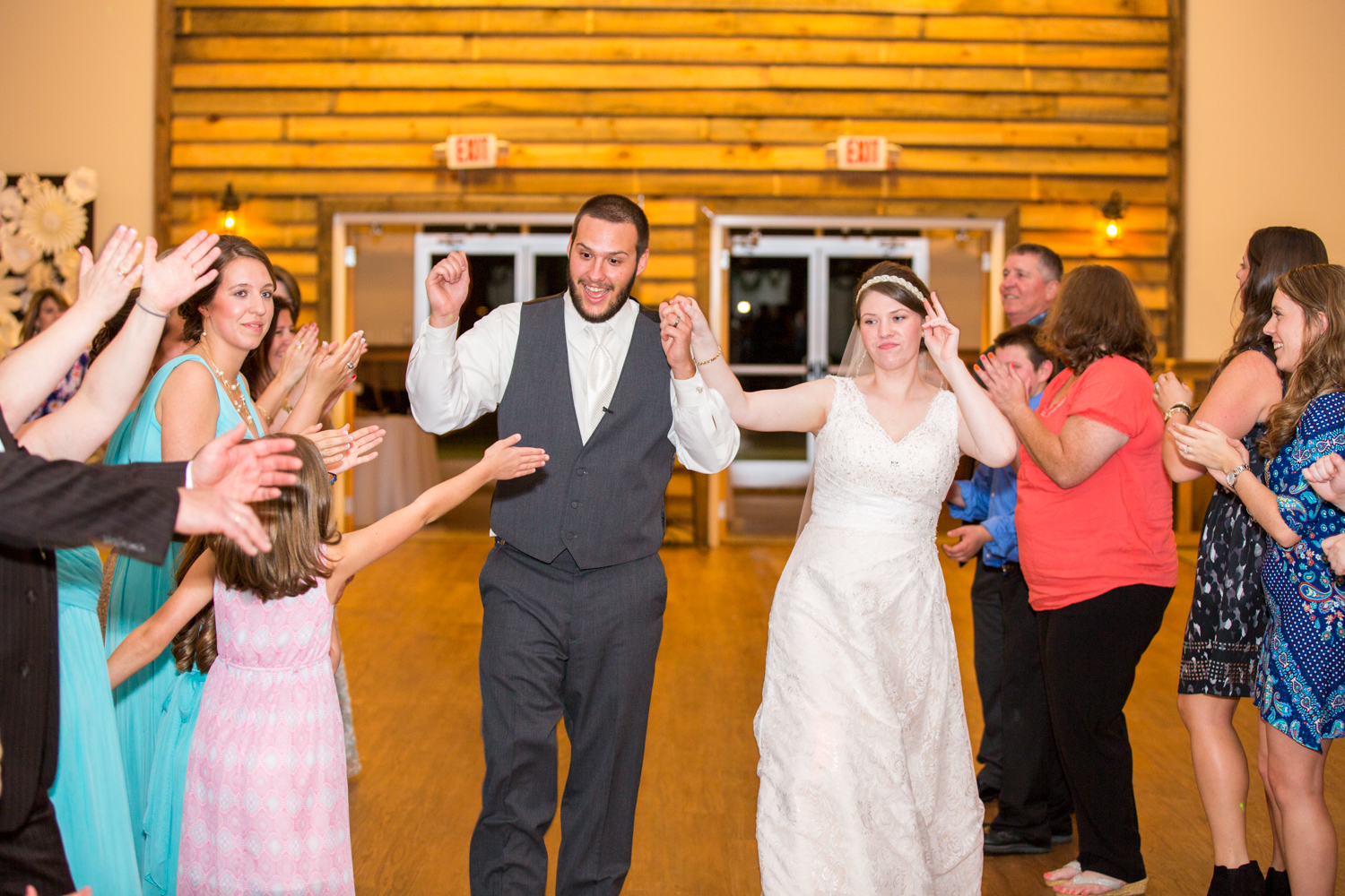 Breakfast food was served at the reception – and it was a true southern spread! Guests were served cake, and then danced all night long. Micaela changed from her heels to cowgirl boots, and she graciously talked to all the guests before dancing! It was so cool to see couples of ALL ages hitting the dance floor, and having a blast doing it!