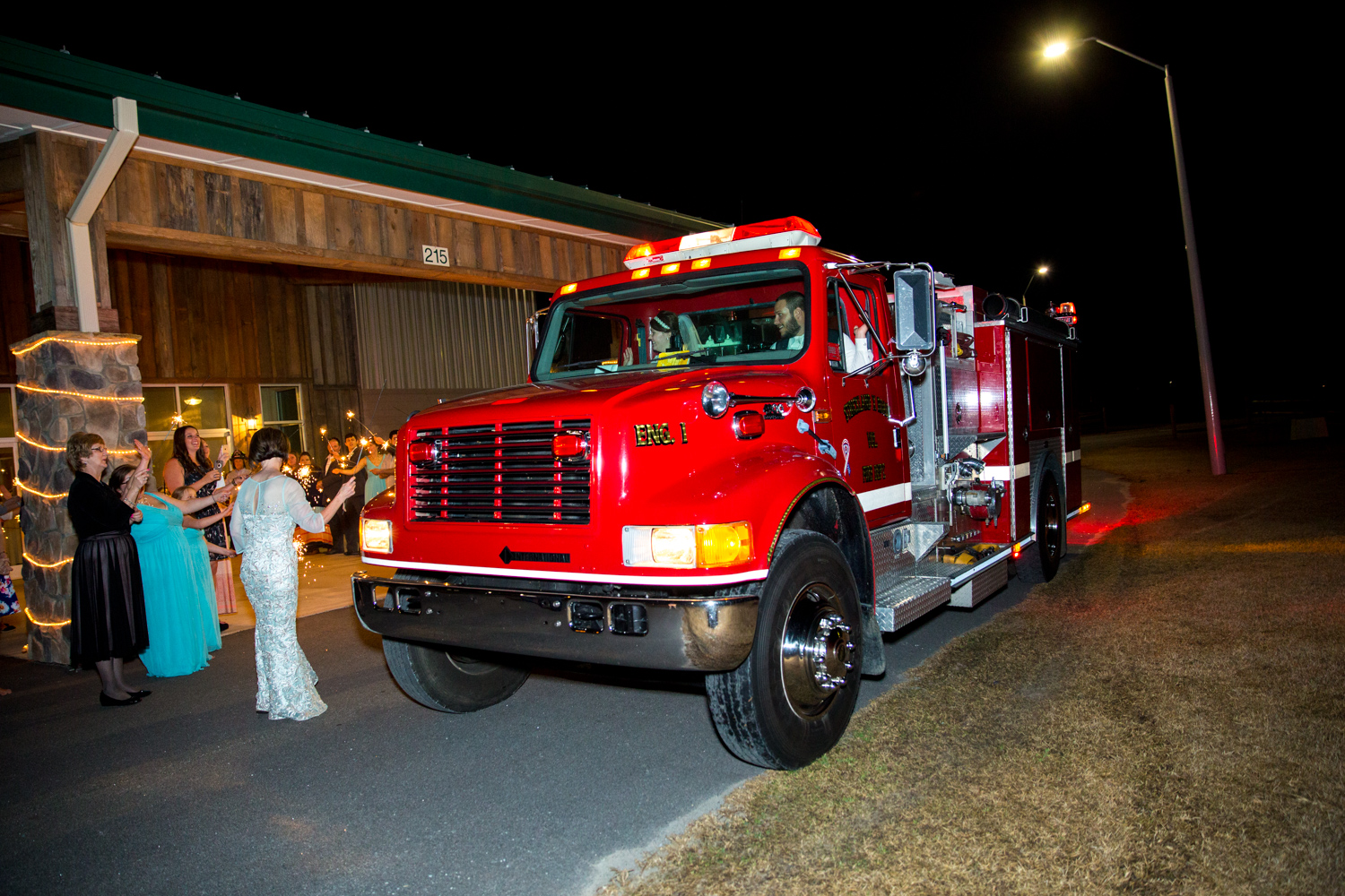 Dylan and Micaela left through a tunnel of sparklers, and their getaway vehicle was the FIRETRUCK! Dylan drove it into the night, sirens blasting, and lights blazing! We LOVED it!!!