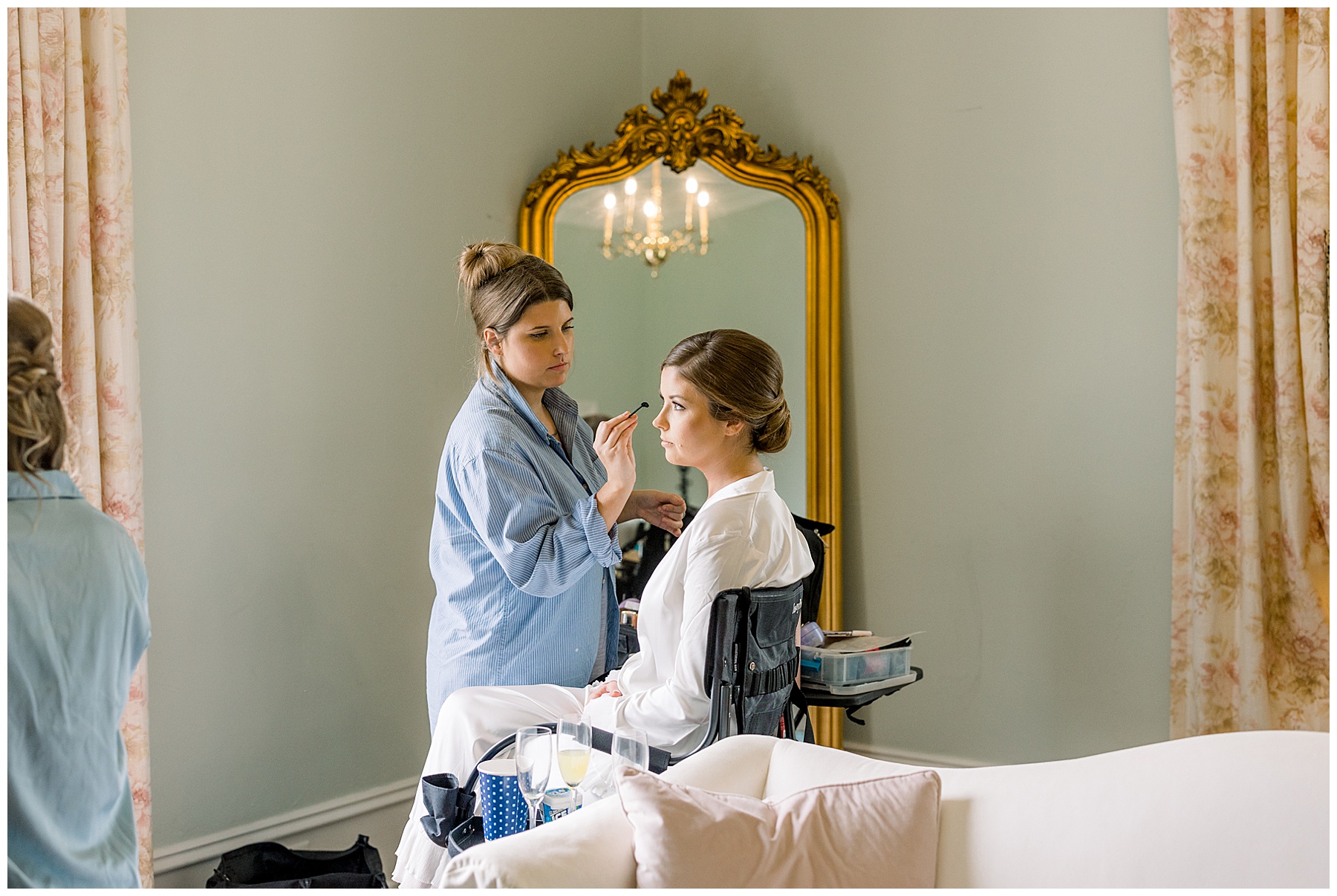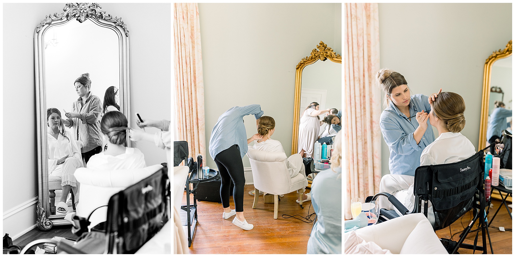 Molly and the girls were already halfway through hair and makeup when we arrived (yay for a day that goes smoothly!) and all the guys were skeet shooting on the property and hanging out relaxing. Molly and her bridesmaids wore the chicest satin pjs with the cutest details on the sleeves and pant bottoms! So fun and different!
