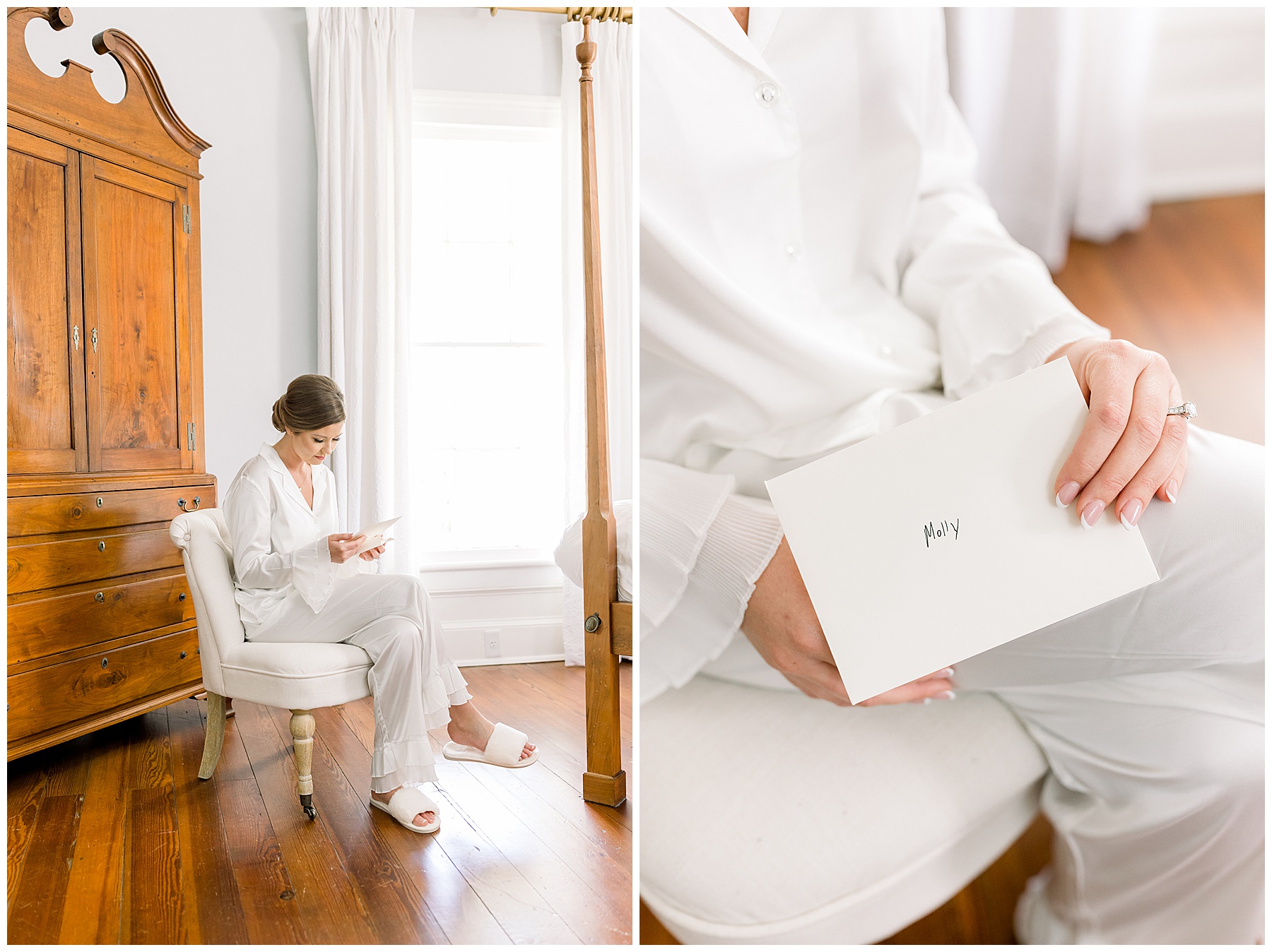 Phillip and I started off photographing all of Molly’s details, and a few special items stood out to me! Her engagement ring from Cutchin features a diamond from his grandmother’s ring, and the beaded little clutch was Molly’s grandma’s! How stylish was she?! I love hearing the significance behind all the details I photograph, it makes my job that much more meaningful! :)