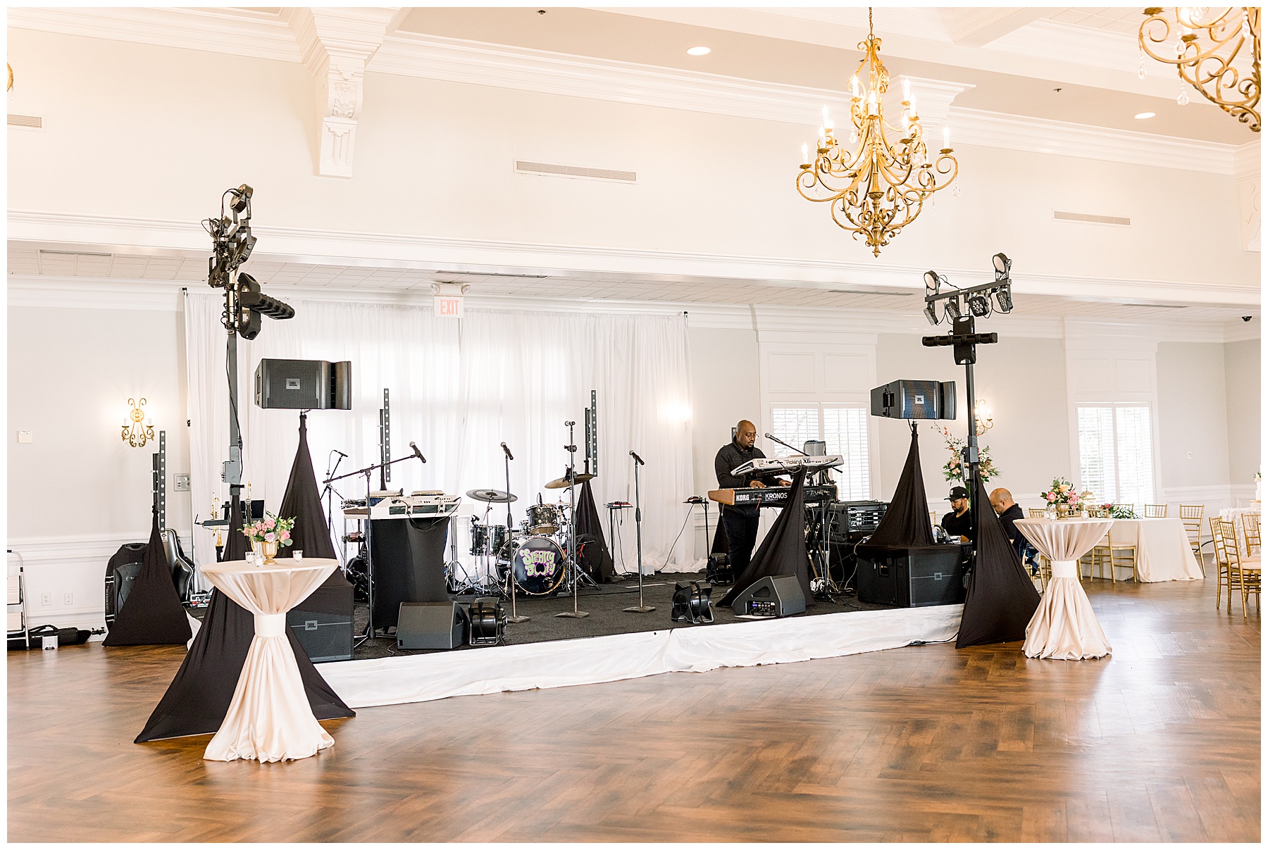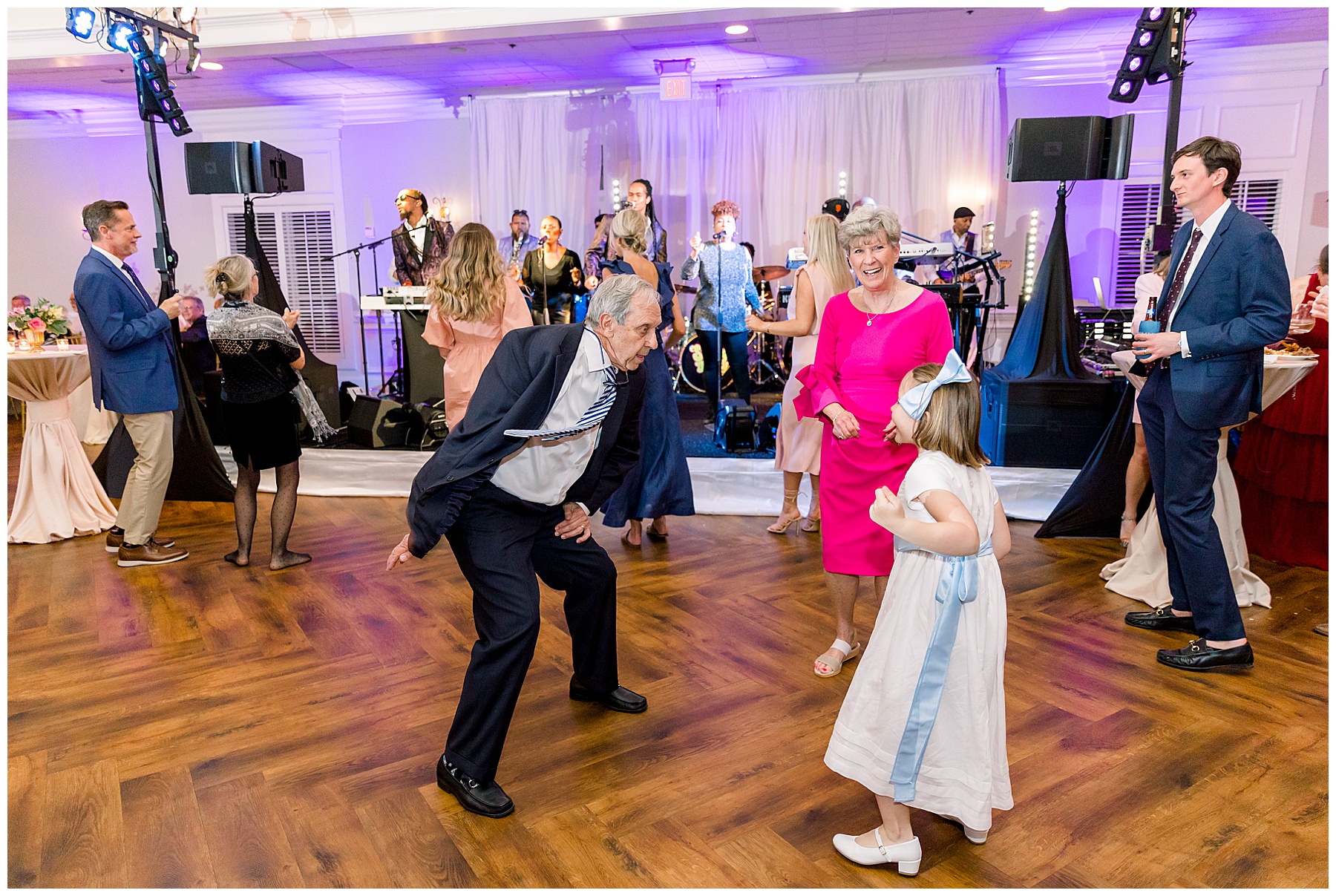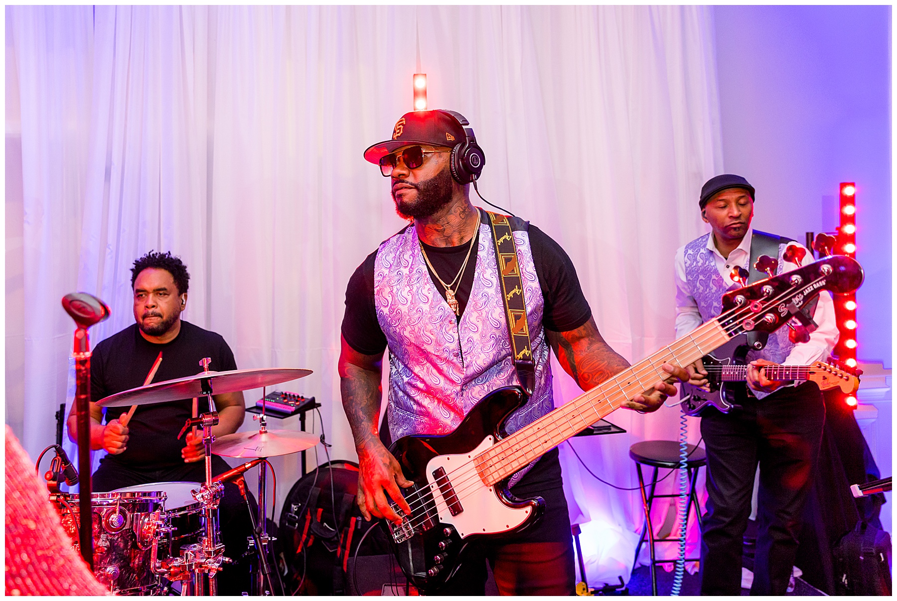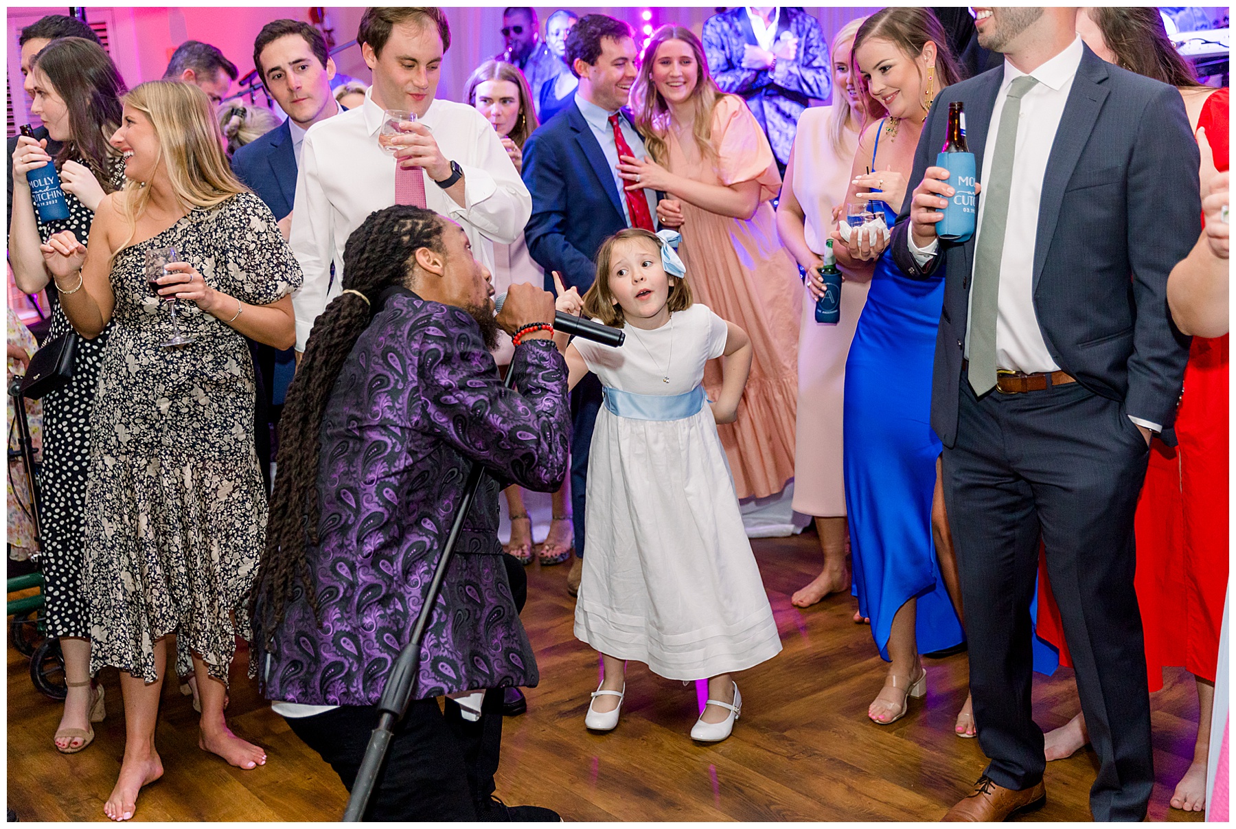 They kicked off the reception with lots of food (3 stations of food – everything from smoked brisket to chips + guacamole!) drinks, cake, and LOTS and LOTS of dancing! The Sleeping Booty Band kept the guests on the dance floor ALL NIGHT LONG! They were so much fun to watch and interactive too! Fun fact – for the past 2 years Phillip and I have been virtually attending the Summit Church, and our favorite Summit musician Mike just HAPPENED to be the lead singer of the band!!!! I totally fangirled and loved every minute of seeing him perform in person!