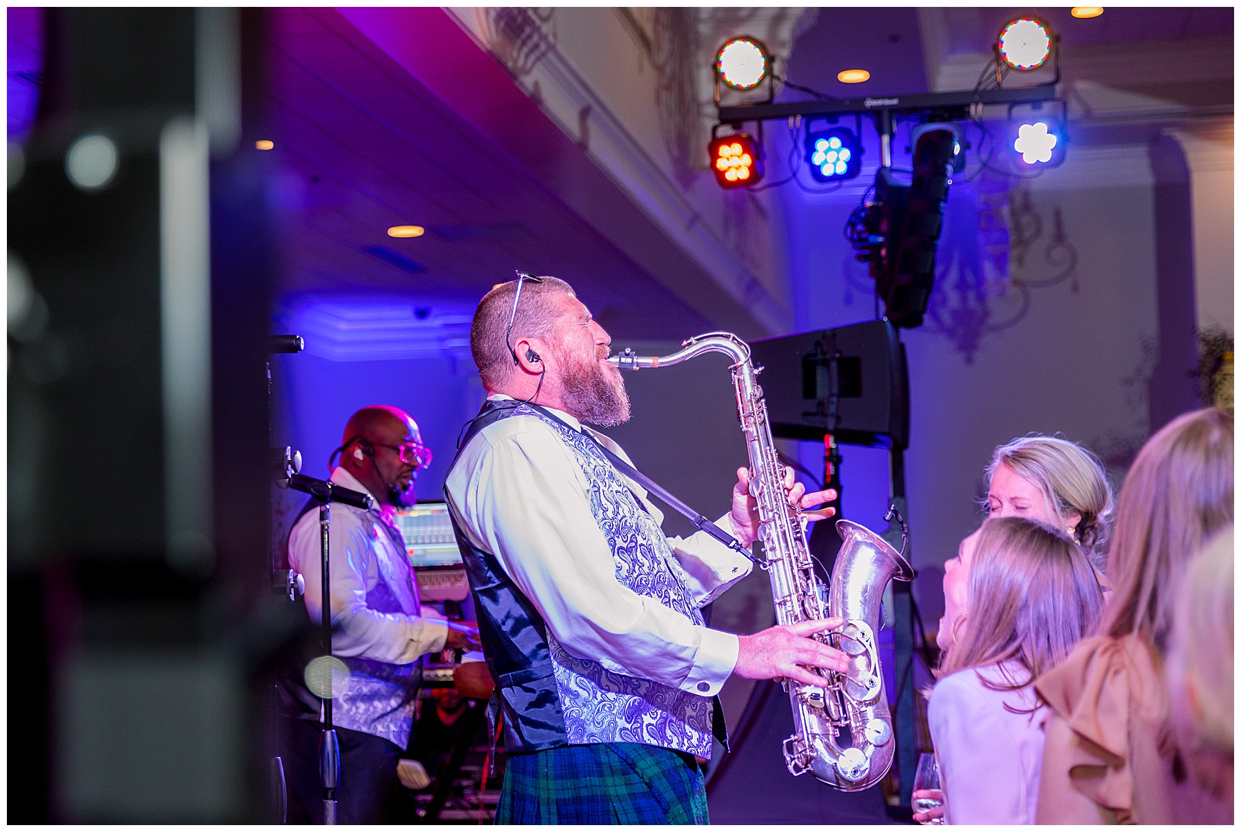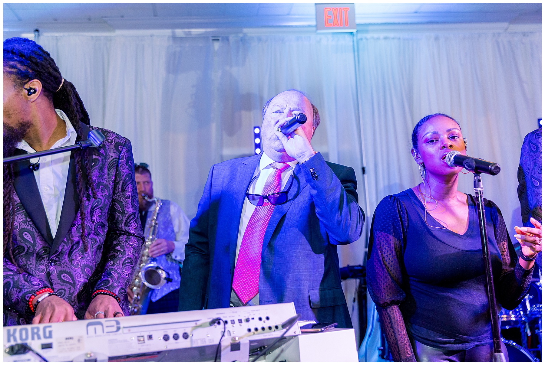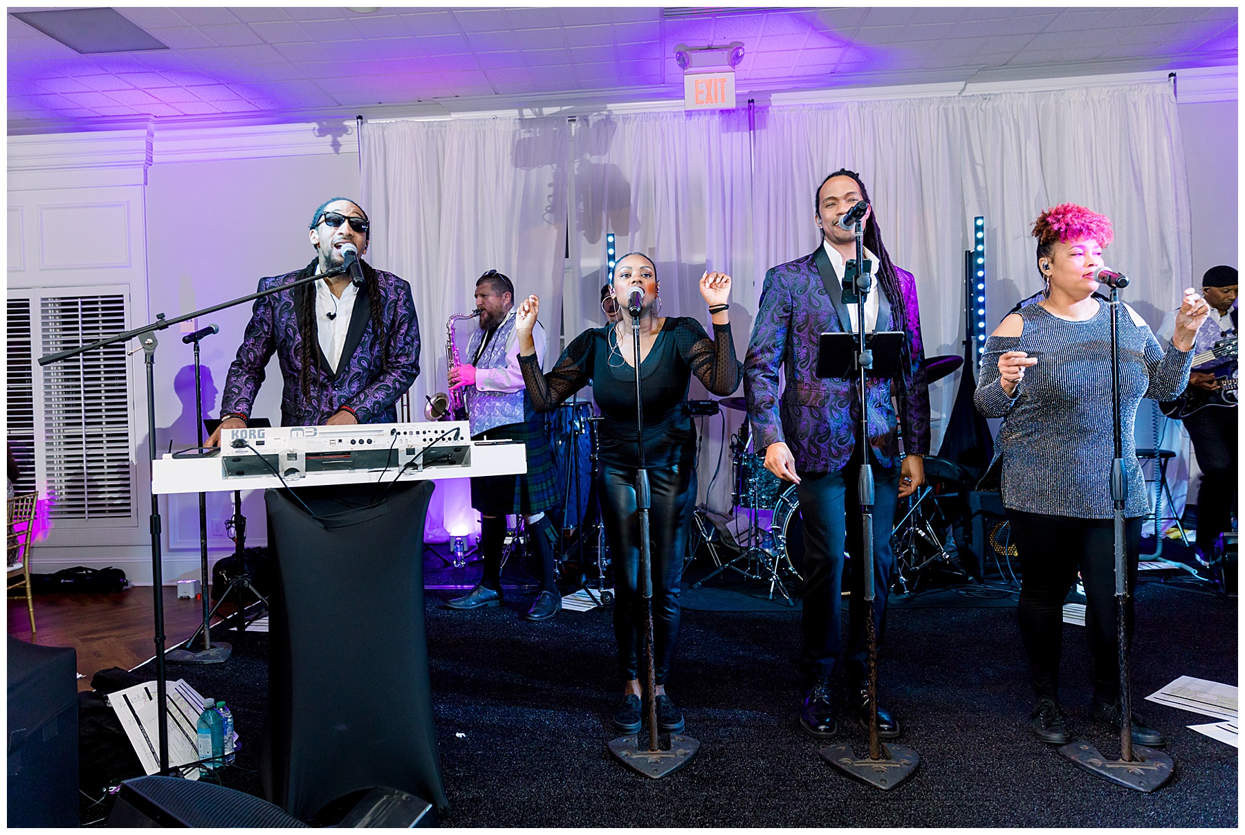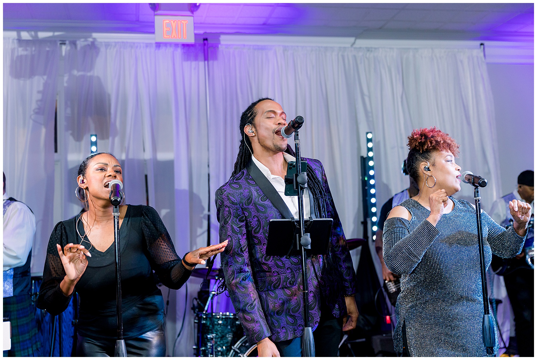 They kicked off the reception with lots of food (3 stations of food – everything from smoked brisket to chips + guacamole!) drinks, cake, and LOTS and LOTS of dancing! The Sleeping Booty Band kept the guests on the dance floor ALL NIGHT LONG! They were so much fun to watch and interactive too! Fun fact – for the past 2 years Phillip and I have been virtually attending the Summit Church, and our favorite Summit musician Mike just HAPPENED to be the lead singer of the band!!!! I totally fangirled and loved every minute of seeing him perform in person!