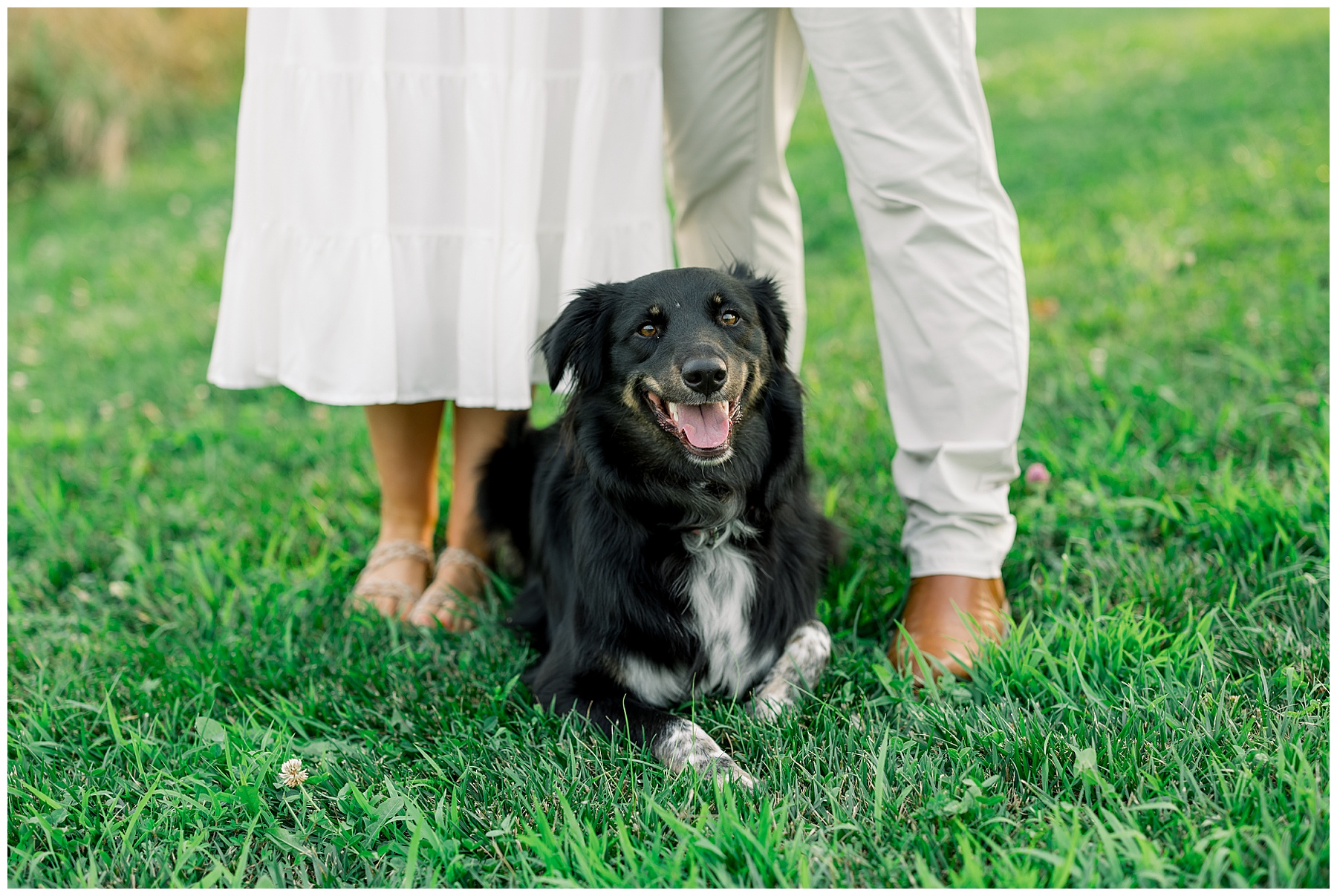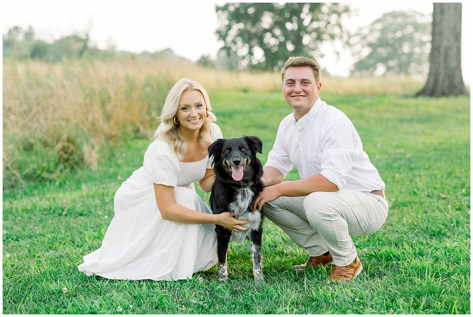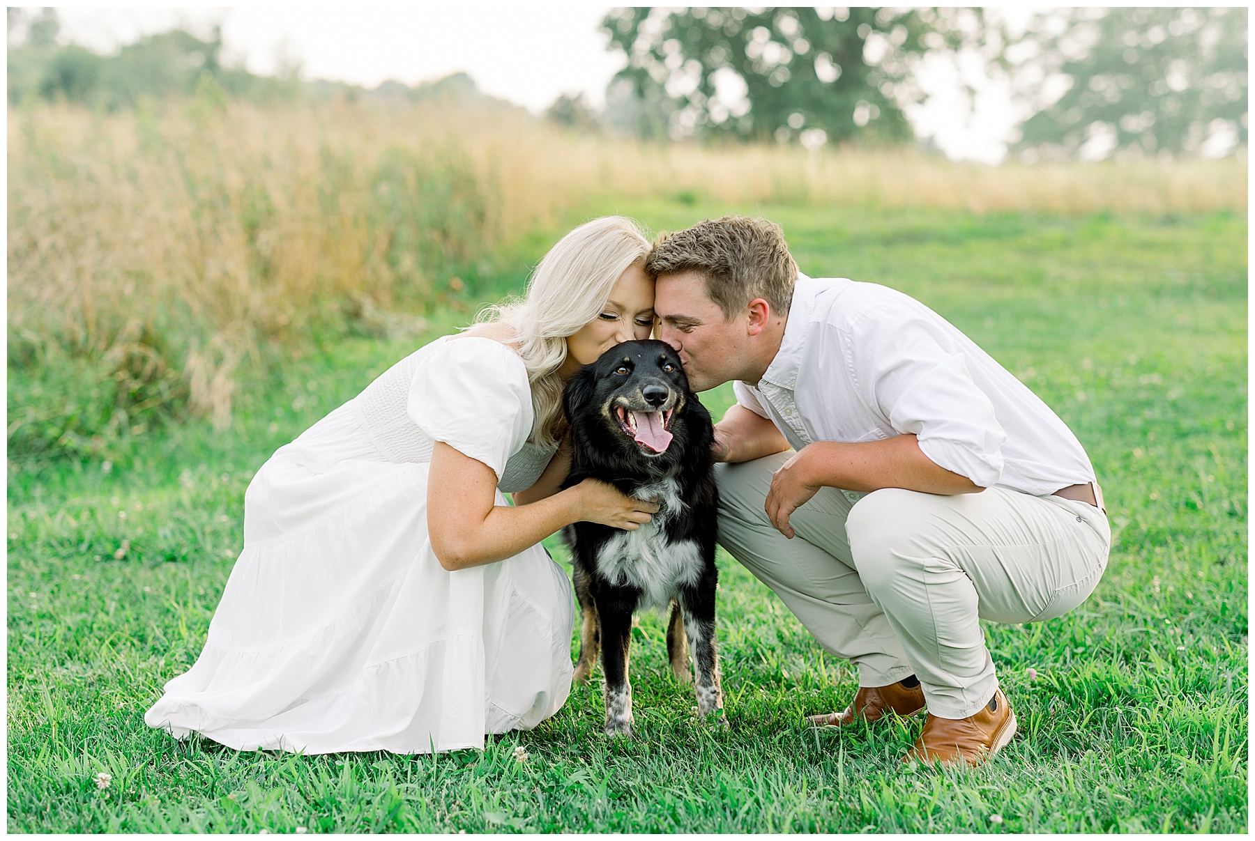 Morgan’s mom drove an hour round-trip to help out with their pup, Lucy, at our session! Lucy was just adorable – so sweet and loving & gave lots of kisses! She did such a good job through all the distractions to pose wonderfully with her mom & dad! We loved meeting her, and Phillip was happy to hang out with Lucy & be the “dog handler”, haha!