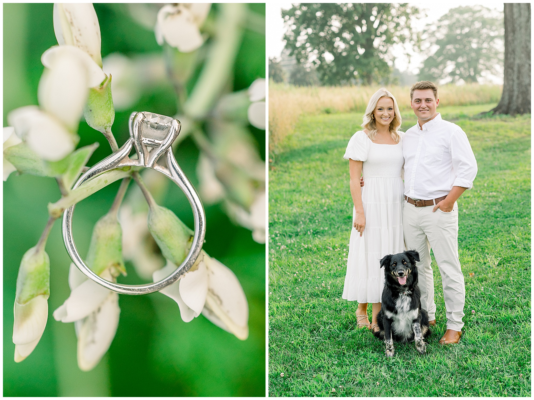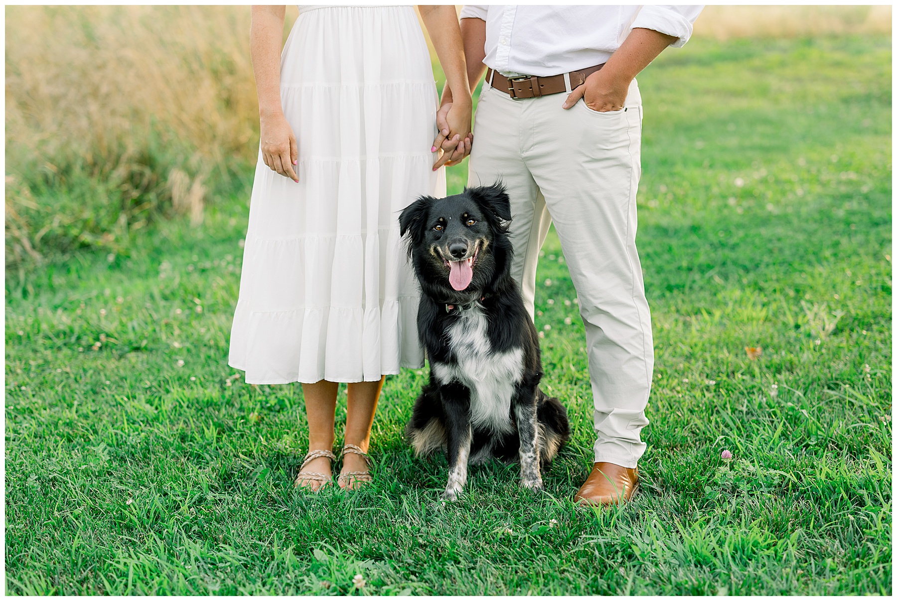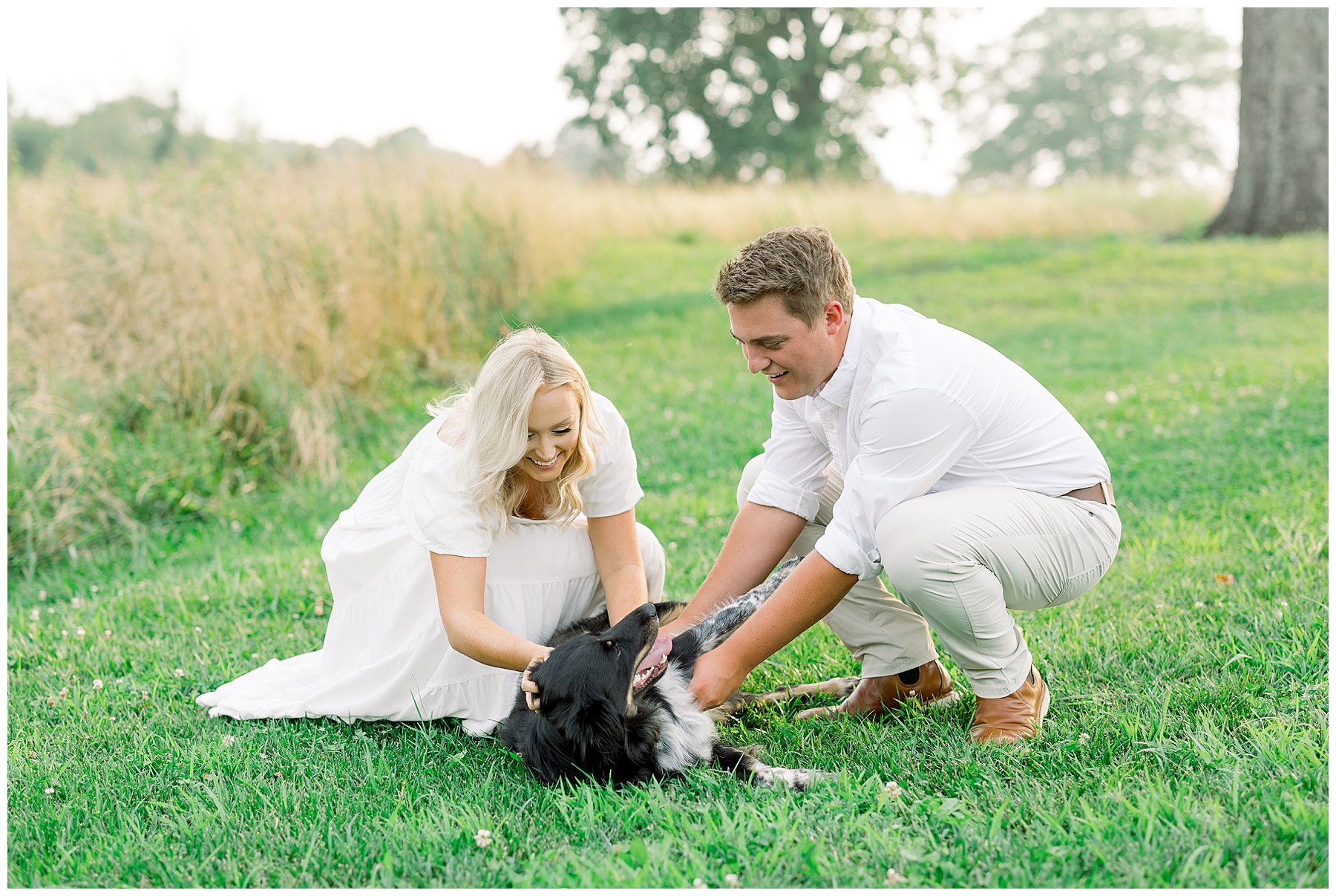 Morgan’s mom drove an hour round-trip to help out with their pup, Lucy, at our session! Lucy was just adorable – so sweet and loving & gave lots of kisses! She did such a good job through all the distractions to pose wonderfully with her mom & dad! We loved meeting her, and Phillip was happy to hang out with Lucy & be the “dog handler”, haha!