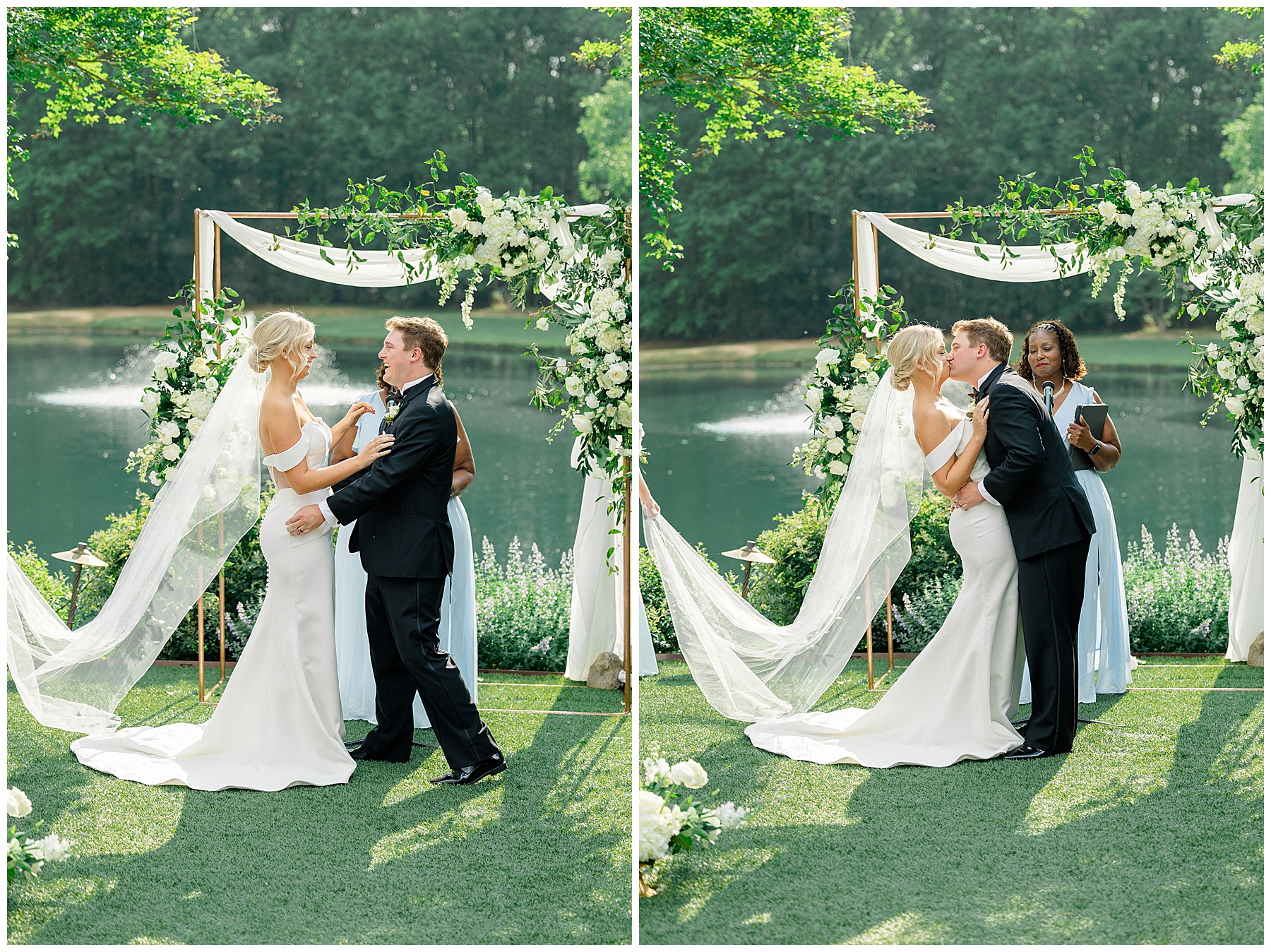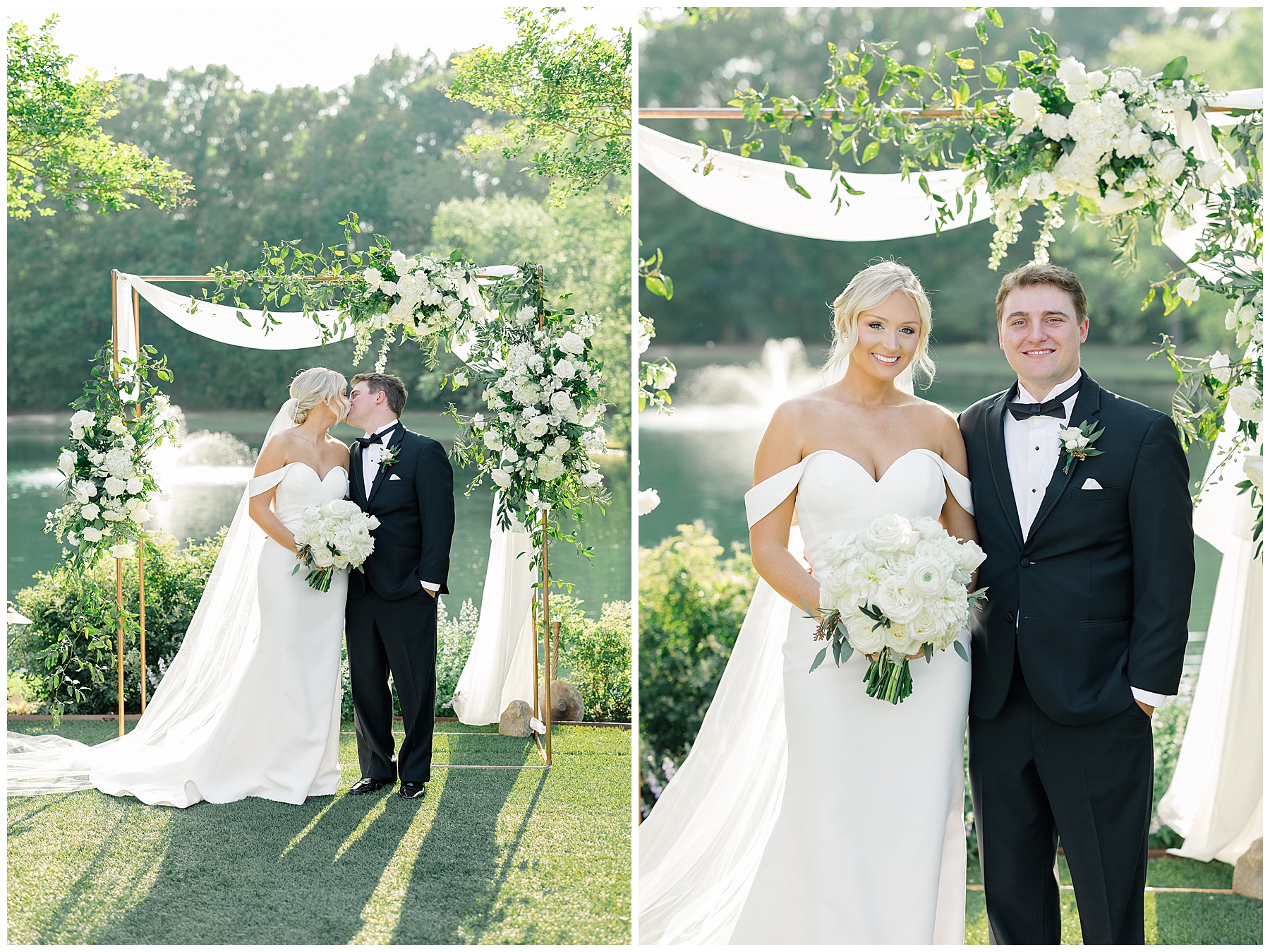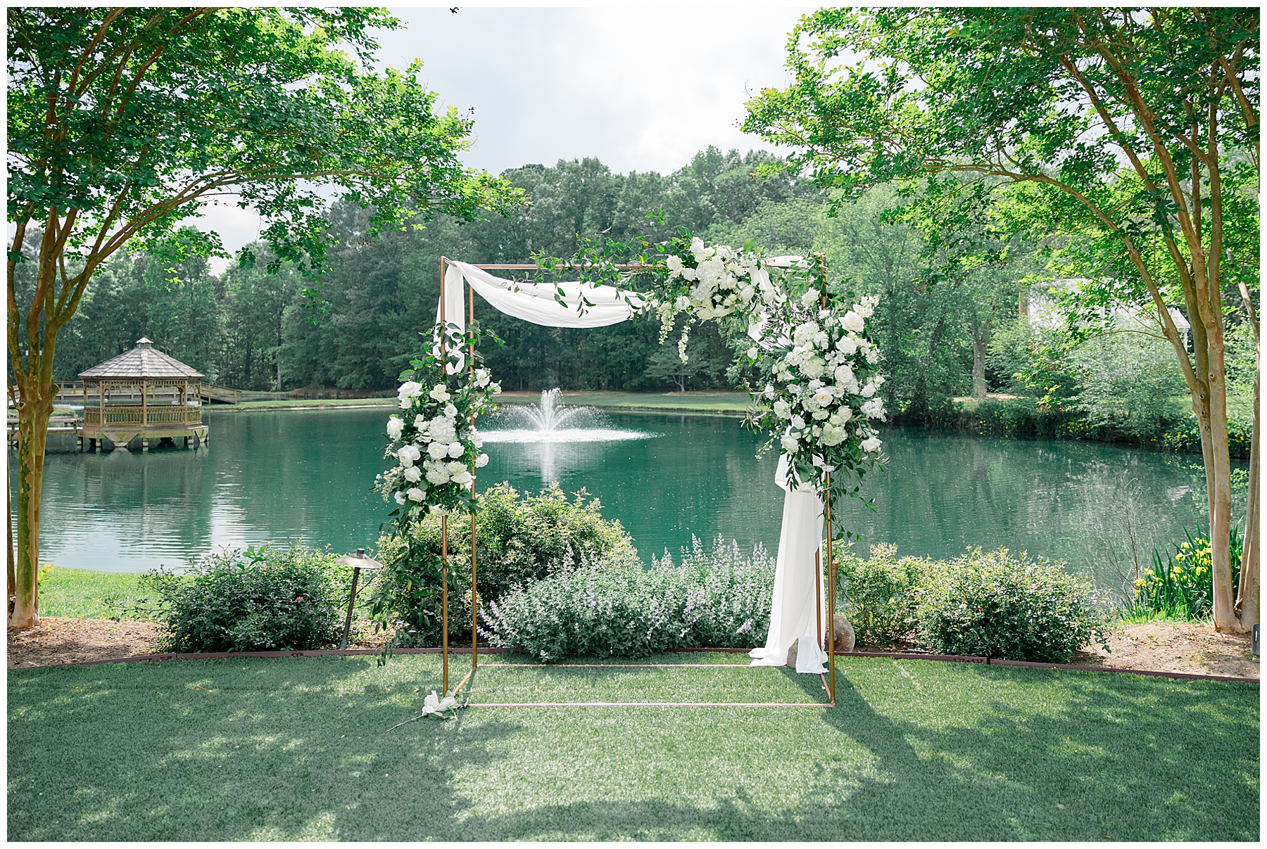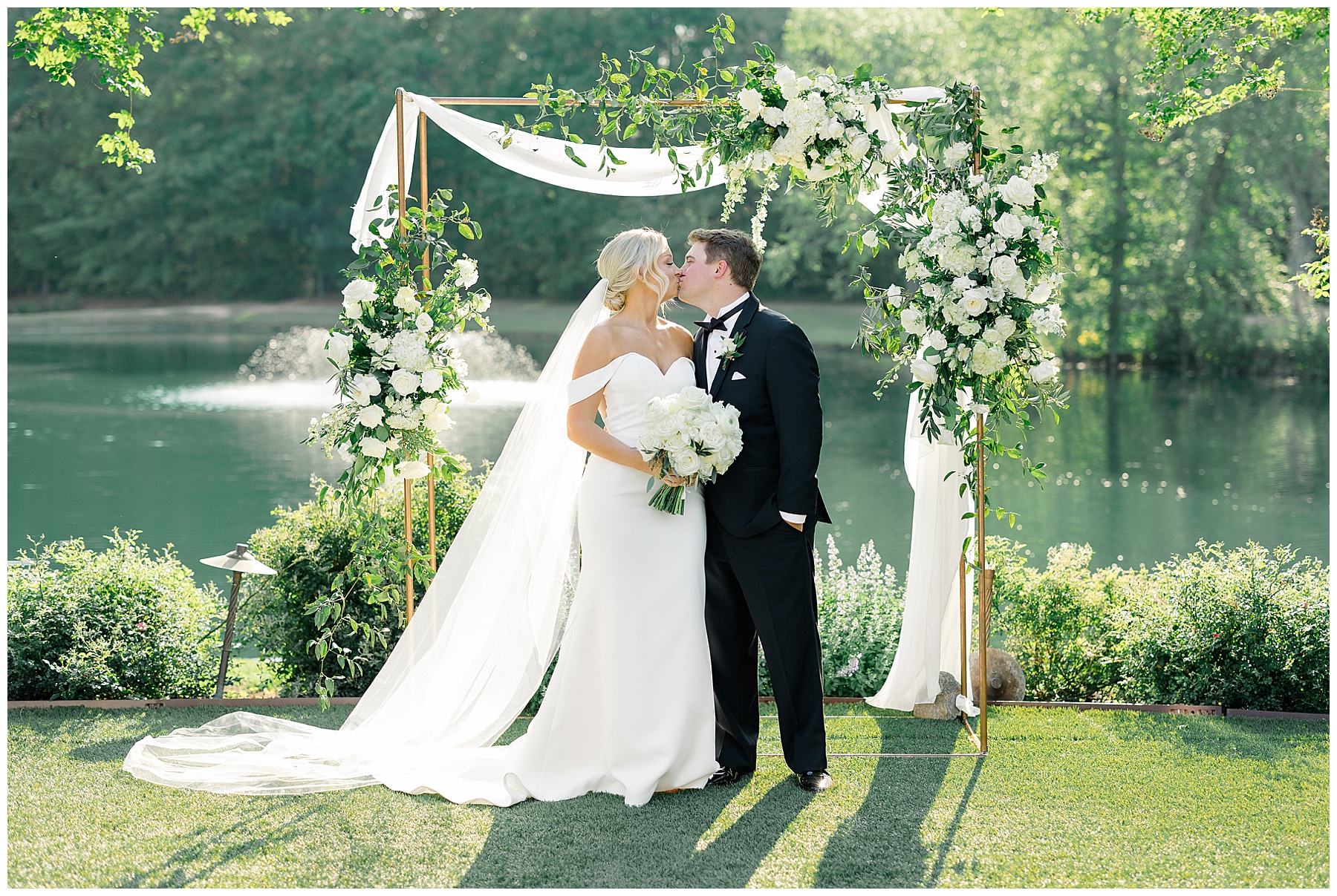 The ceremony was so beautiful overlooking the pond! The flowers were blooming all around, and the ceremony arbor looked so beautiful as the focal point. A dear family friend officiated their ceremony, and the sun came out to stay during the ceremony for the rest of the afternoon – it was so pretty!