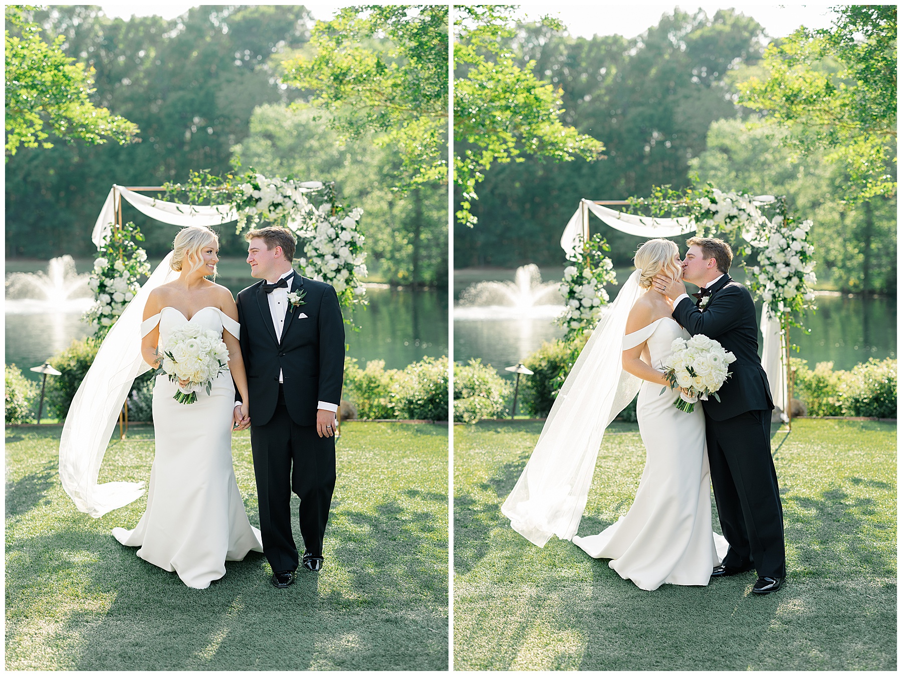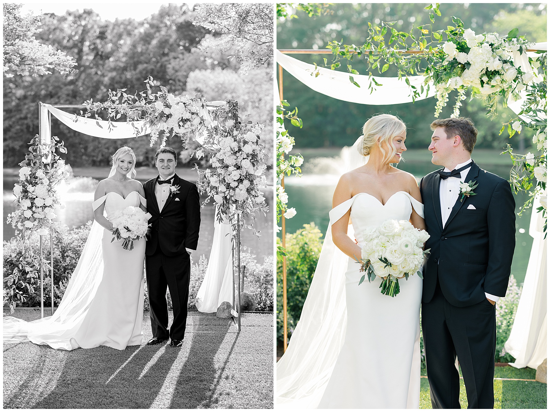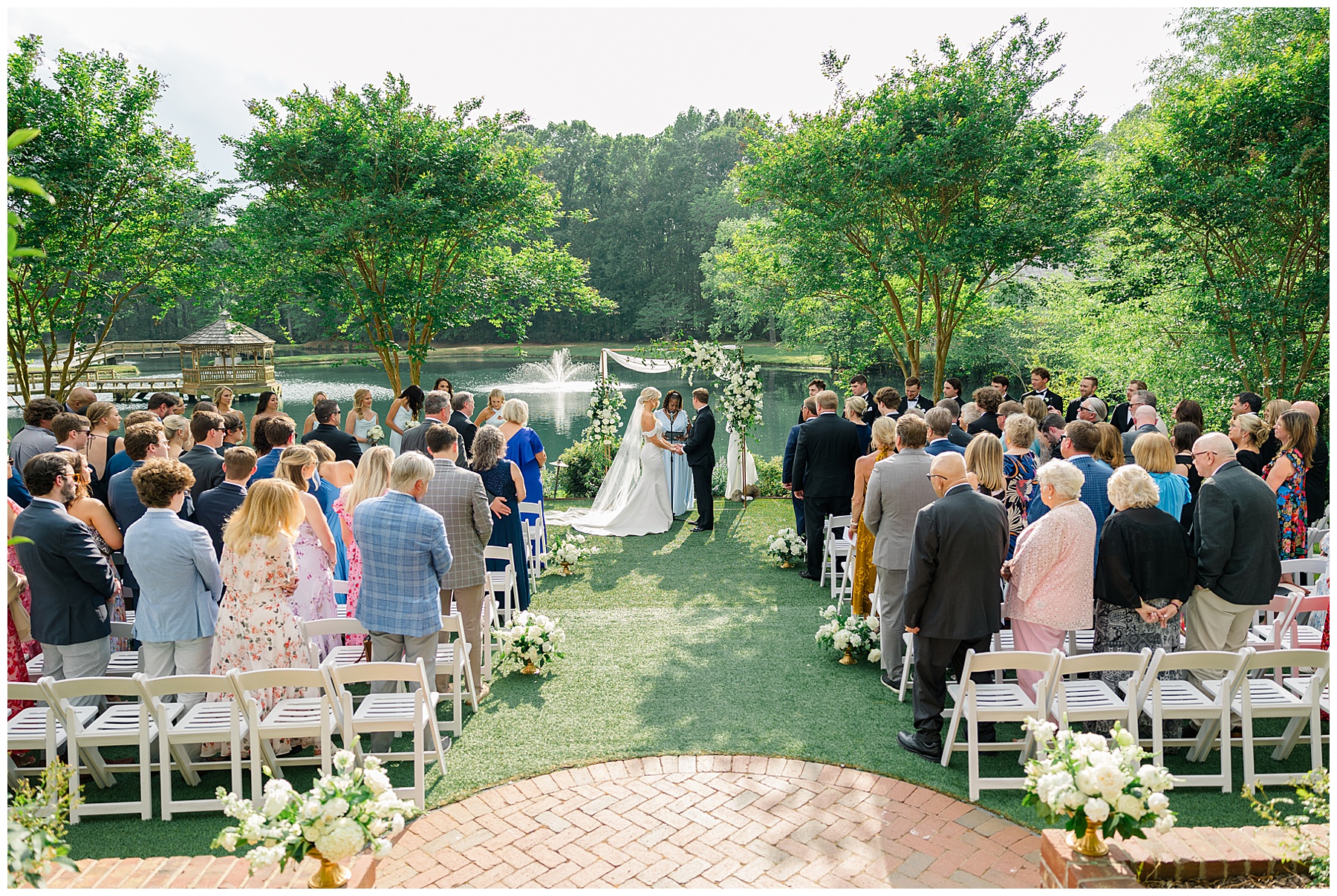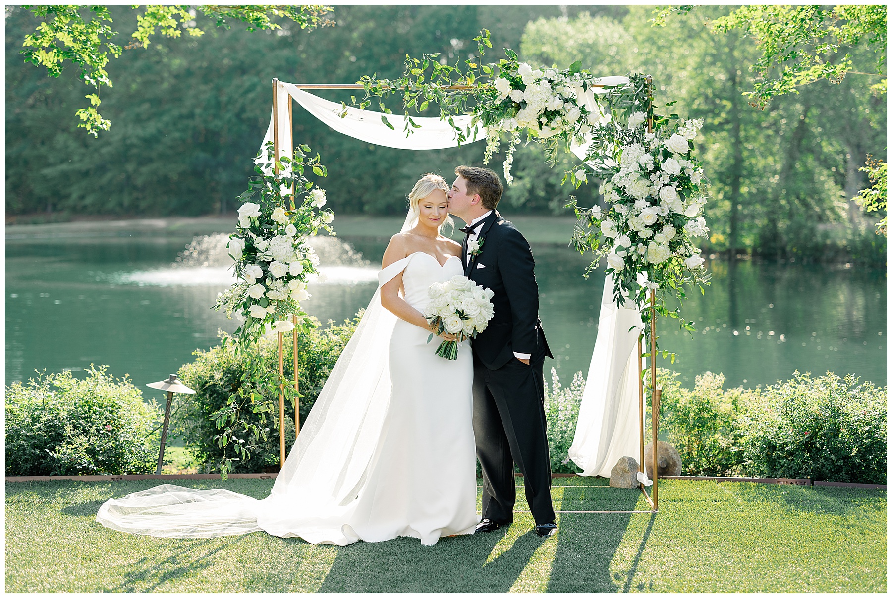 The ceremony was so beautiful overlooking the pond! The flowers were blooming all around, and the ceremony arbor looked so beautiful as the focal point. A dear family friend officiated their ceremony, and the sun came out to stay during the ceremony for the rest of the afternoon – it was so pretty!