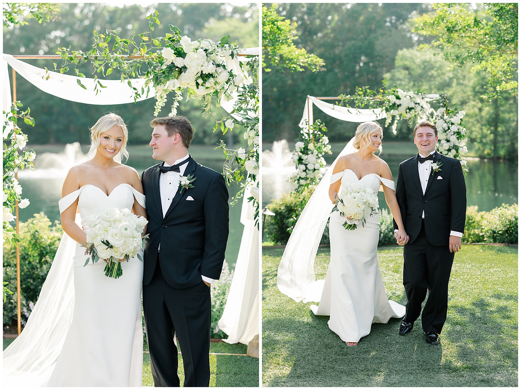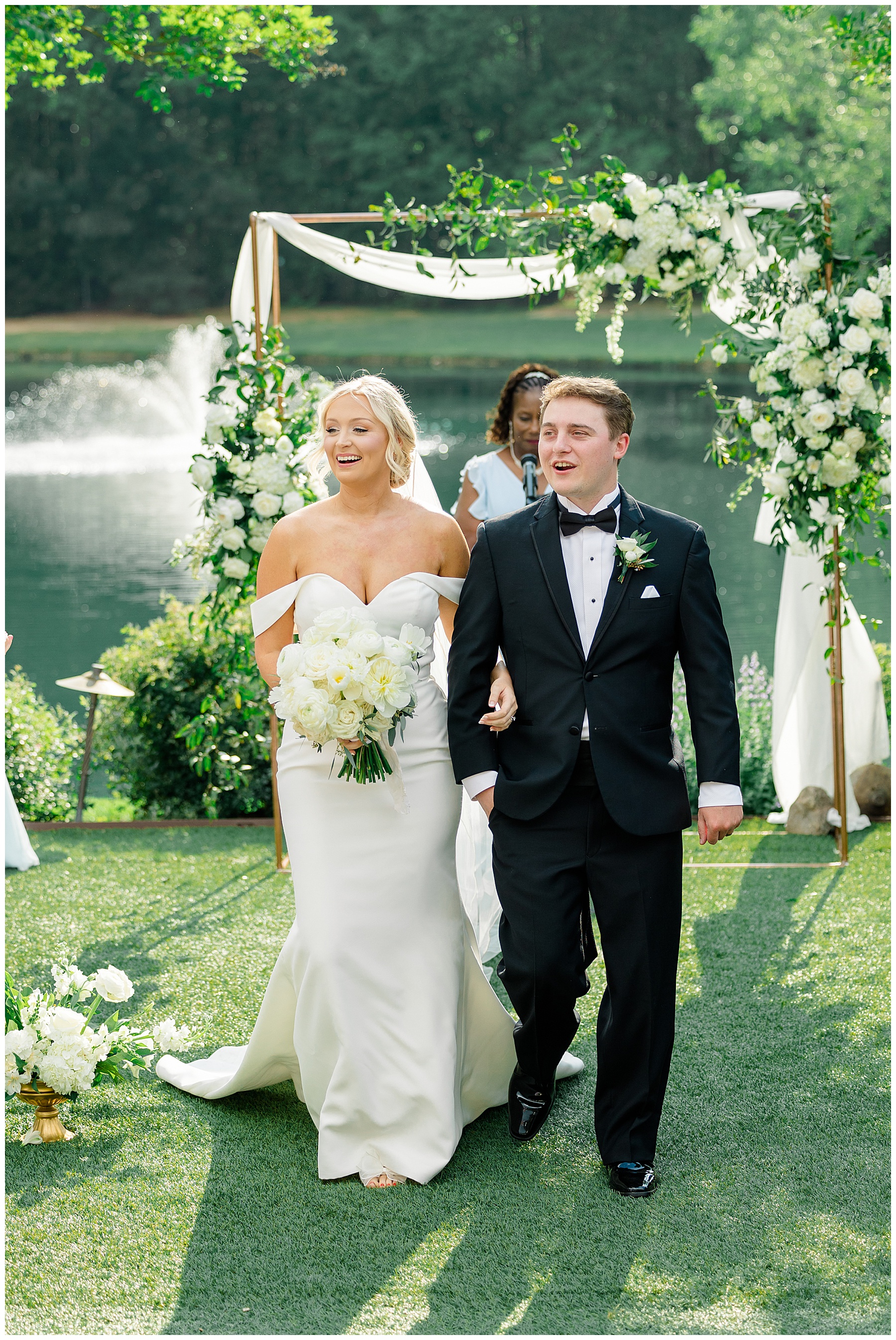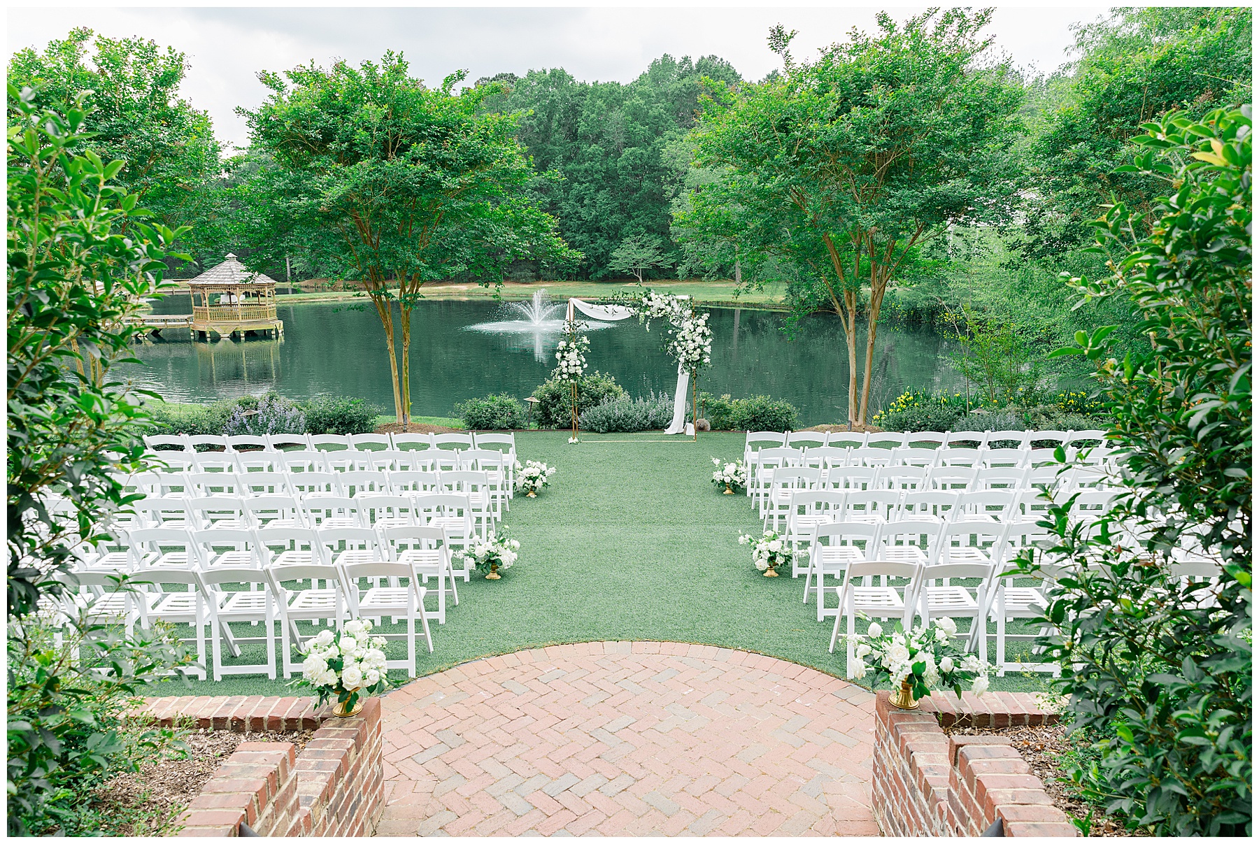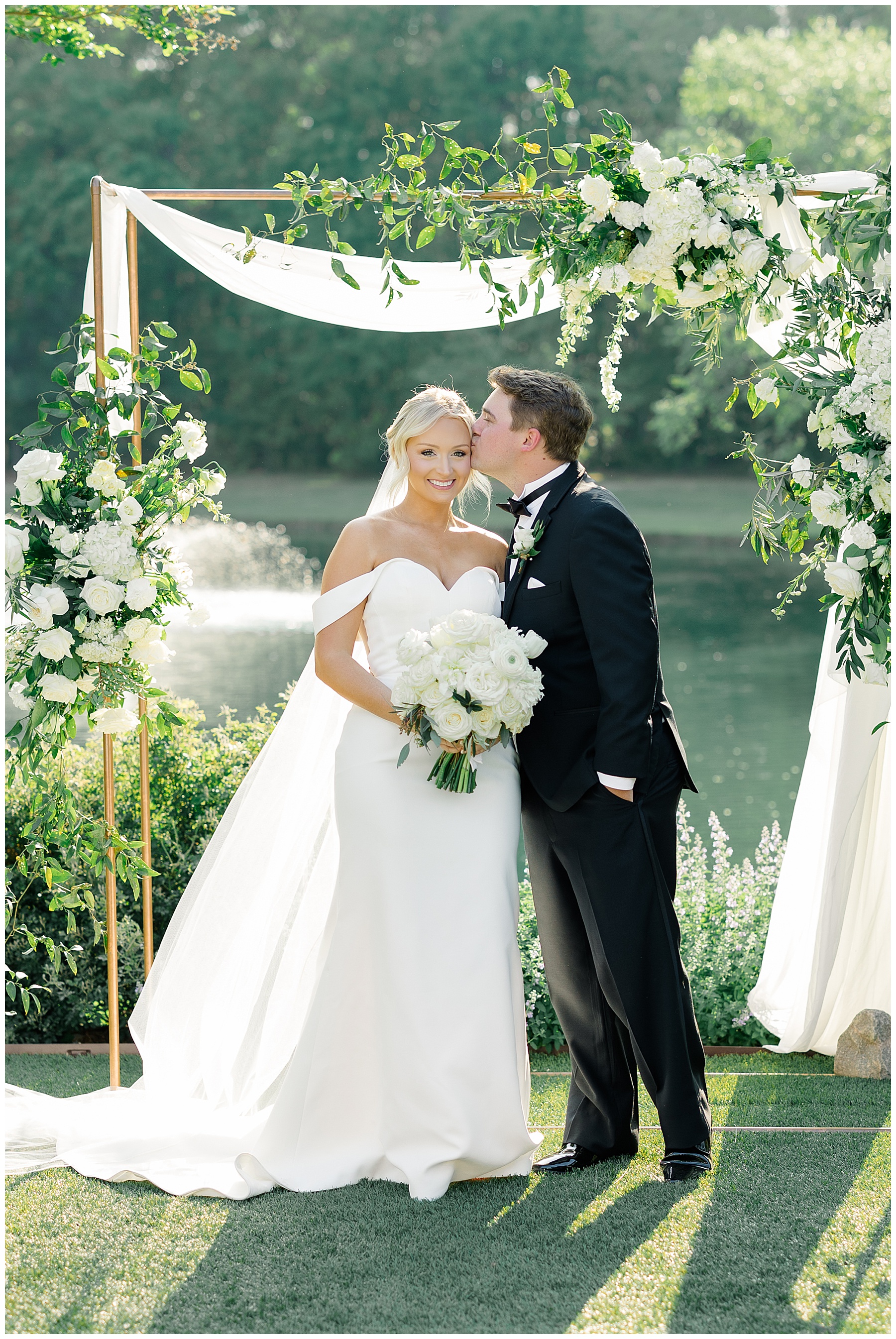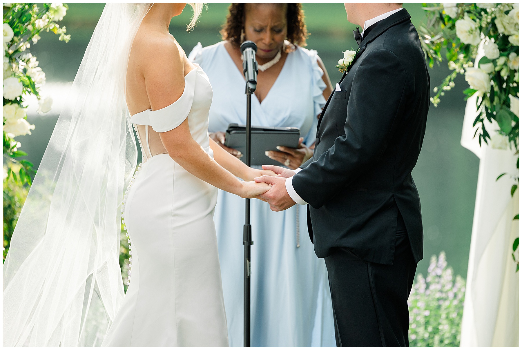The ceremony was so beautiful overlooking the pond! The flowers were blooming all around, and the ceremony arbor looked so beautiful as the focal point. A dear family friend officiated their ceremony, and the sun came out to stay during the ceremony for the rest of the afternoon – it was so pretty!