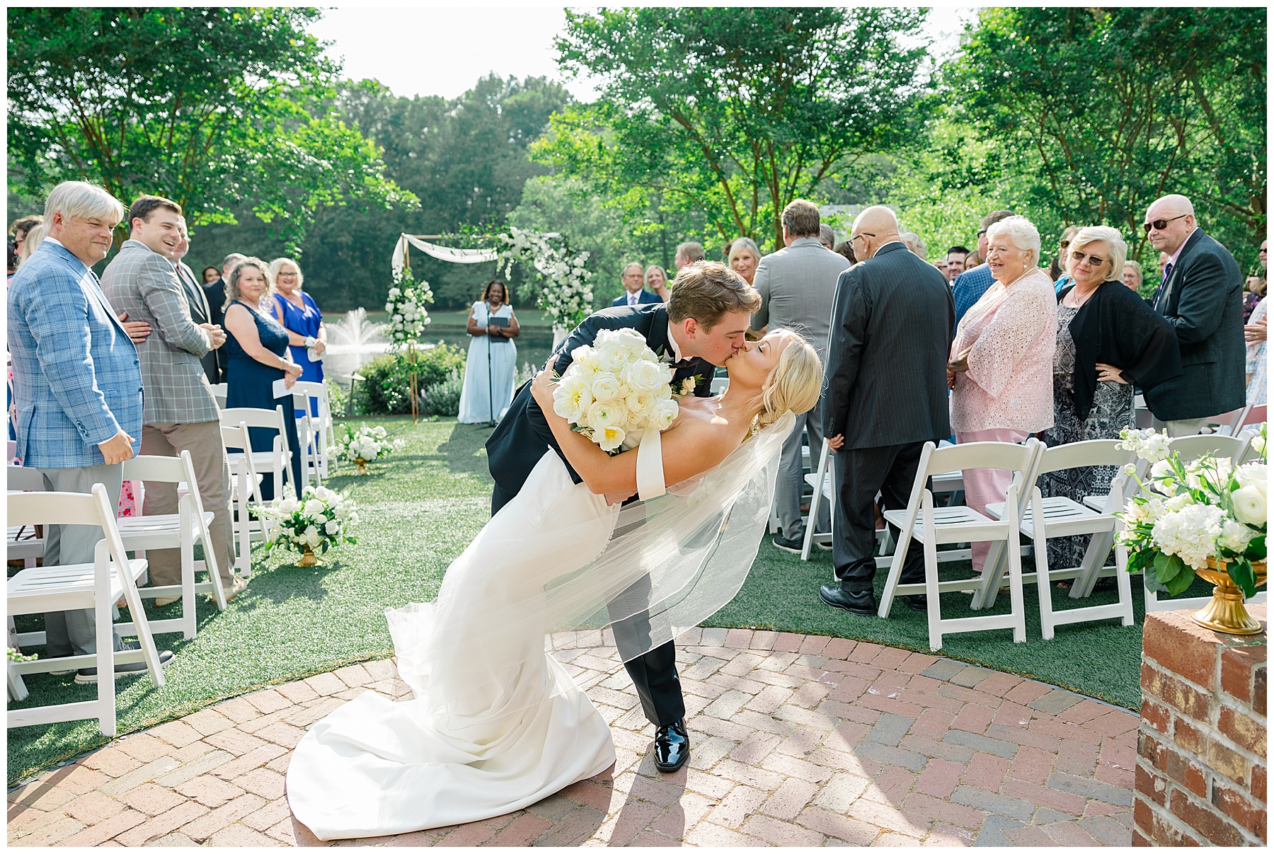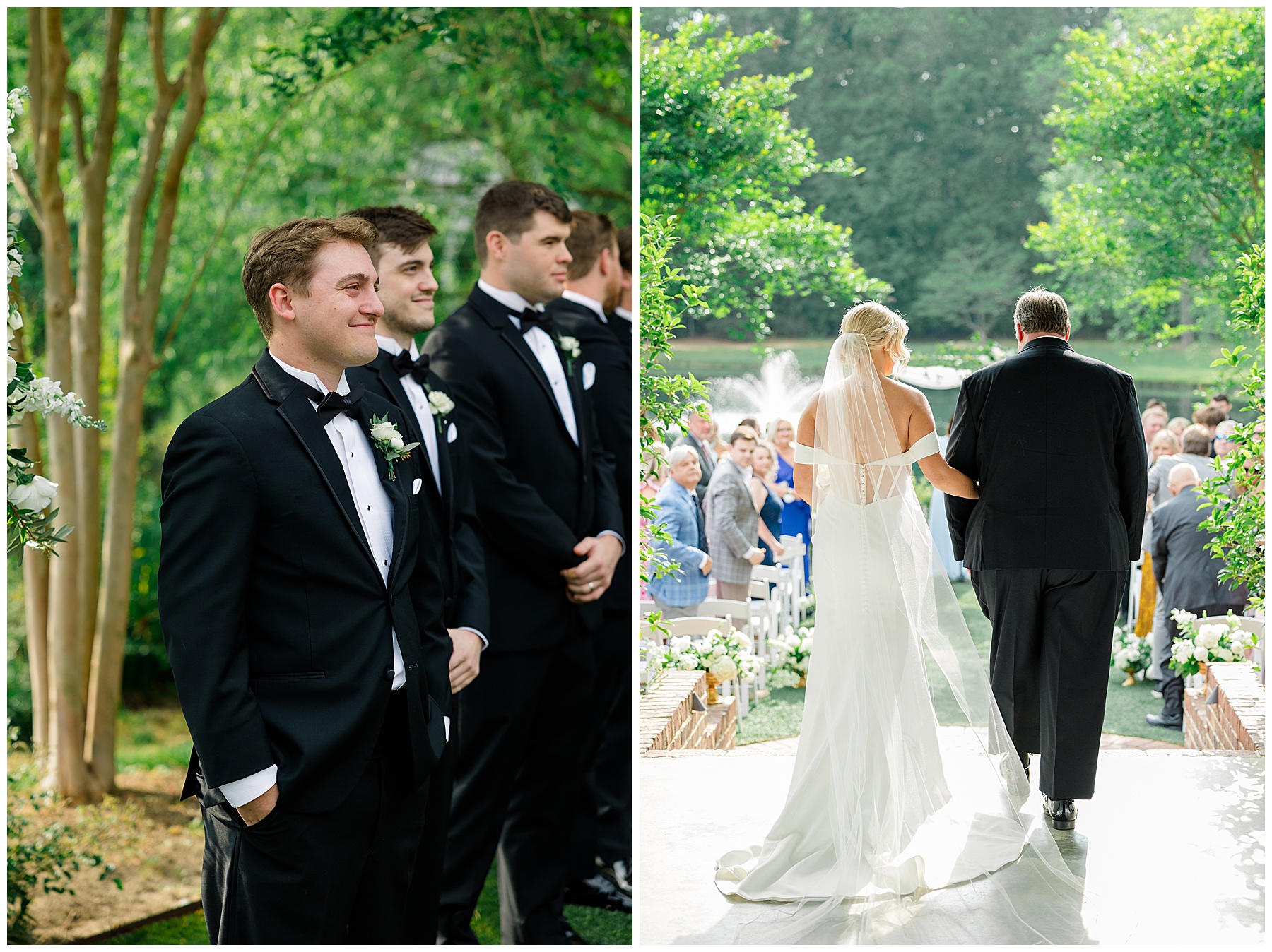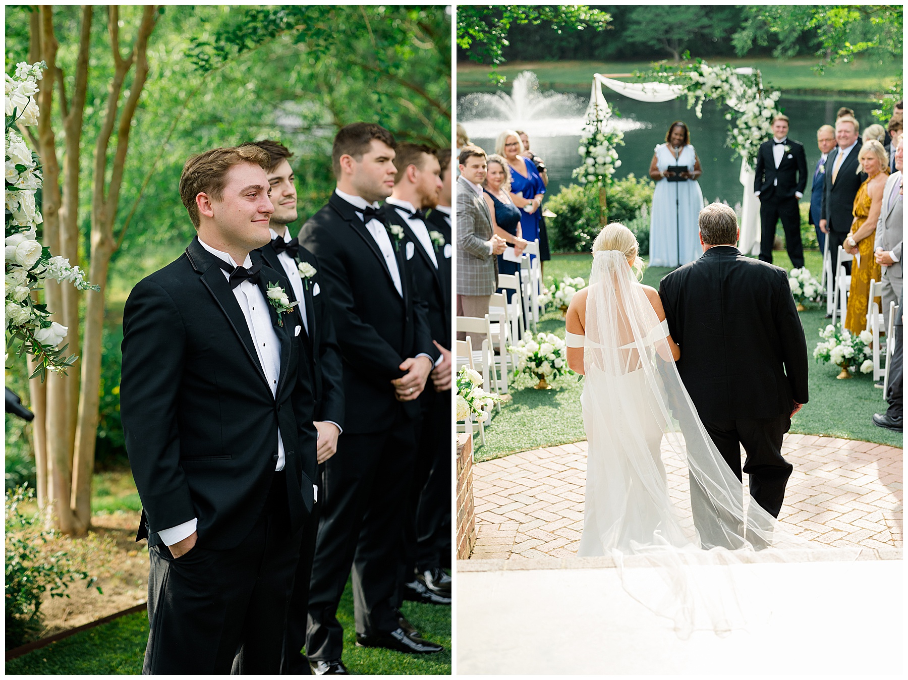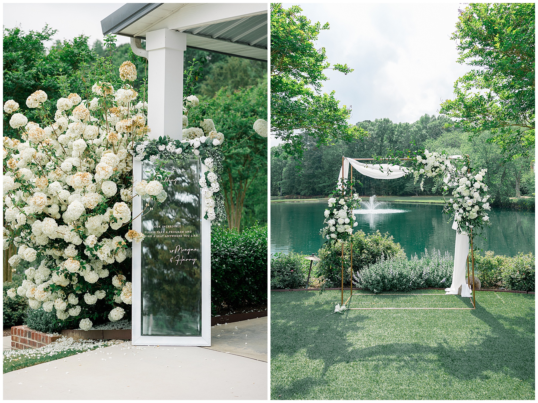 The ceremony was so beautiful overlooking the pond! The flowers were blooming all around, and the ceremony arbor looked so beautiful as the focal point. A dear family friend officiated their ceremony, and the sun came out to stay during the ceremony for the rest of the afternoon – it was so pretty!
