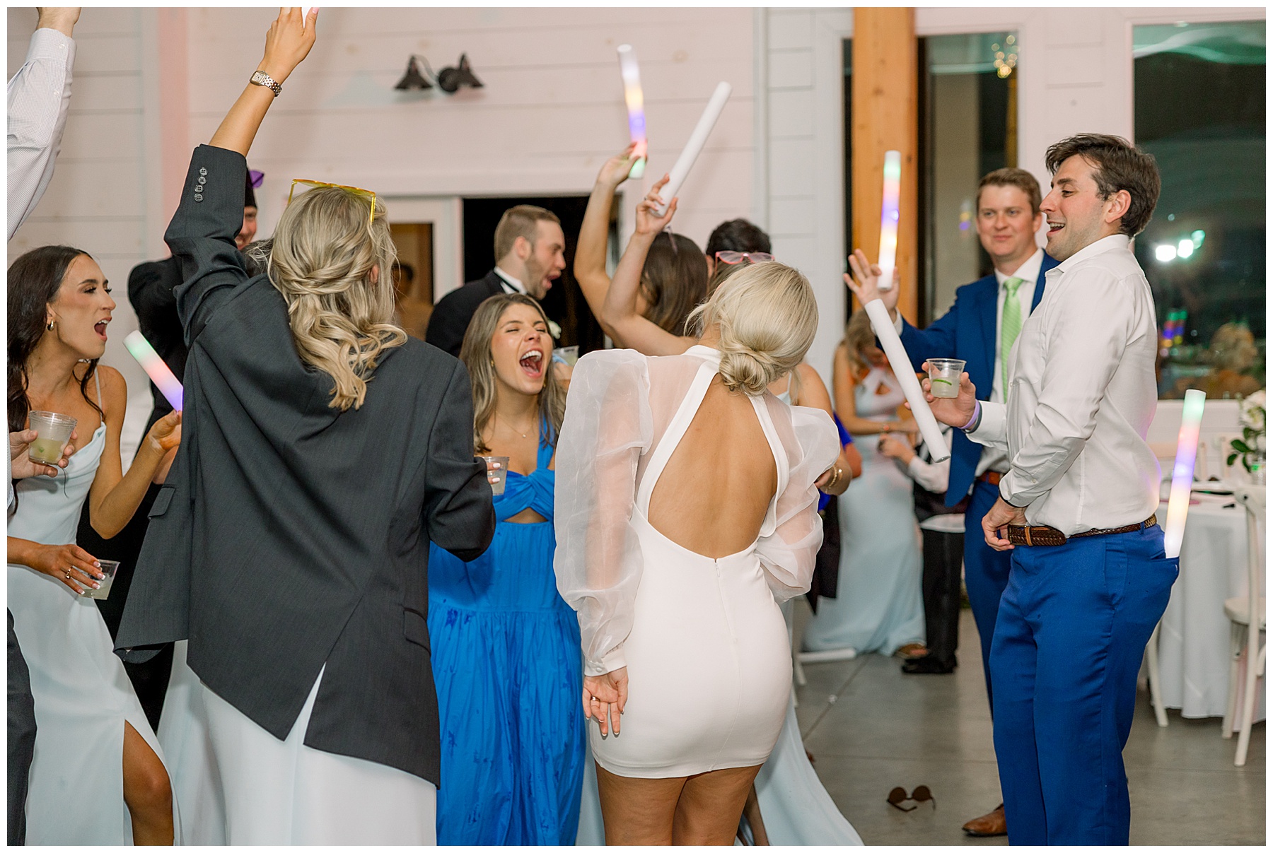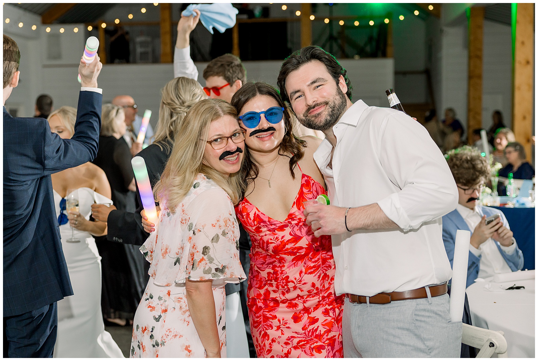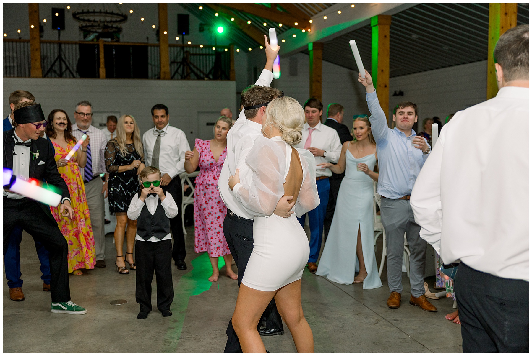 The reception kicked off with yummy food (small tacos were my fave!) cake, drinks, and tons of dancing! Morgan was on the dance floor for almost FOUR HOURS STRAIGHT, and was having the best time of her life! I loved seeing how happy she was, and it made me smile watching her dance and sing with her friends! The happiest bride!!!!! Morgan, you’re the absolute cutest!!!! Also their nephews were the stars of the reception and went just as hard as their aunt on the dance floor too – so freaking cute!!! Morgan & Harry had lighted wands, sunglasses, and even mustaches for people to wear while dancing! Then, they had late night bites to spoil their guests – pizza and Mac-n-cheese! What a delicious surprise!!!