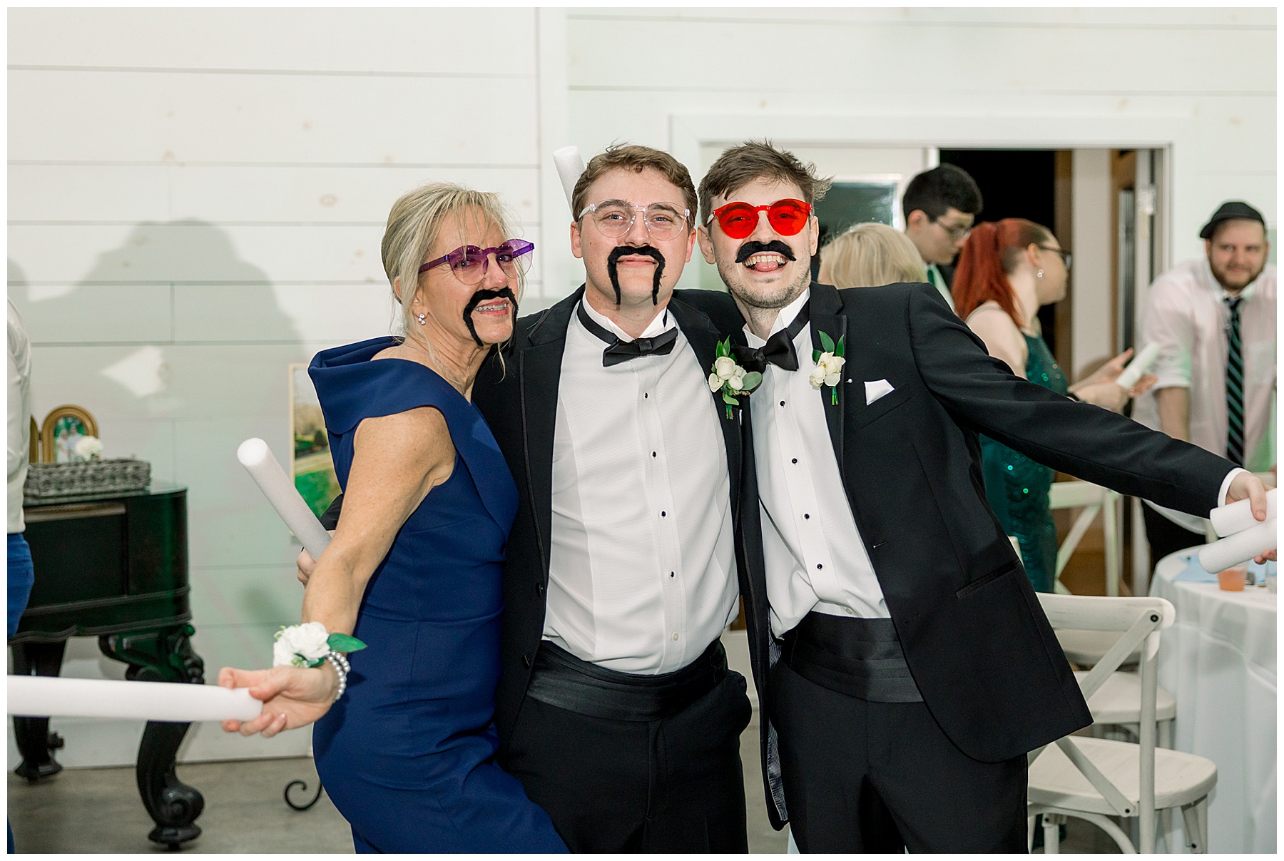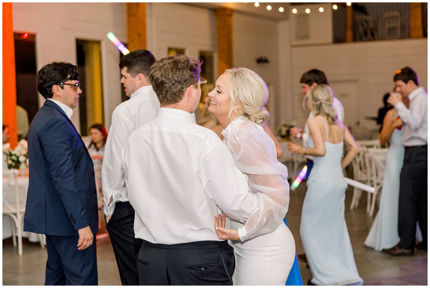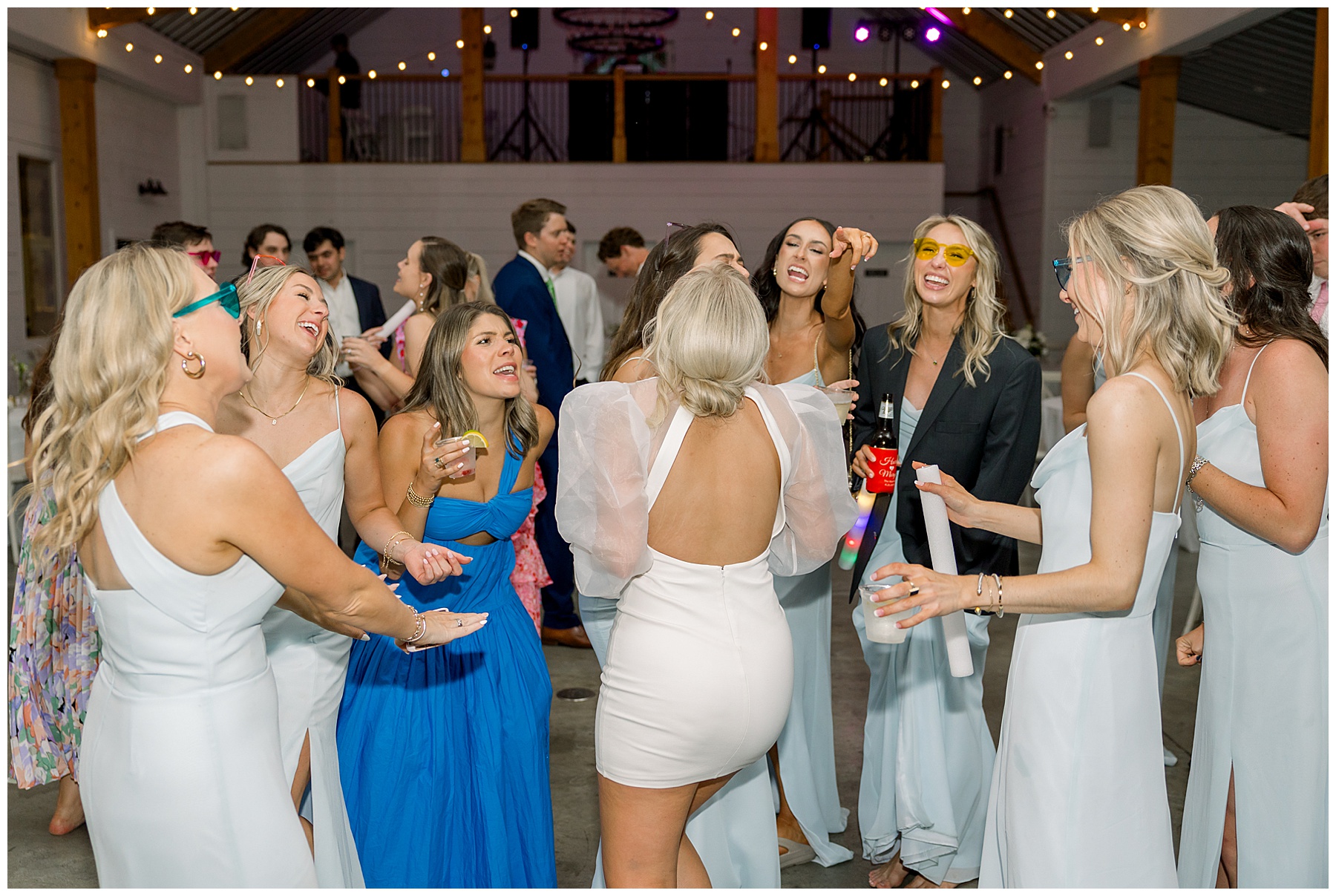 The reception kicked off with yummy food (small tacos were my fave!) cake, drinks, and tons of dancing! Morgan was on the dance floor for almost FOUR HOURS STRAIGHT, and was having the best time of her life! I loved seeing how happy she was, and it made me smile watching her dance and sing with her friends! The happiest bride!!!!! Morgan, you’re the absolute cutest!!!! Also their nephews were the stars of the reception and went just as hard as their aunt on the dance floor too – so freaking cute!!! Morgan & Harry had lighted wands, sunglasses, and even mustaches for people to wear while dancing! Then, they had late night bites to spoil their guests – pizza and Mac-n-cheese! What a delicious surprise!!!