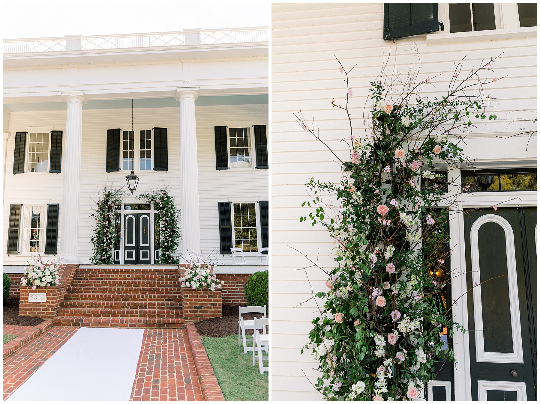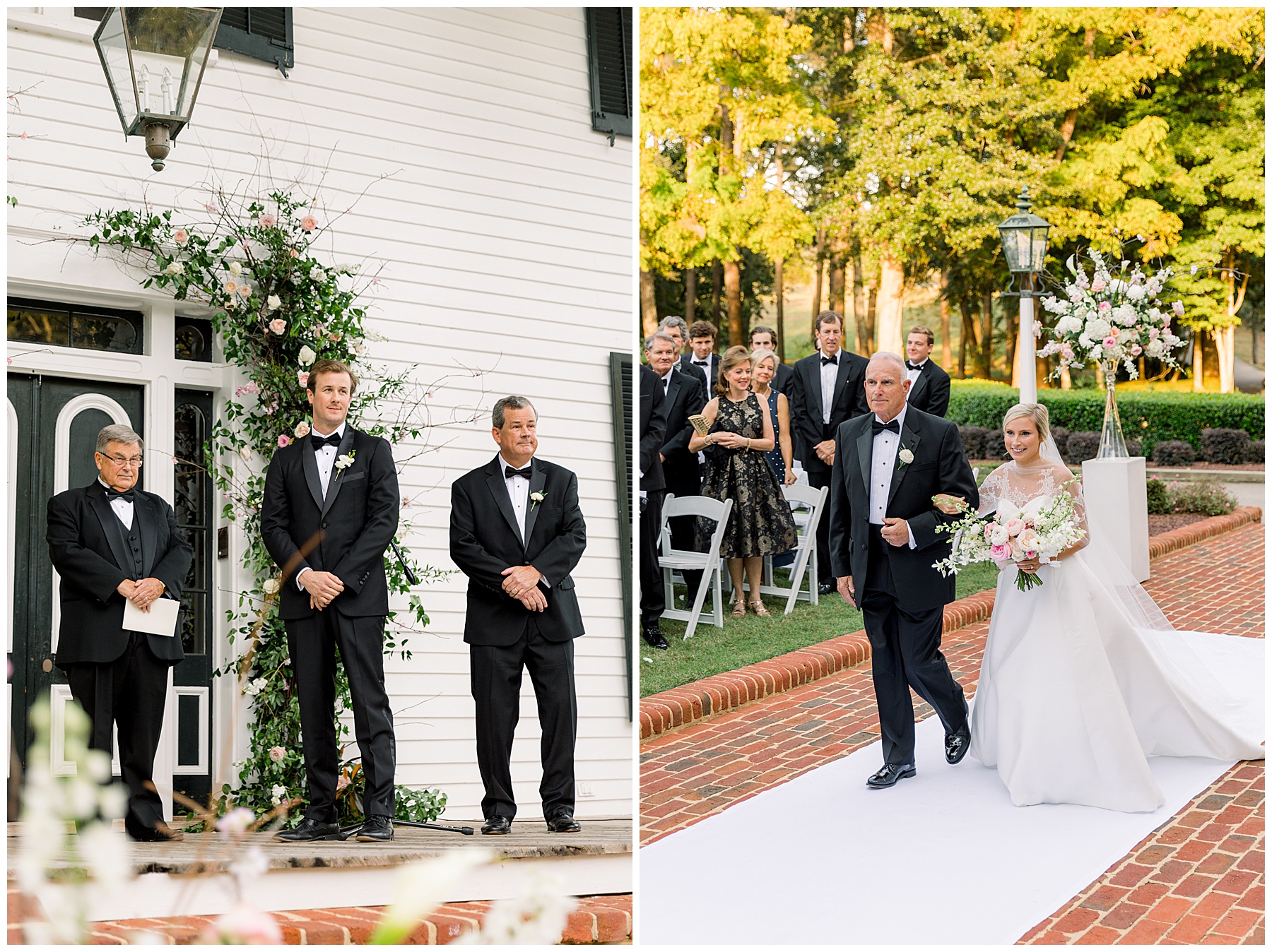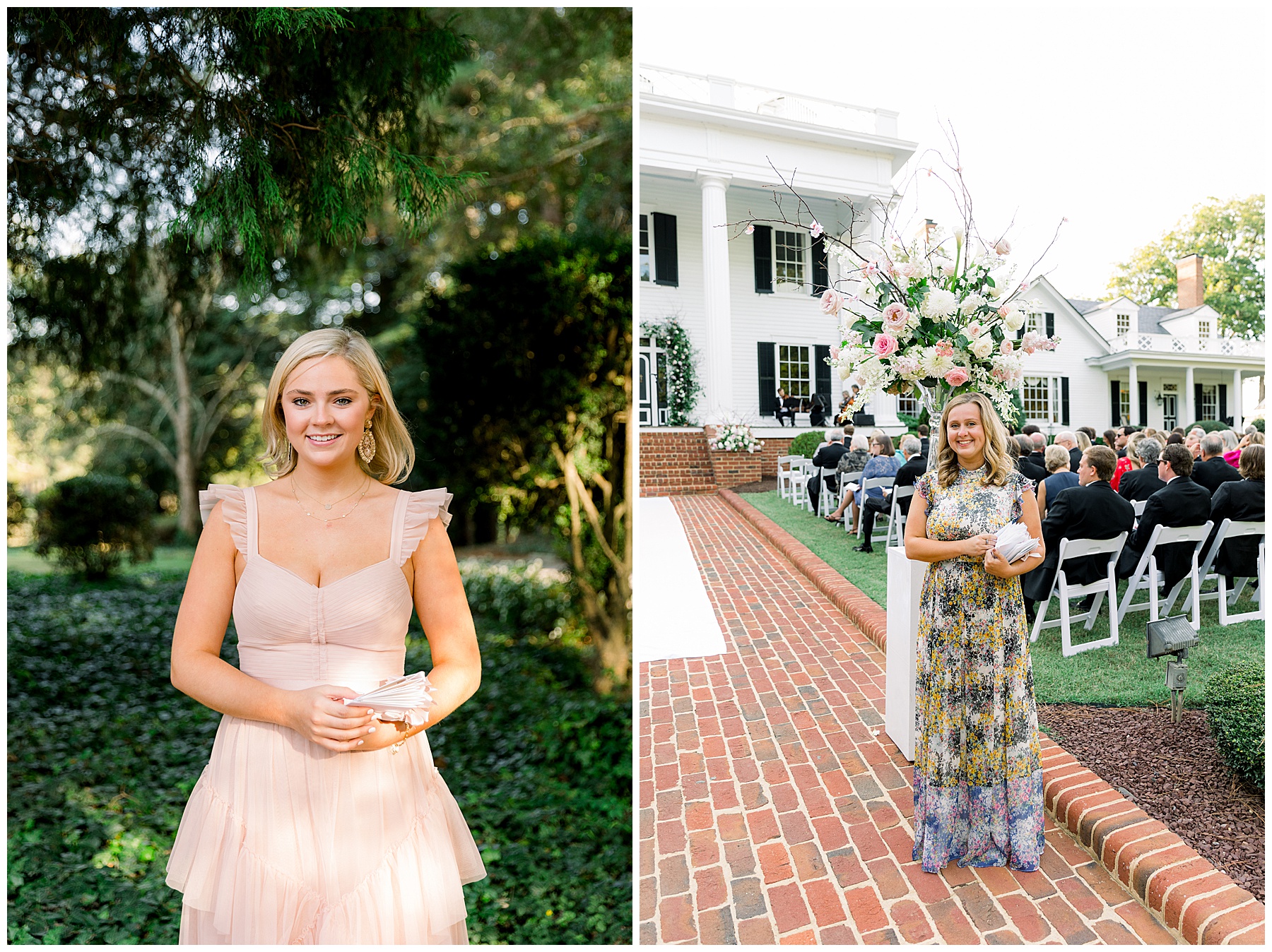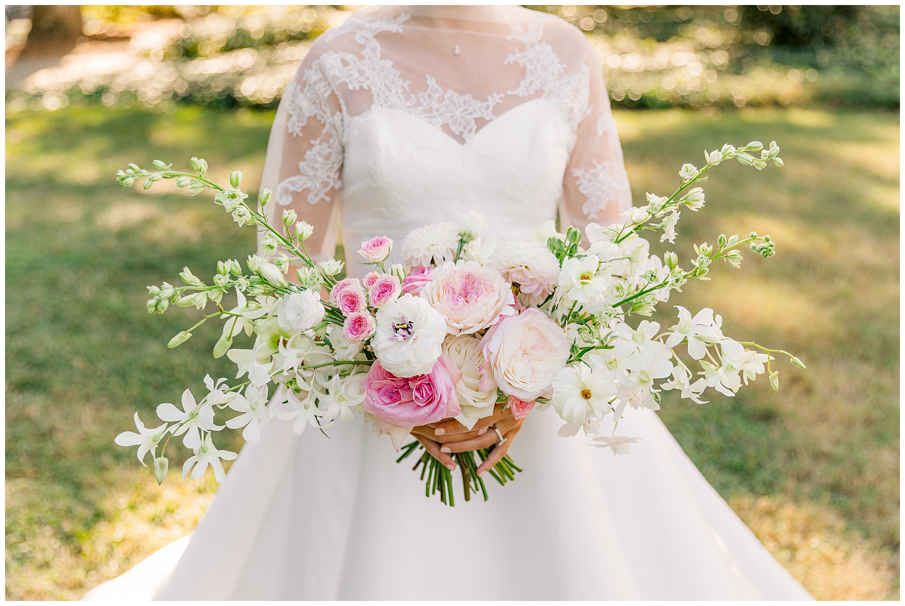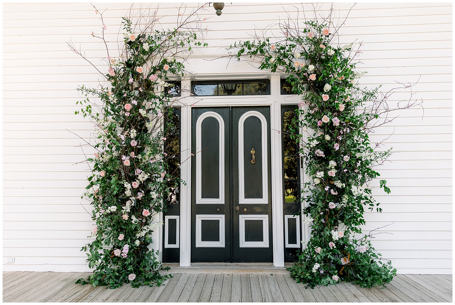 Their ceremony took place in front of the manor house – and the floral arch was so whimsical featuring some greenery from Olivia’s family home. I loved that unique touch making it personal. Their guests had perfect weather to enjoy sitting outside watching them become husband and wife. One of my favorite parts of the ceremony was the recessional – guests tossed petals as they recessed down the aisle, and it was such a romantic touch!