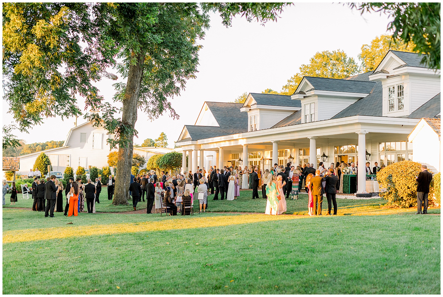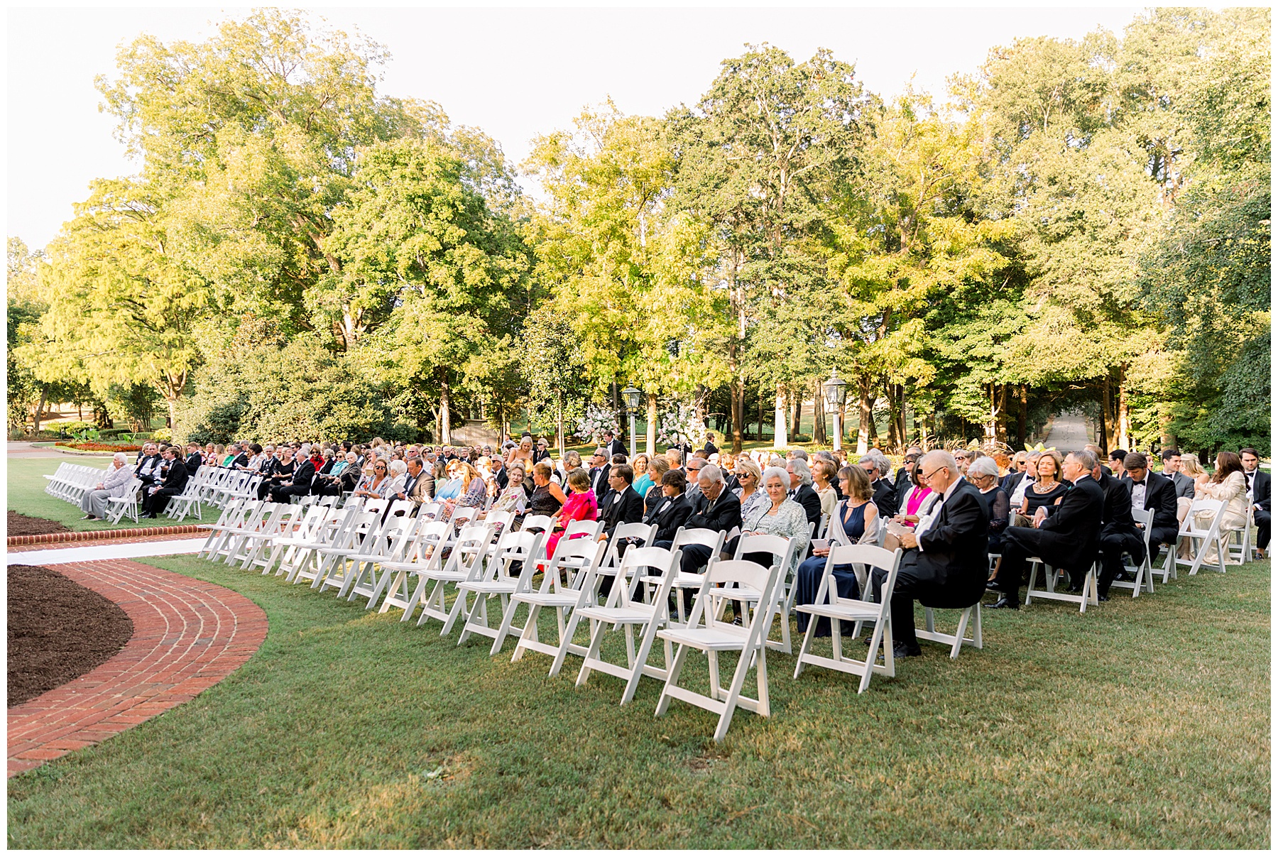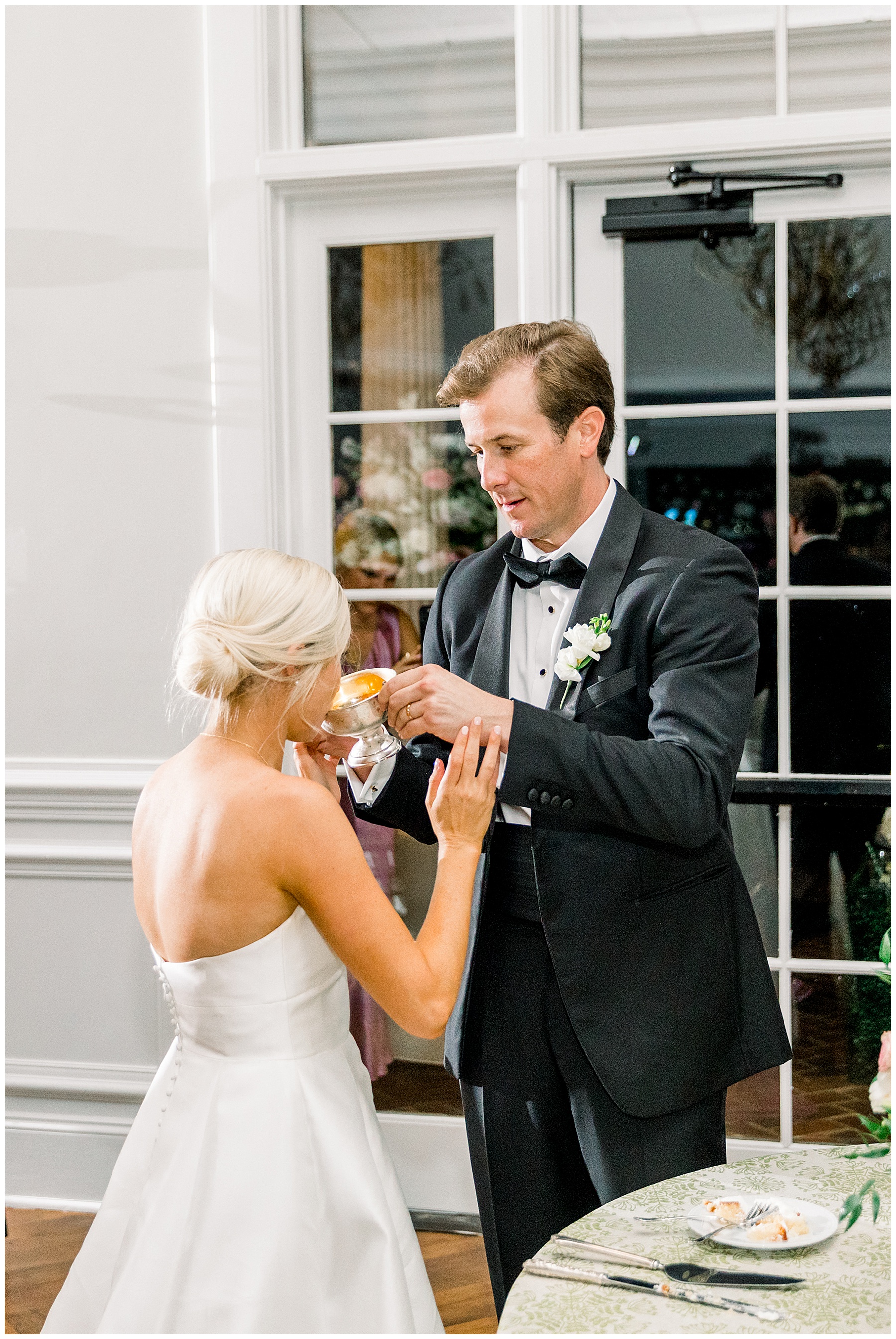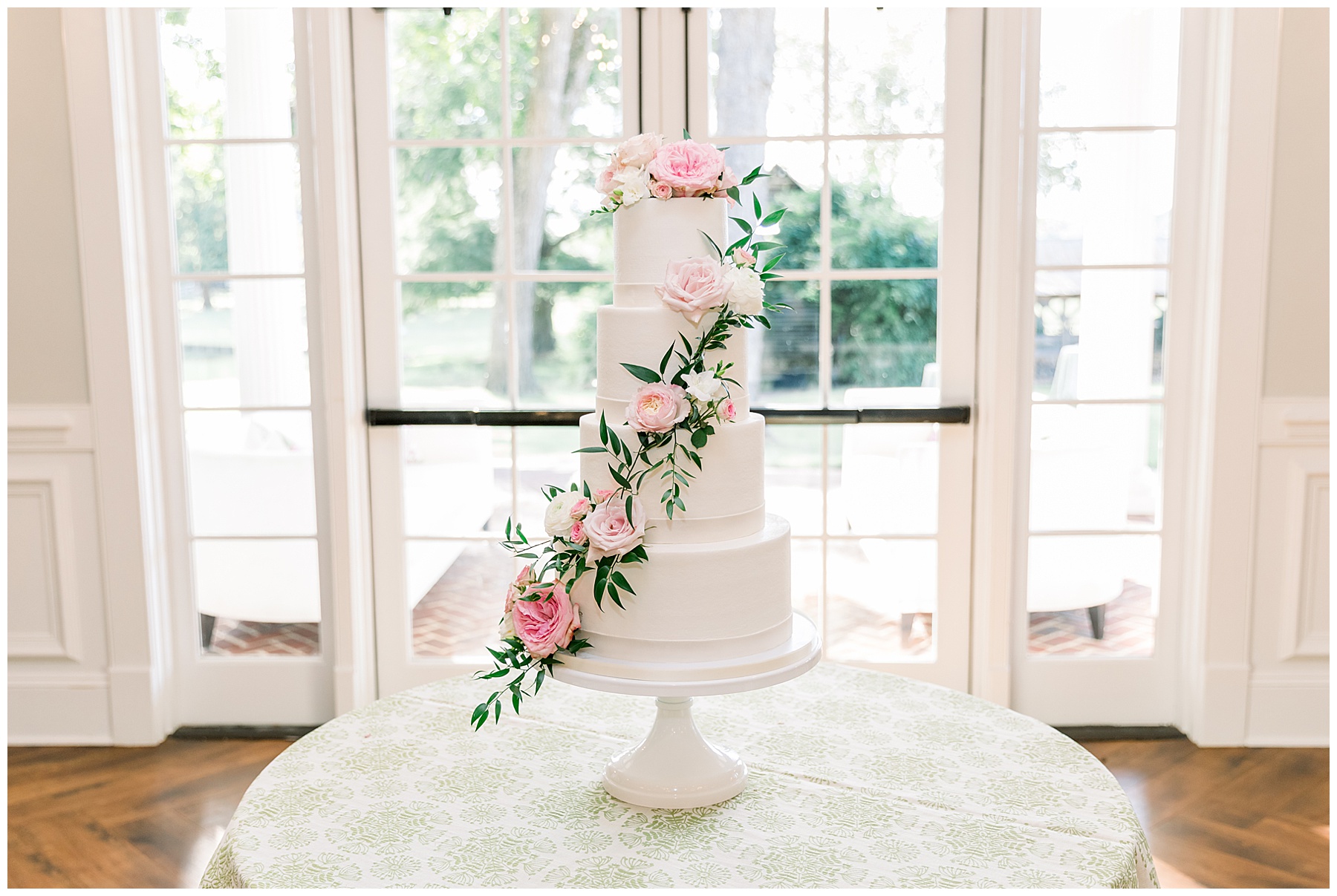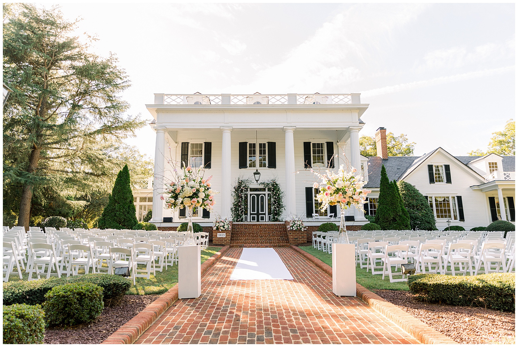 Their ceremony took place in front of the manor house – and the floral arch was so whimsical featuring some greenery from Olivia’s family home. I loved that unique touch making it personal. Their guests had perfect weather to enjoy sitting outside watching them become husband and wife. One of my favorite parts of the ceremony was the recessional – guests tossed petals as they recessed down the aisle, and it was such a romantic touch!