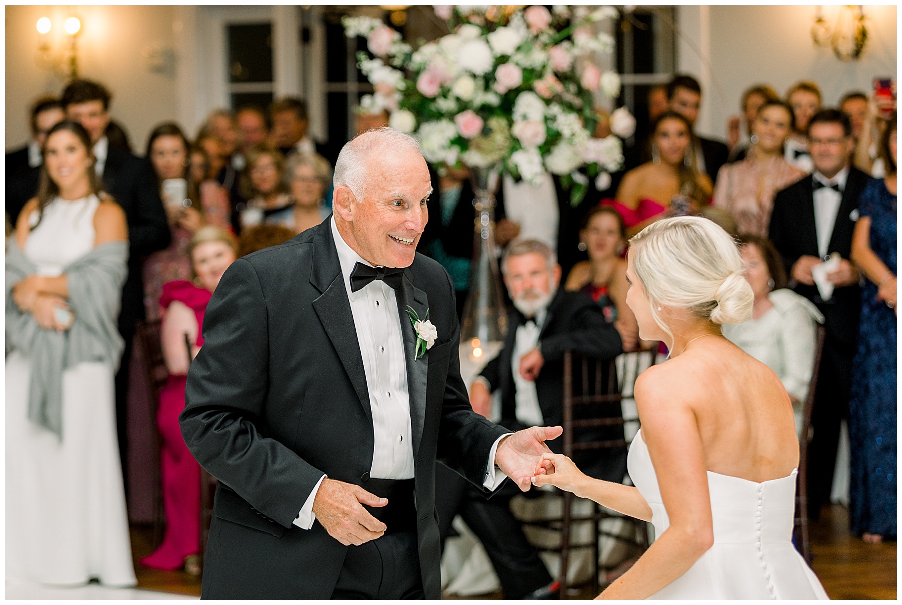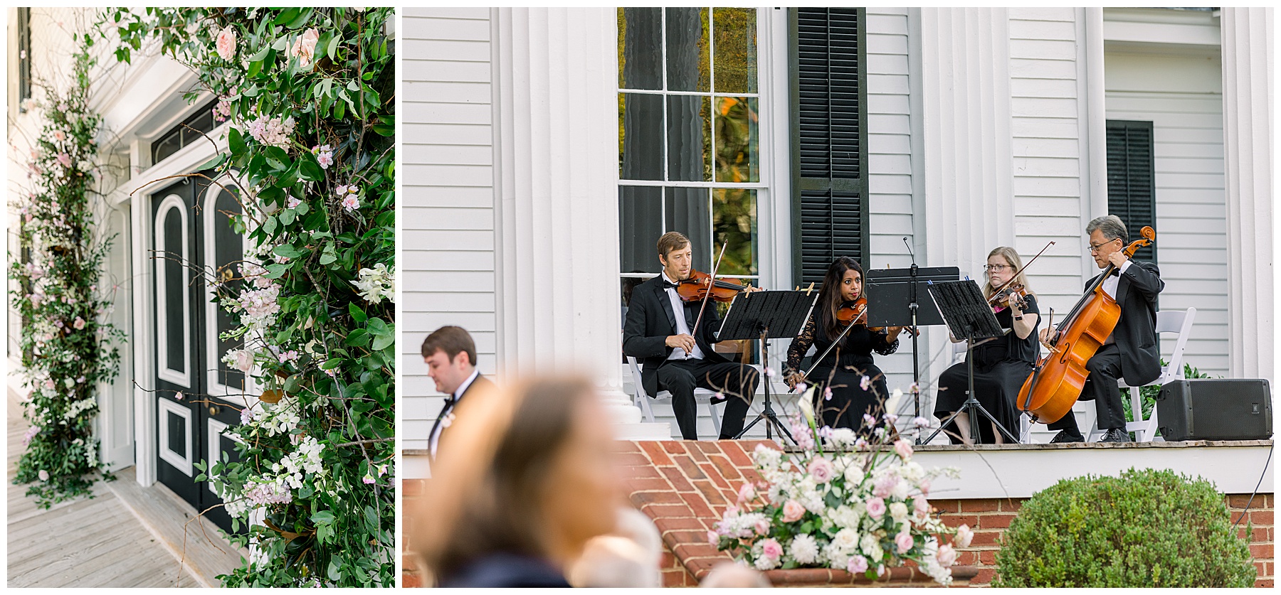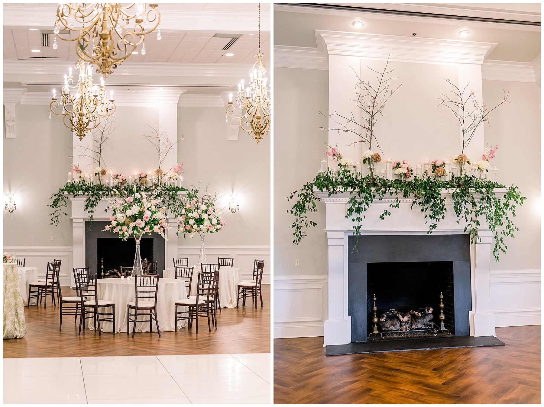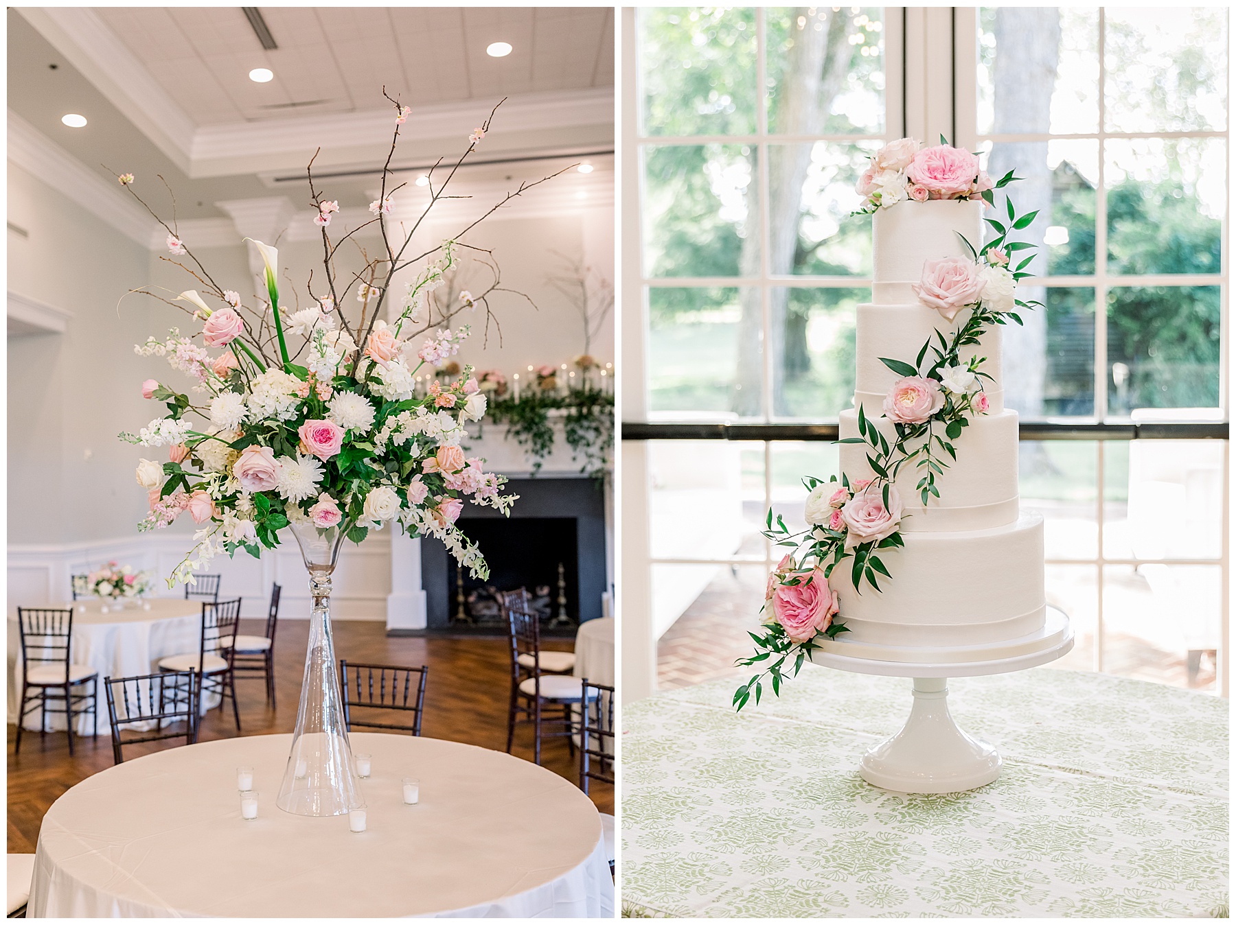 Their ceremony took place in front of the manor house – and the floral arch was so whimsical featuring some greenery from Olivia’s family home. I loved that unique touch making it personal. Their guests had perfect weather to enjoy sitting outside watching them become husband and wife. One of my favorite parts of the ceremony was the recessional – guests tossed petals as they recessed down the aisle, and it was such a romantic touch!