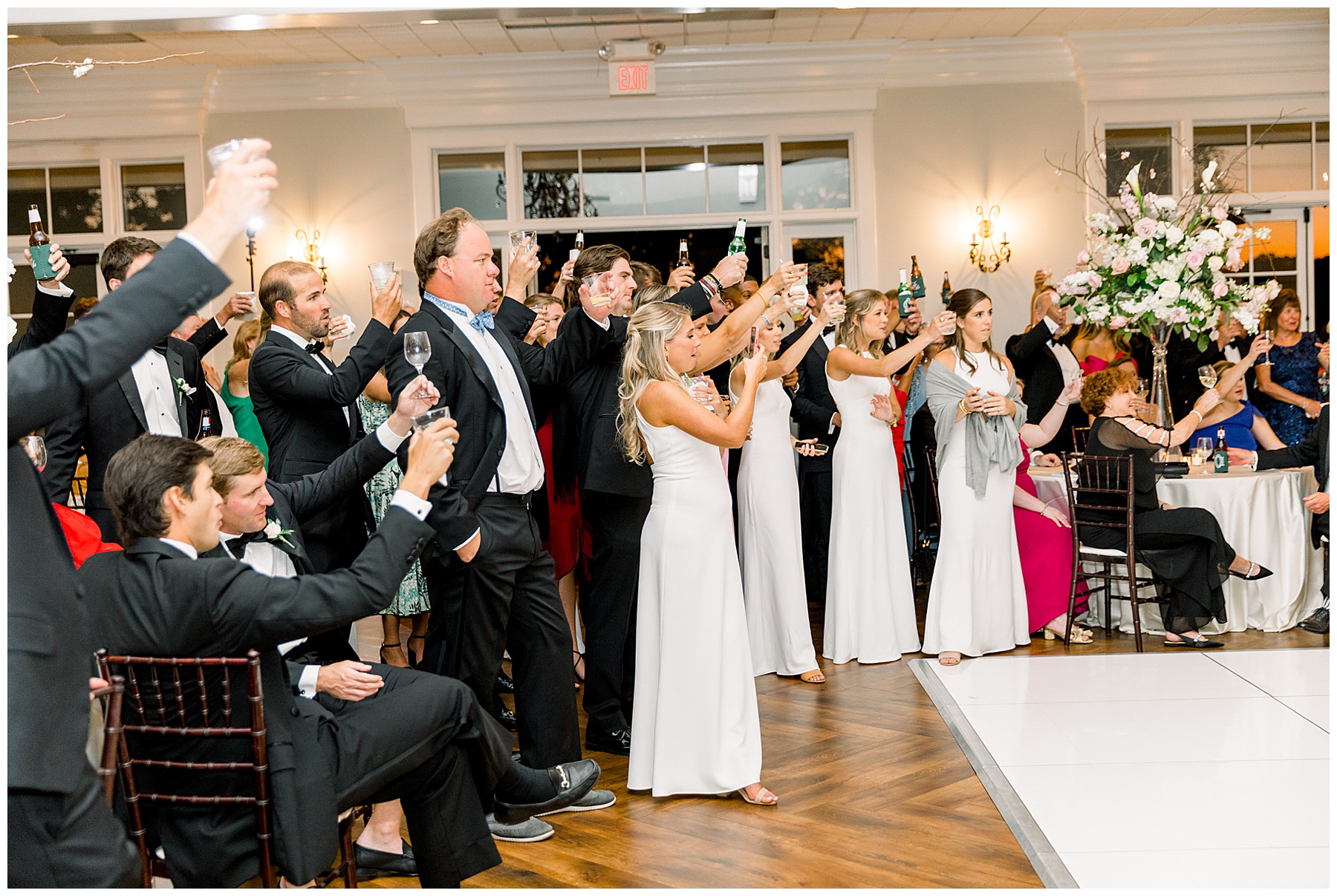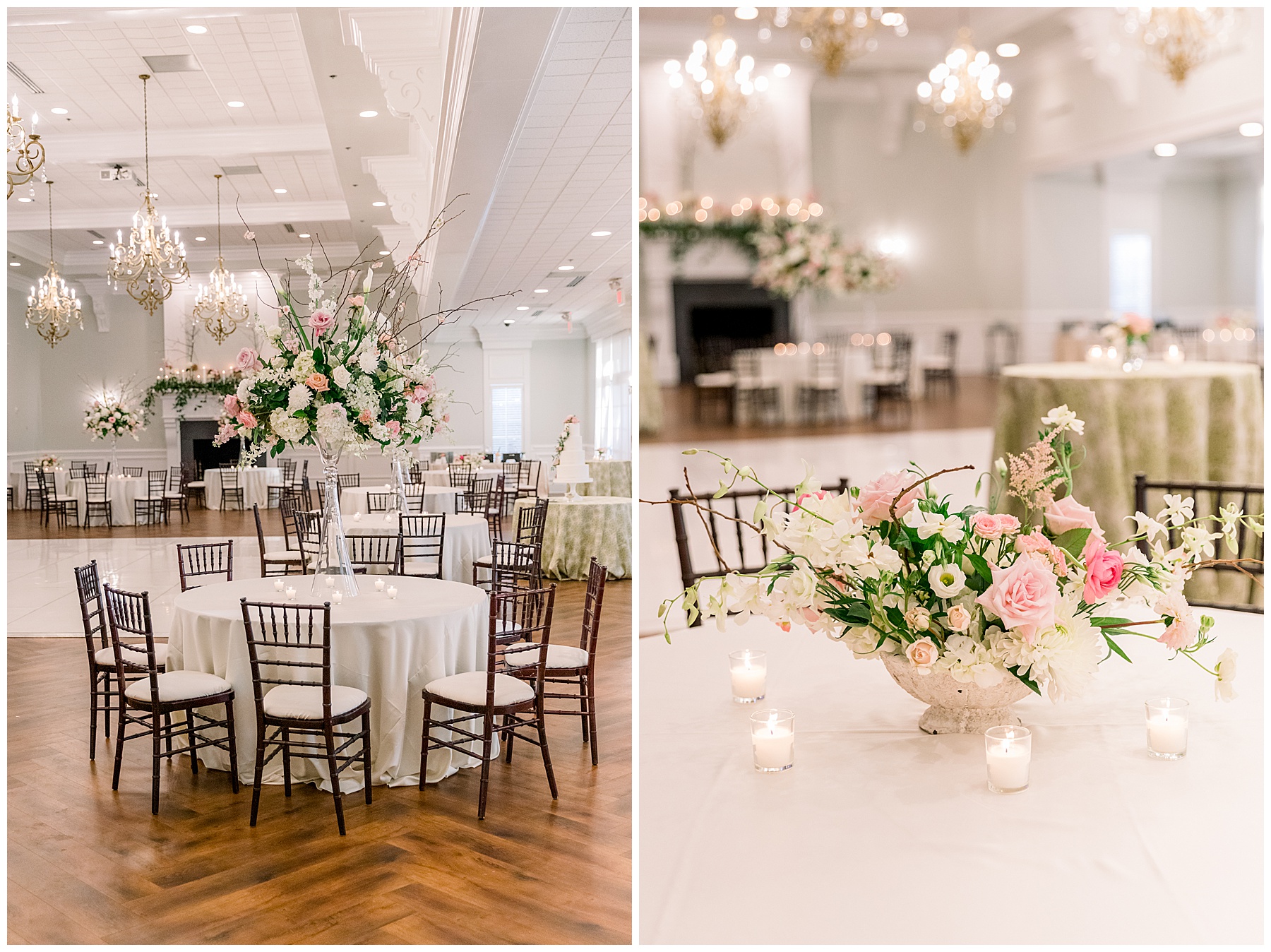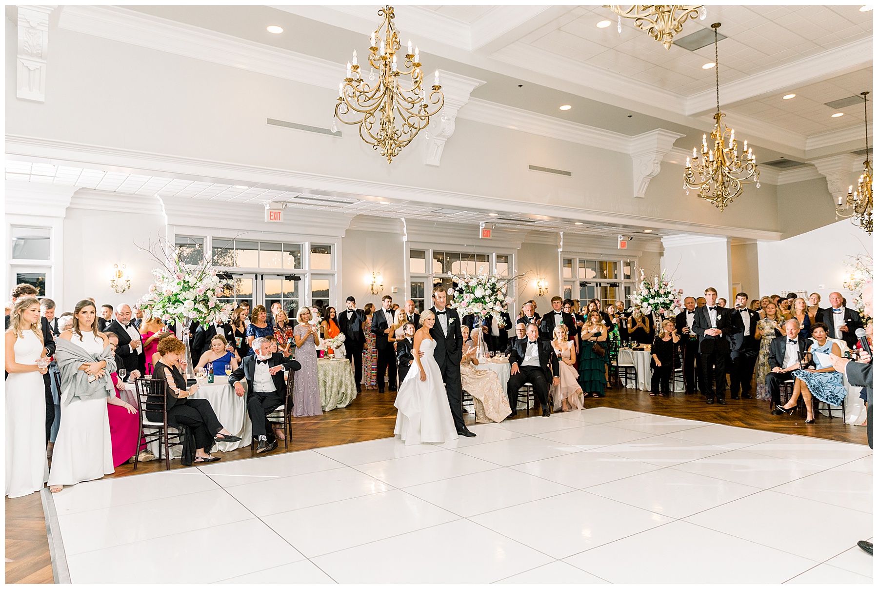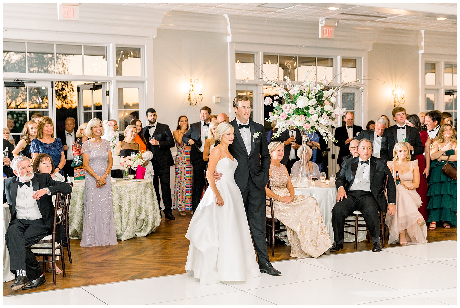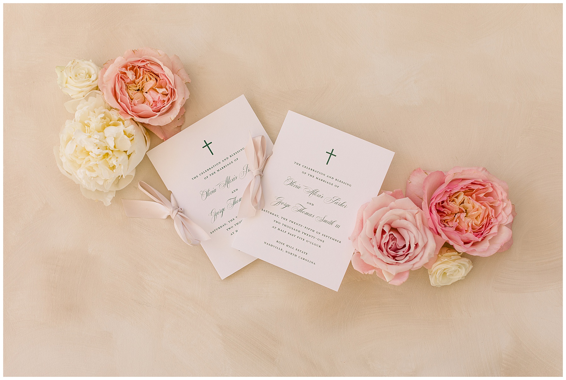 Their ceremony took place in front of the manor house – and the floral arch was so whimsical featuring some greenery from Olivia’s family home. I loved that unique touch making it personal. Their guests had perfect weather to enjoy sitting outside watching them become husband and wife. One of my favorite parts of the ceremony was the recessional – guests tossed petals as they recessed down the aisle, and it was such a romantic touch!