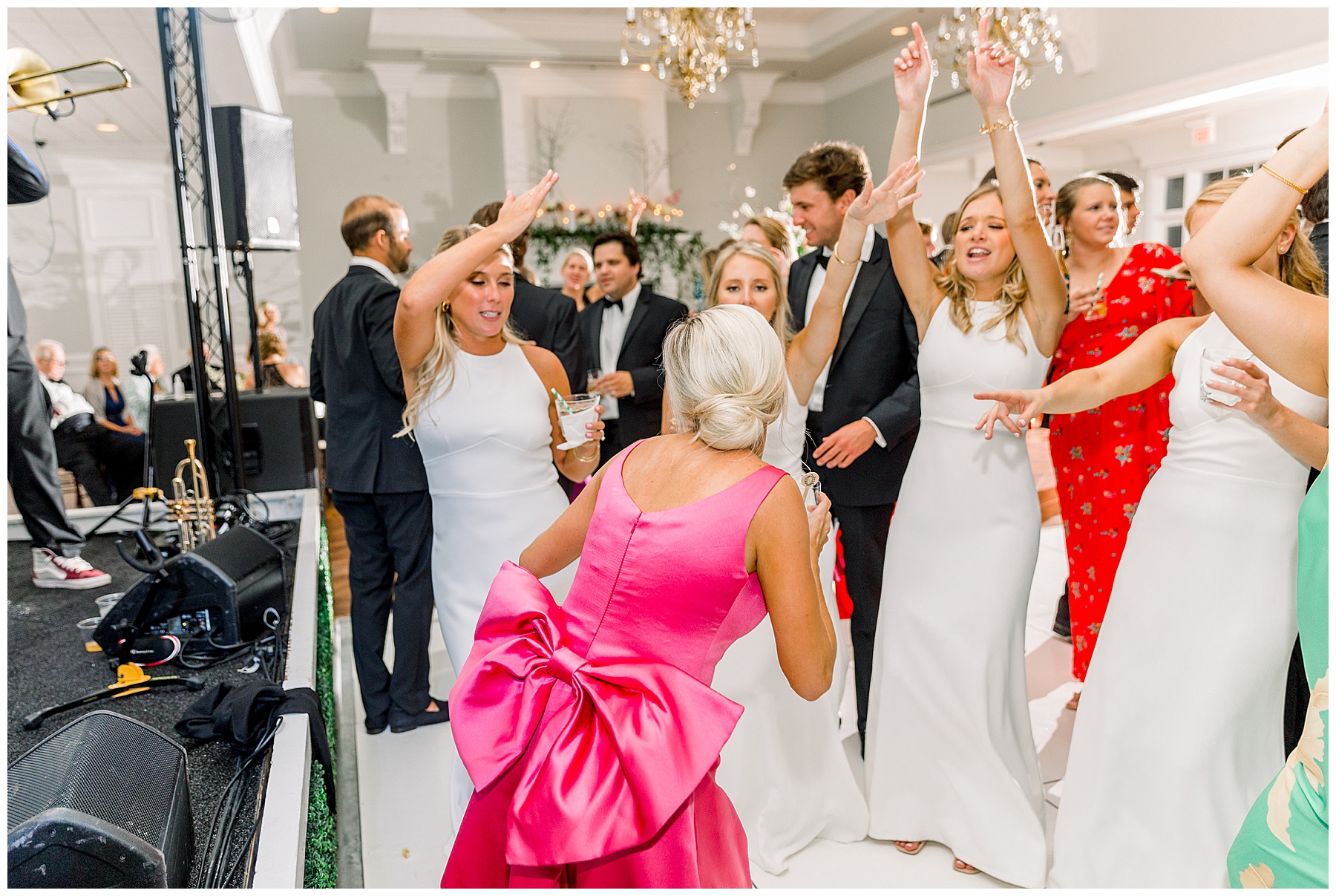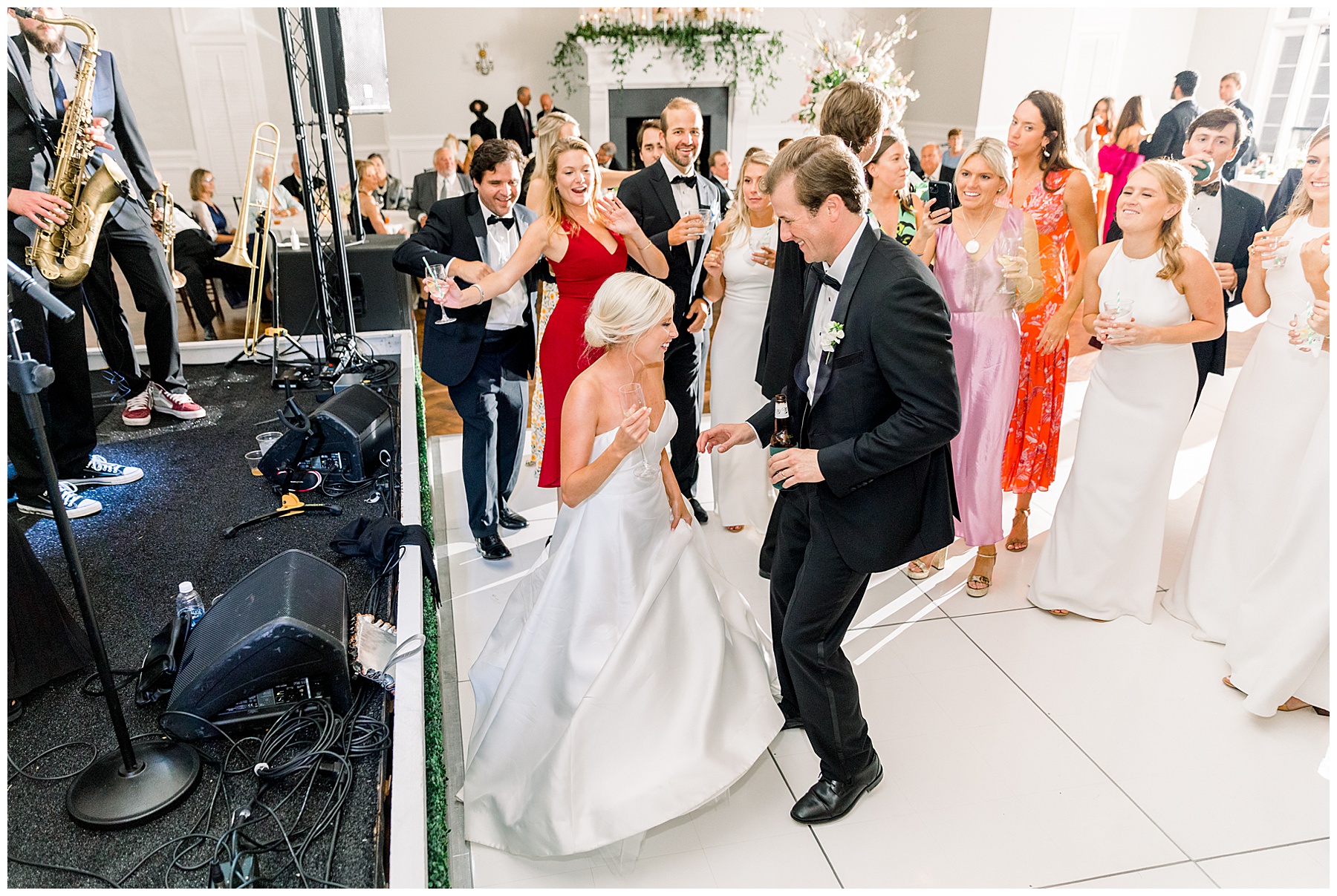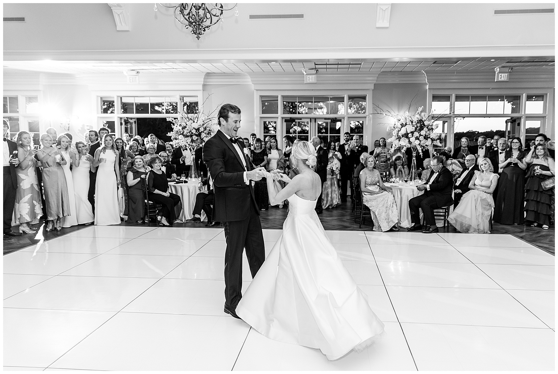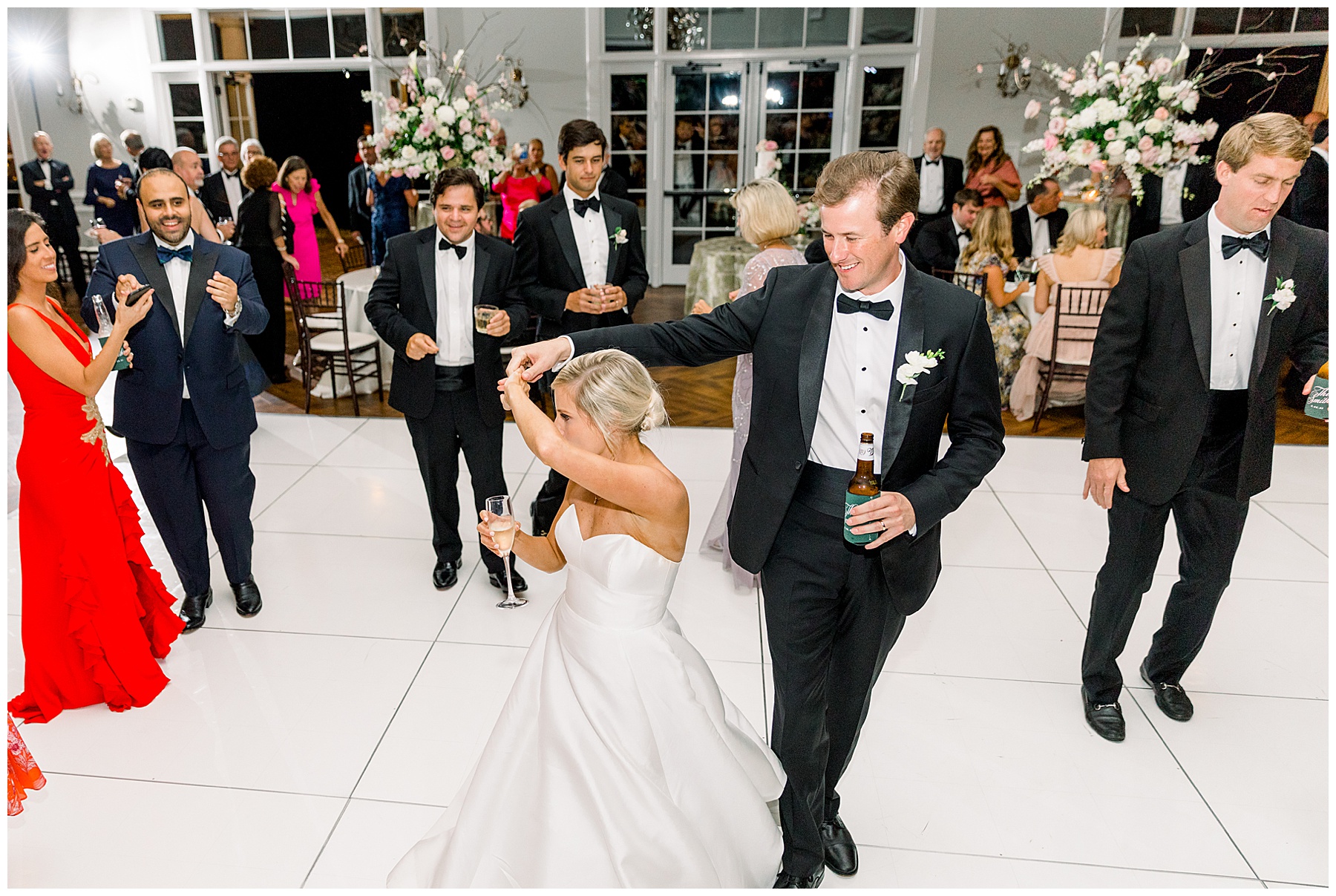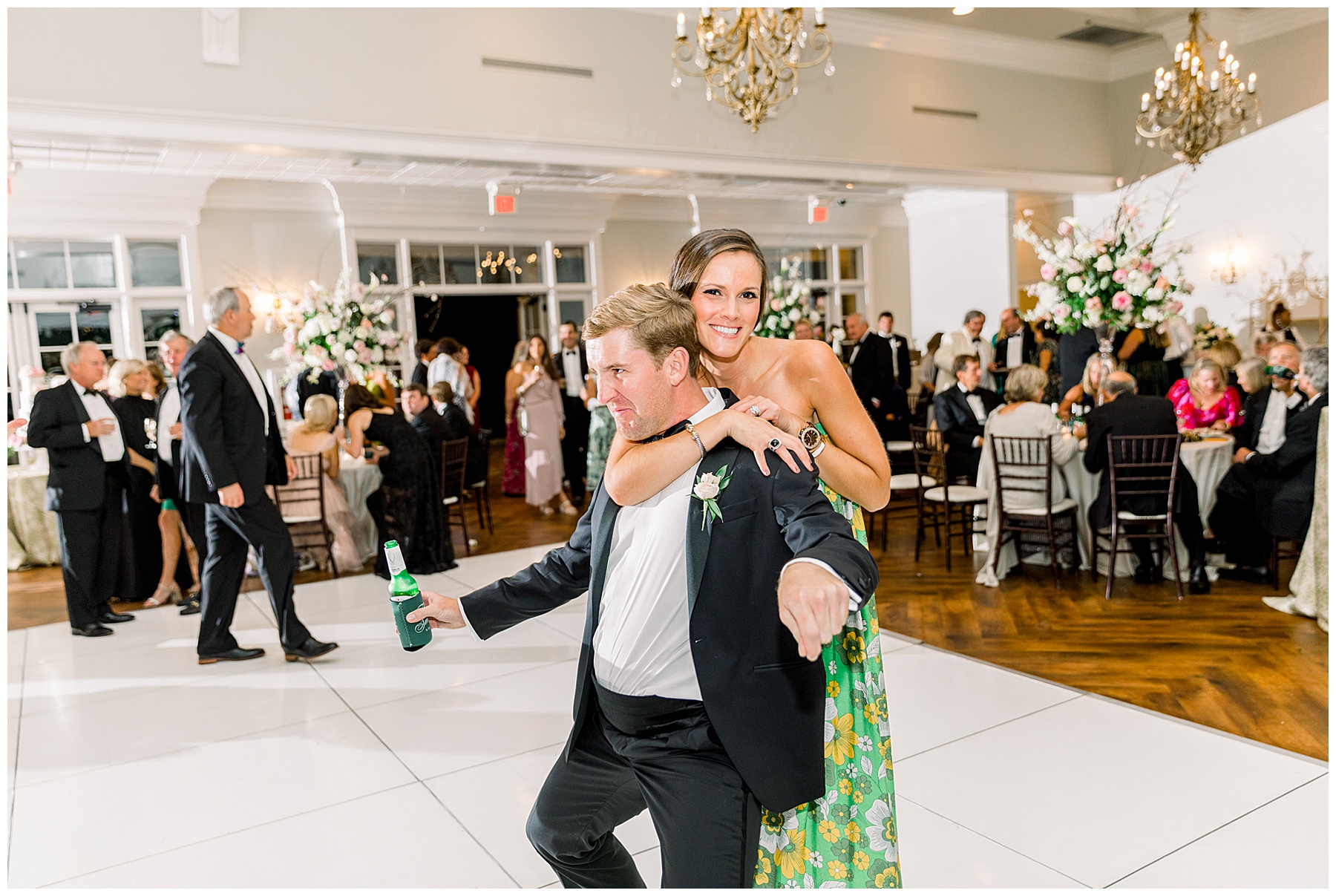 Their ceremony took place in front of the manor house – and the floral arch was so whimsical featuring some greenery from Olivia’s family home. I loved that unique touch making it personal. Their guests had perfect weather to enjoy sitting outside watching them become husband and wife. One of my favorite parts of the ceremony was the recessional – guests tossed petals as they recessed down the aisle, and it was such a romantic touch!