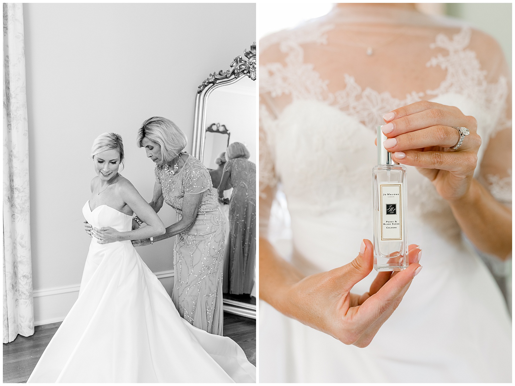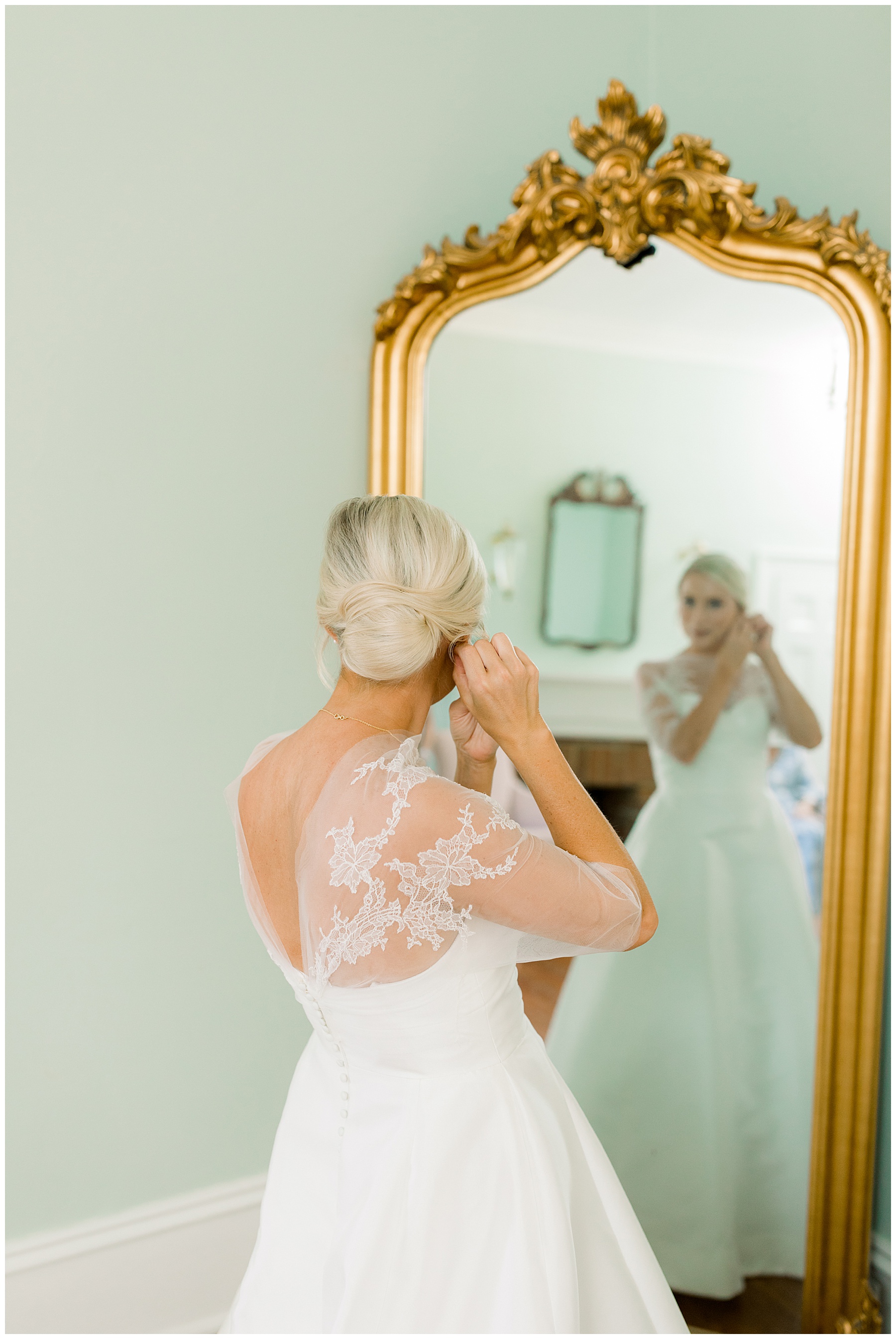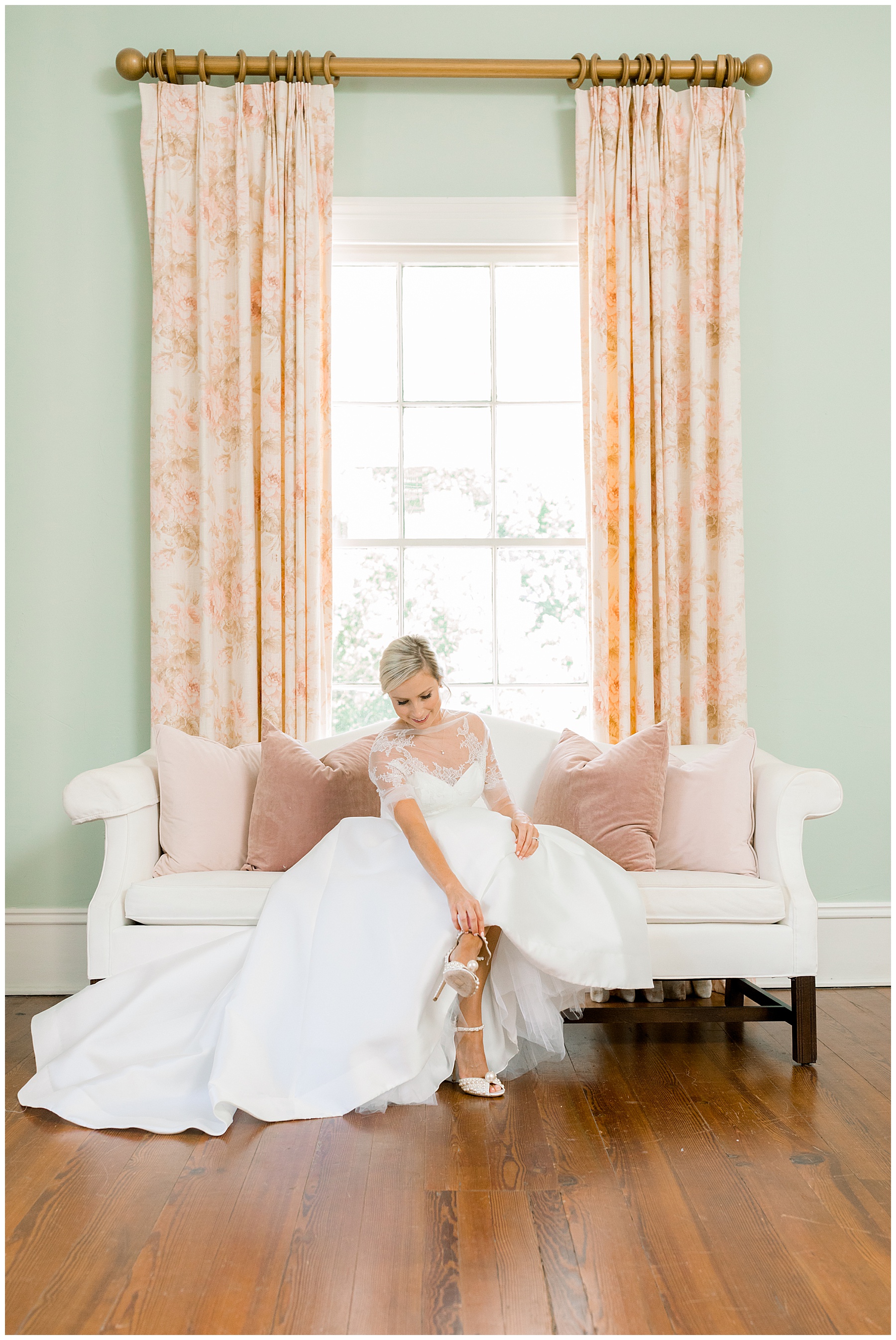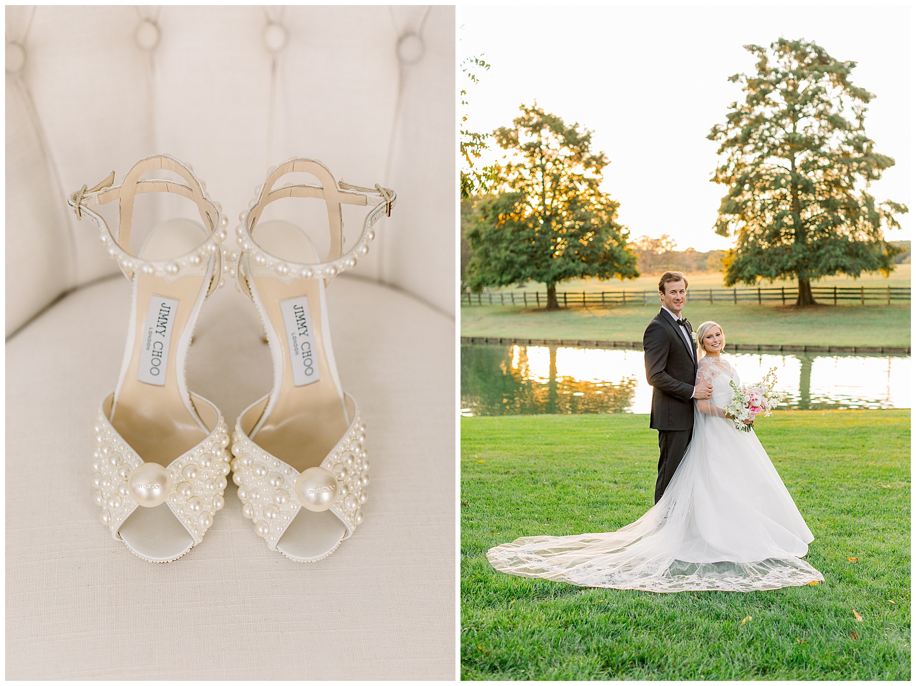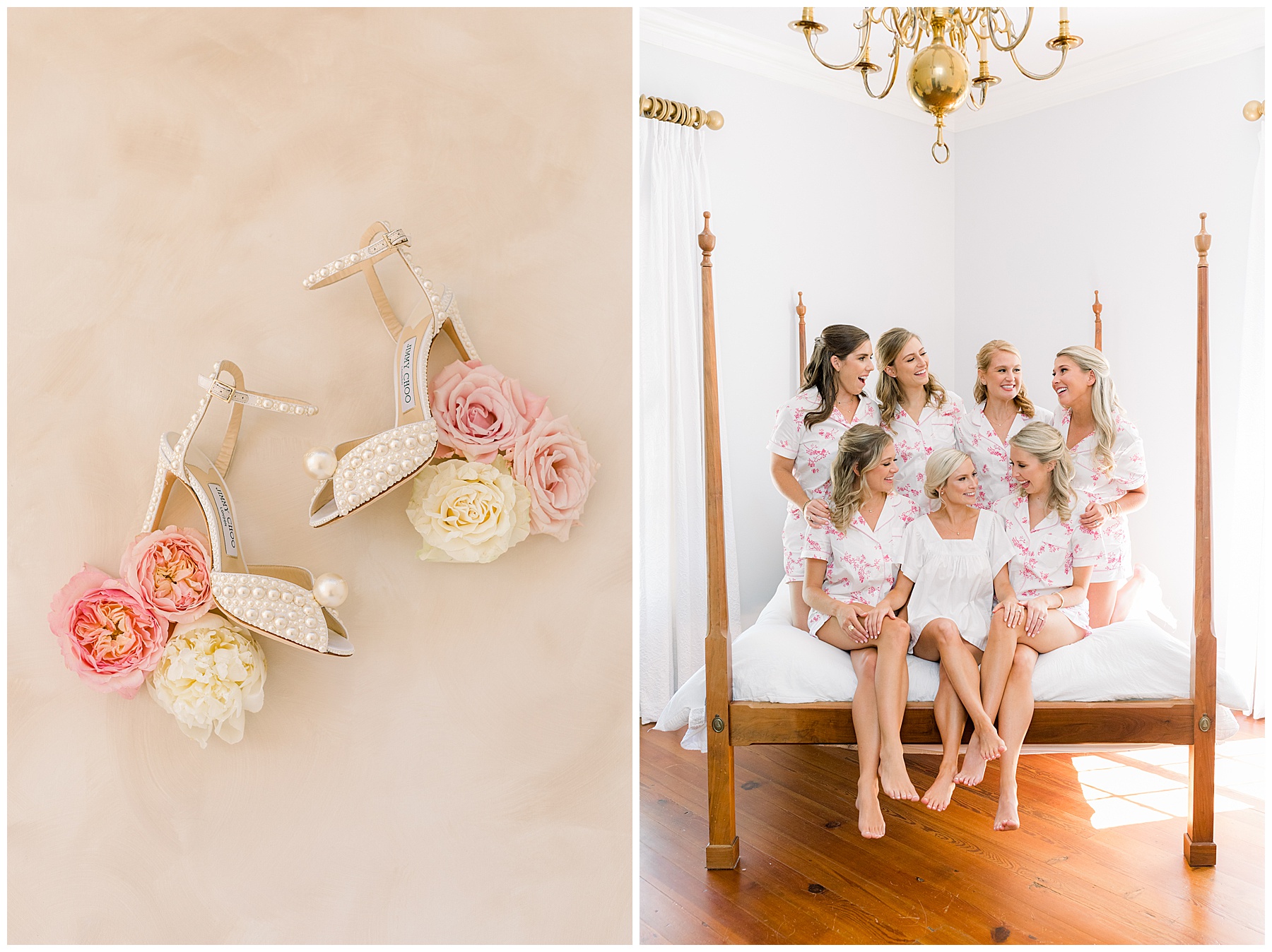 We started off the day photographing Olivia’s details. I loved all the beautiful paper pieces, and so much thought was put into each item! A handkerchief from George’s grandmother (who passed away), a cocktail sign named after their dog, a custom venue watercolor by one of Olivia’s bridesmaids, and of course that gorgeous butterfly veil was so stunning to photograph. Olivia’s Jimmy Choos covered in pearls were so unique and a modern twist on a classic – pearls! I’ve had so many people message me saying how much they LOVE Olivia’s shoes! Even more impressive was that Olivia wore those high heels almost the ENTIRE day!
