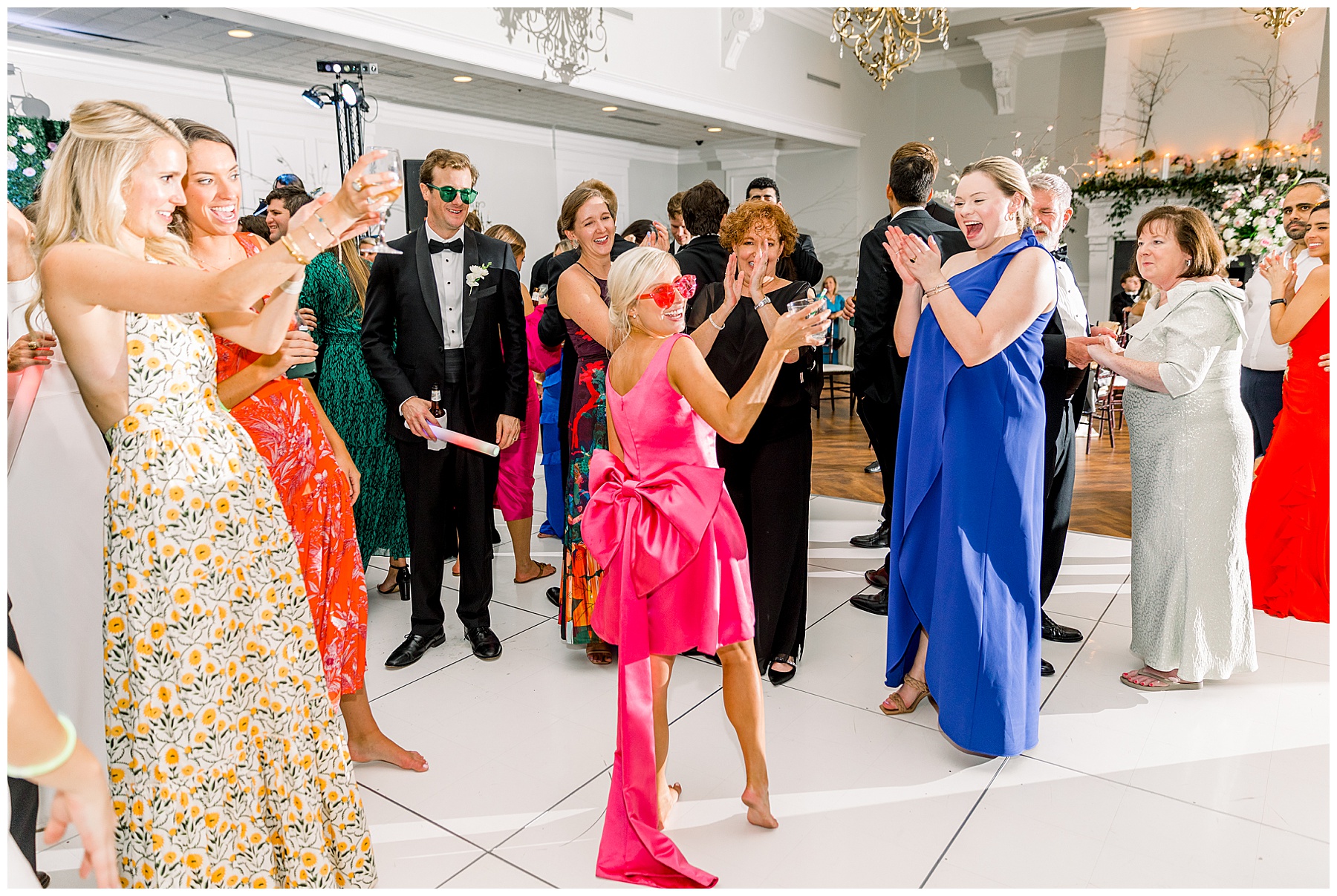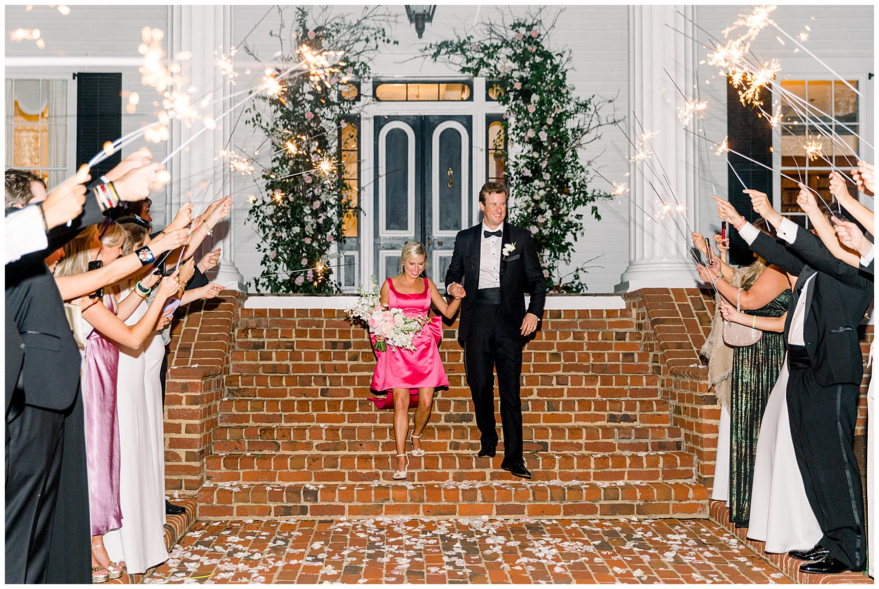 At the end of the evening, George and Olivia left in a getaway convertible through a tunnel of sparklers. Her pink dress POPPED in the darkness, and I loved how fun that look was!!!
