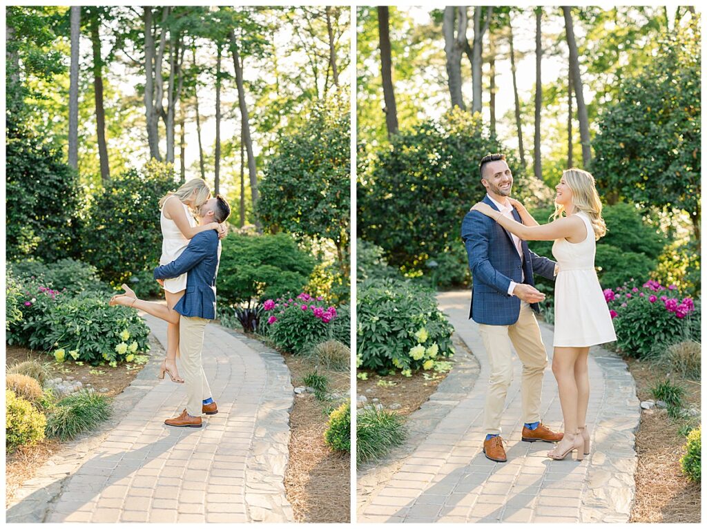 This session is a photographer’s DREAM – a fun + photogenic couple, full sunshine, no wind, a mild spring day, and flowers in bloom! I couldn’t ask for more!!! We were looking forward to photographing Eric and Rachel (after meeting them at our past couple Baker & Robert’s wedding in November – click HERE to see that blog!) and just knew it would be a great night! In fact, Phillip told me Eric was one of his favorite “Best Men” he’d met out of the 220+ weddings we’ve photographed!! And similarly, I loved seeing Rachel’s thoughtfulness towards Baker with gifting her a sweet handwritten note + a bottle of champagne during wedding glam time. Rachel & Eric are such a fun, thoughtful, dynamic duo and we couldn’t wait to catch up with them – and finally photograph THEM! :)