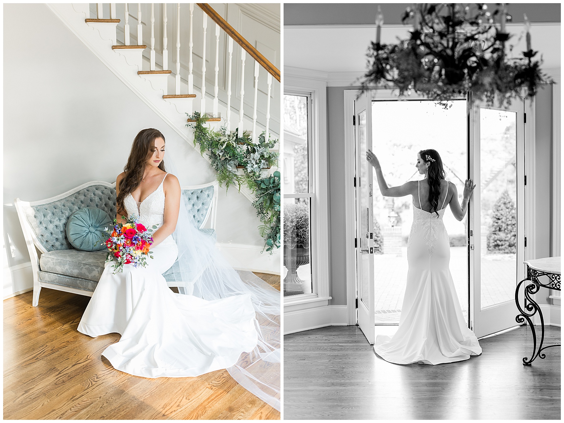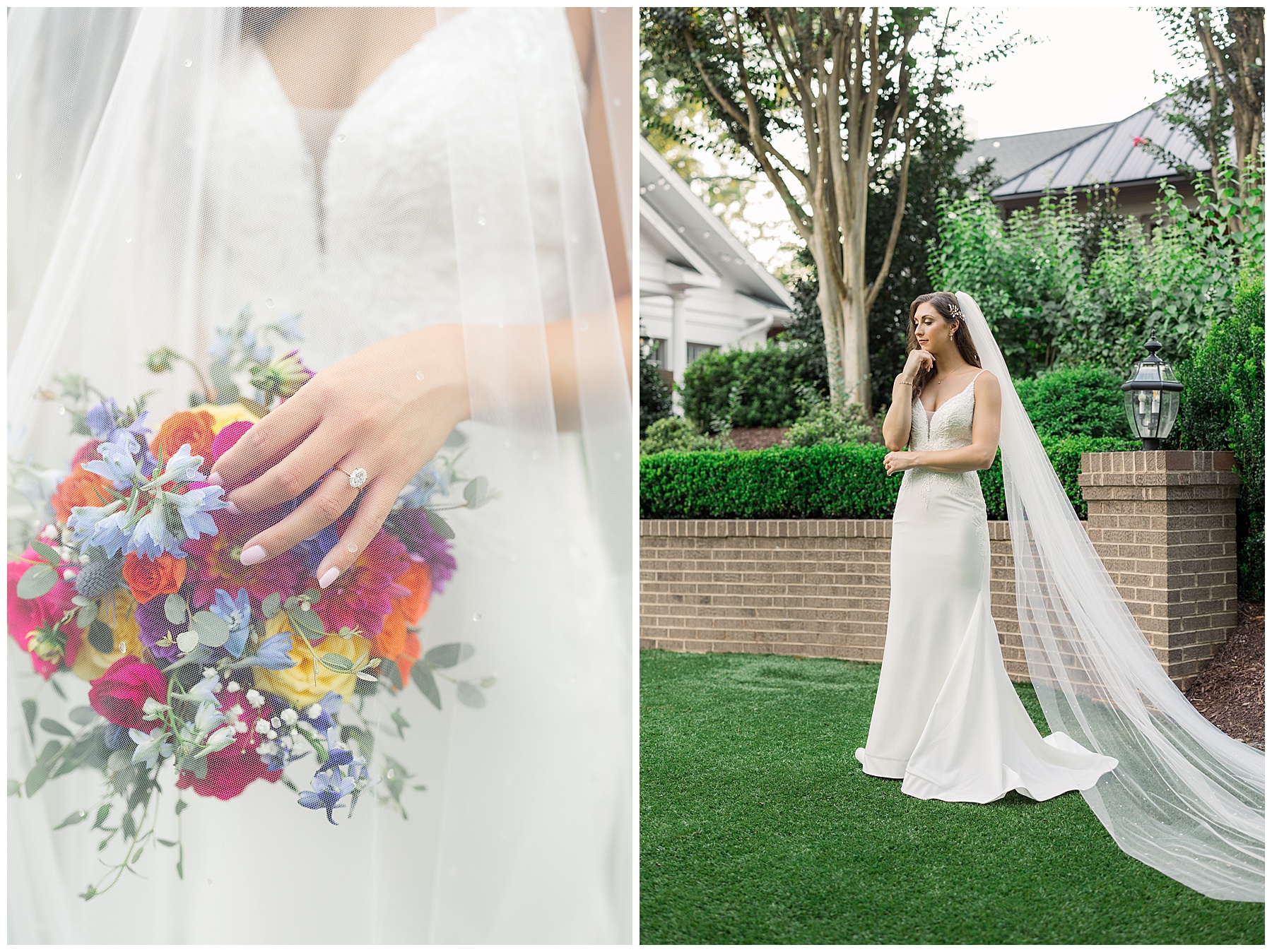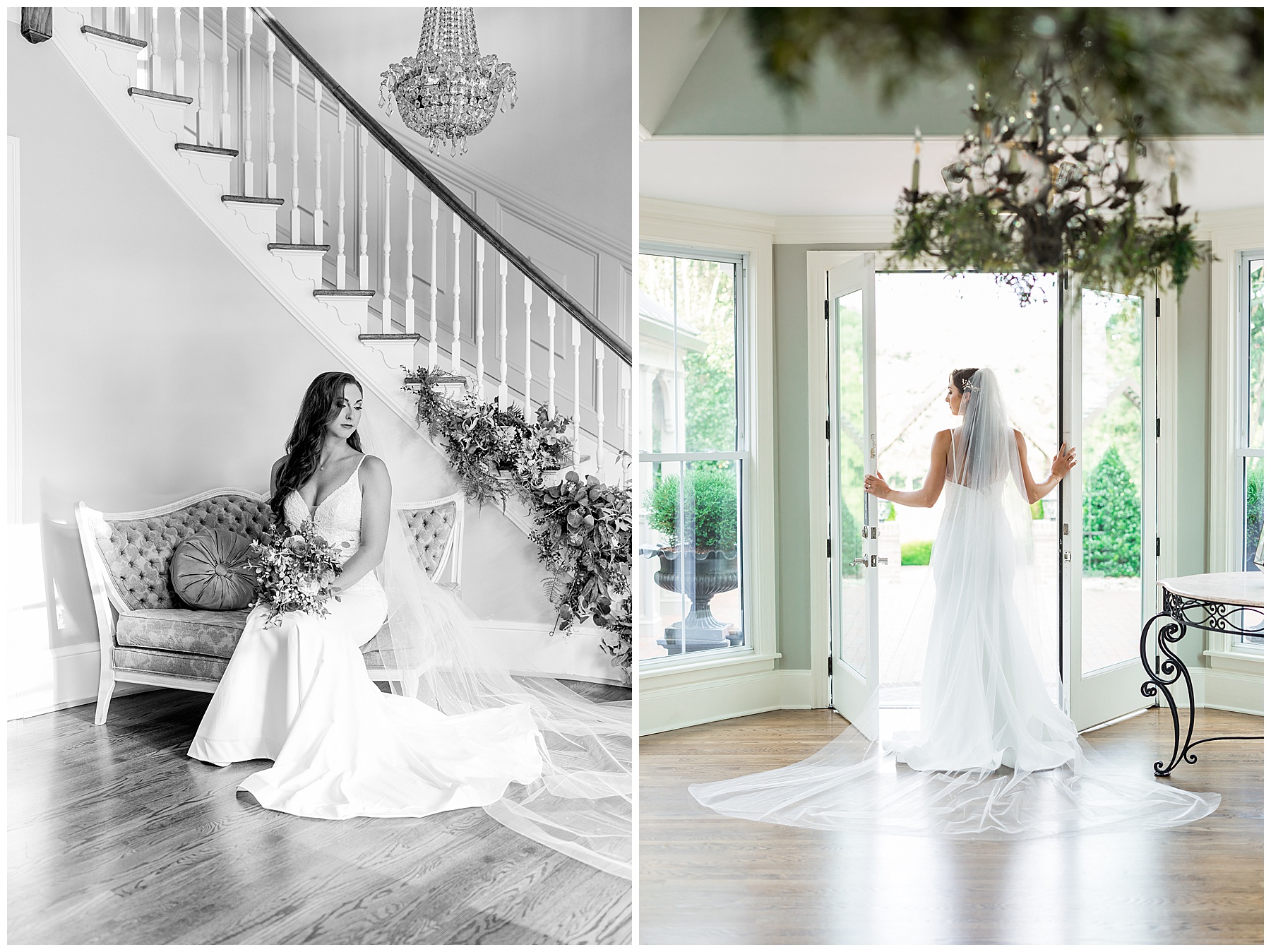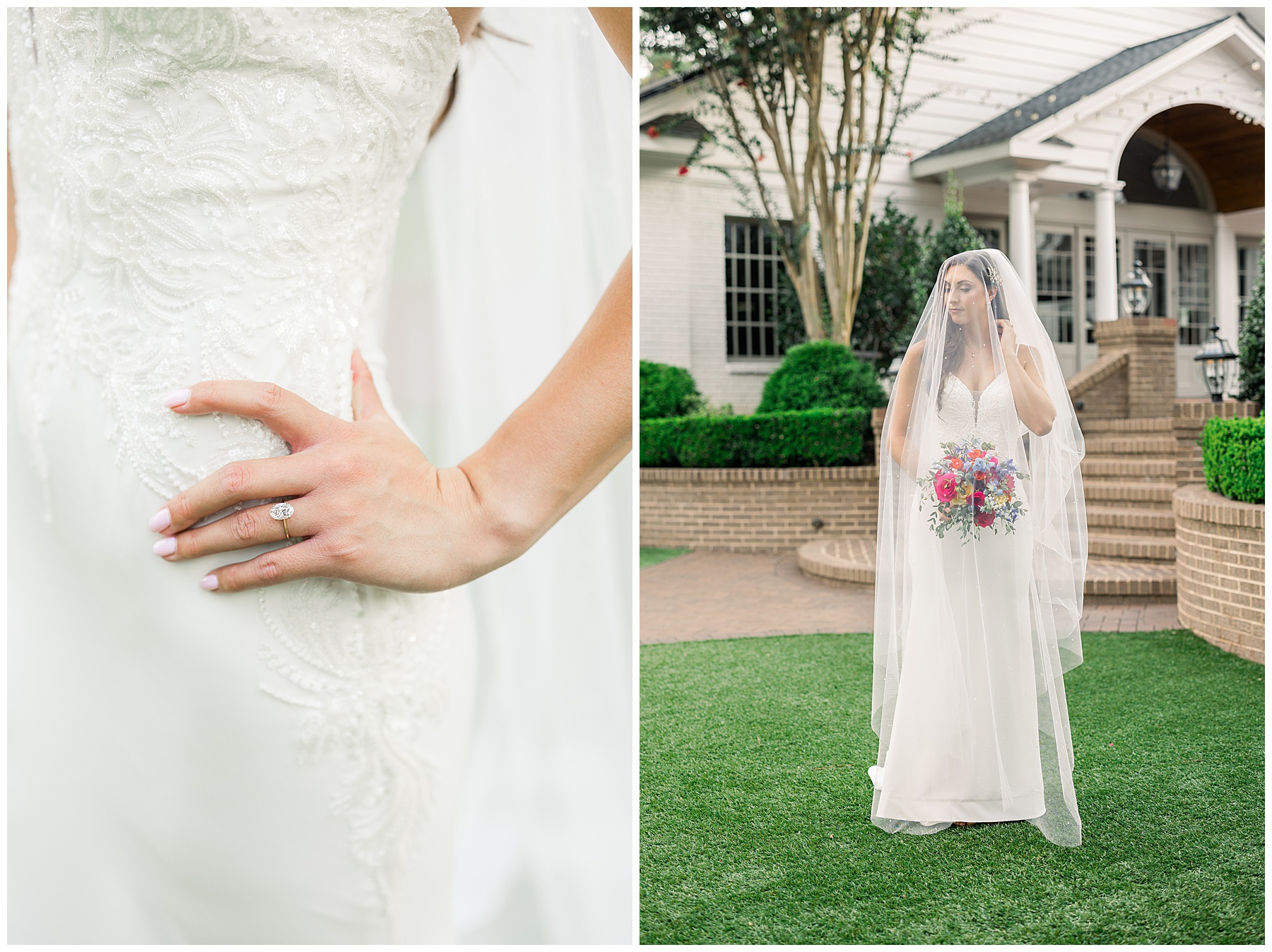 Randi’s sweet sister, Kara, came all the way from Kentucky to help with the session, see Randi in her dress for the first time, and also enjoy seeing The Highgrove for the first time too! I just love a sister bond, so it was extra special having her there with us to help! I loved hearing them brag on their mom who did all of Randi’s alterations (including making CUSTOM straps for Randi’s dress and CUSTOM making the veil with all of those beautiful “raindrops” on it!) Amazing!!! To be completely honest, I was beyond blown away with seeing Randi’s engagement ring for the first time in person – it is the most beautiful ring I’ve ever seen! Ben did an incredible job with designing it! I’m just obsessed! I loved that Randi also wore her Grandmother’s ring on her right hand – she had similar style with a classic simple gold band with her diamond. I loved that.