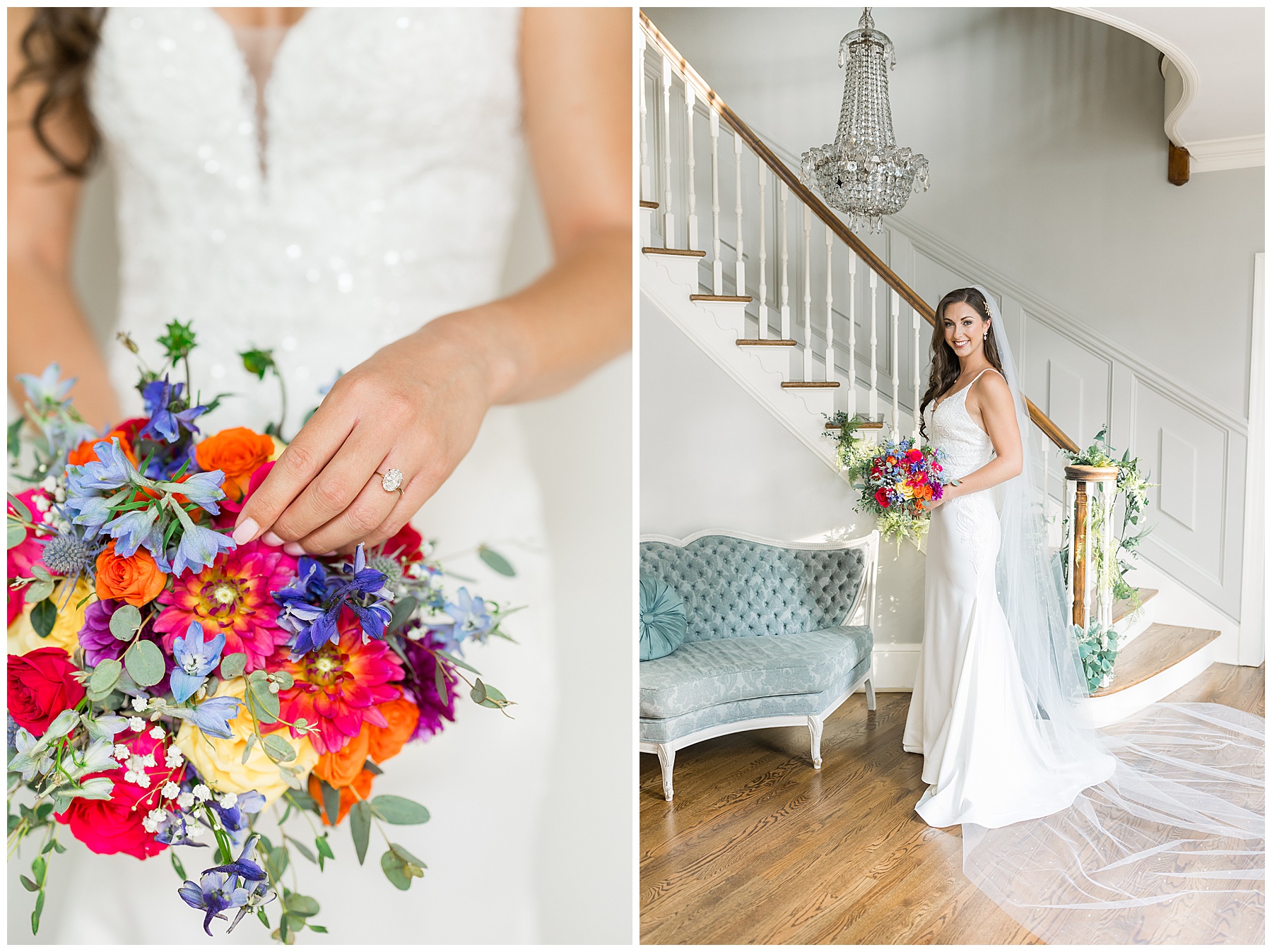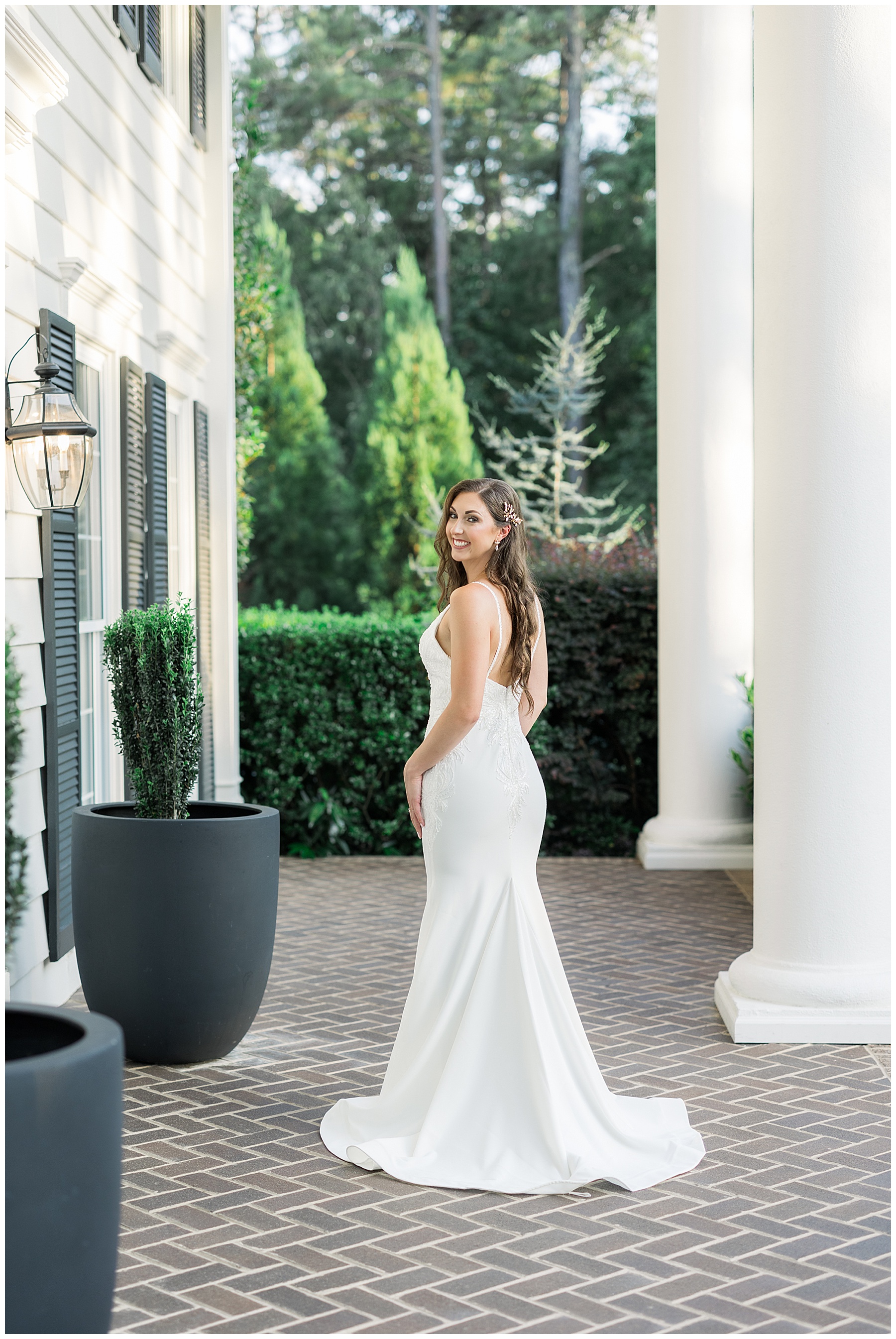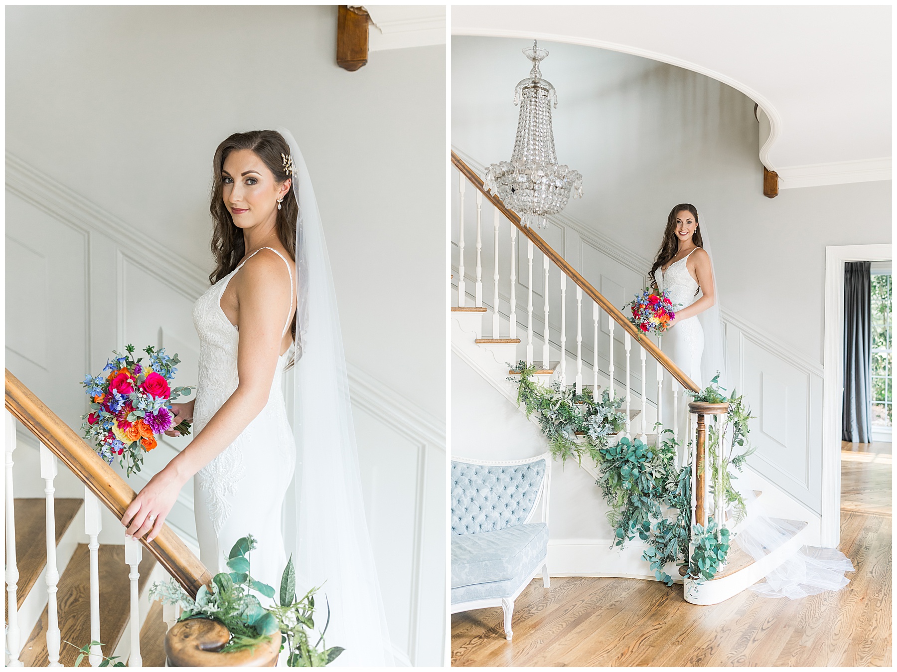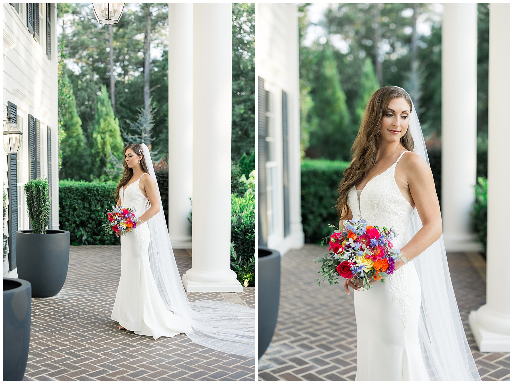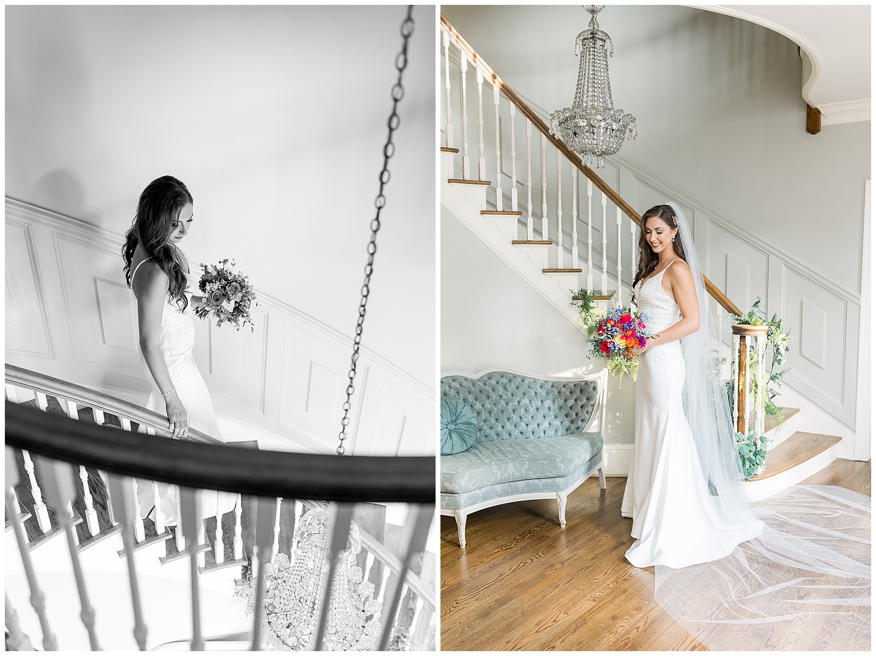 Randi’s sweet sister, Kara, came all the way from Kentucky to help with the session, see Randi in her dress for the first time, and also enjoy seeing The Highgrove for the first time too! I just love a sister bond, so it was extra special having her there with us to help! I loved hearing them brag on their mom who did all of Randi’s alterations (including making CUSTOM straps for Randi’s dress and CUSTOM making the veil with all of those beautiful “raindrops” on it!) Amazing!!! To be completely honest, I was beyond blown away with seeing Randi’s engagement ring for the first time in person – it is the most beautiful ring I’ve ever seen! Ben did an incredible job with designing it! I’m just obsessed! I loved that Randi also wore her Grandmother’s ring on her right hand – she had similar style with a classic simple gold band with her diamond. I loved that.