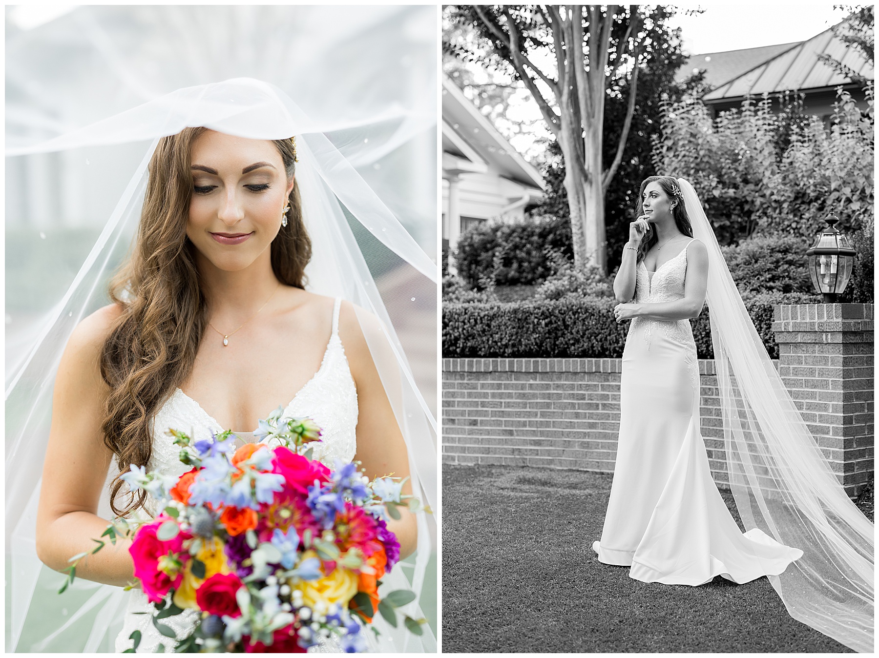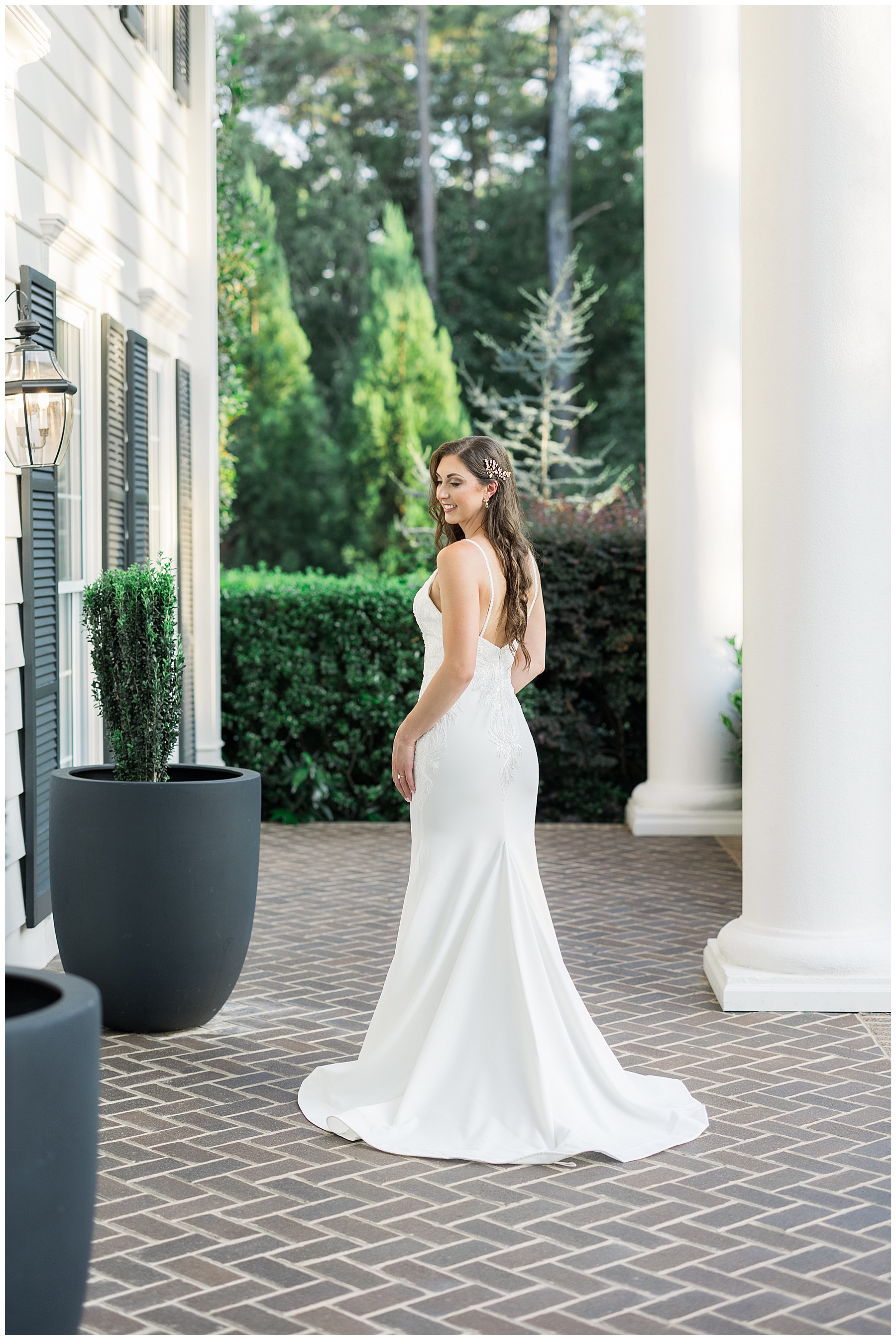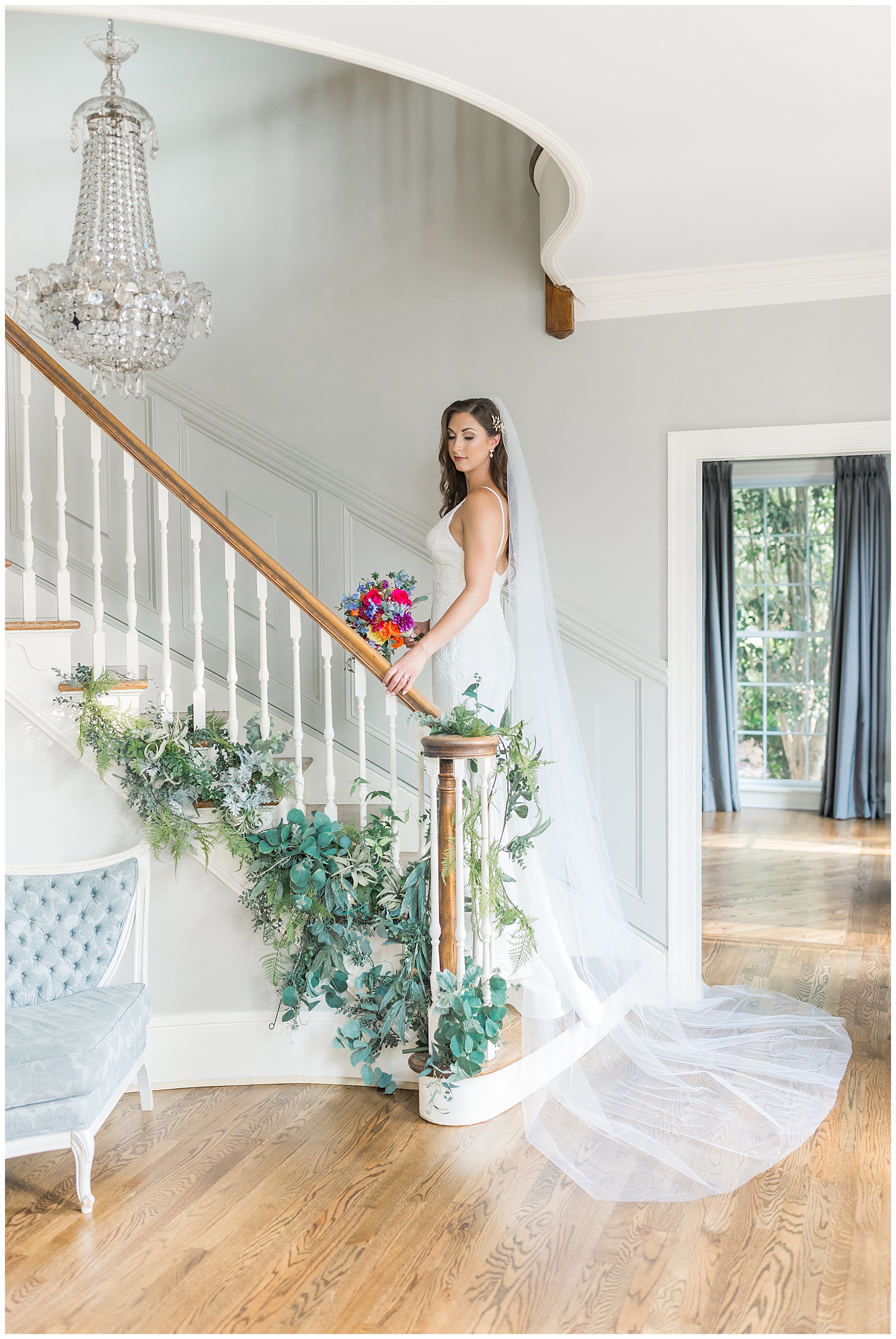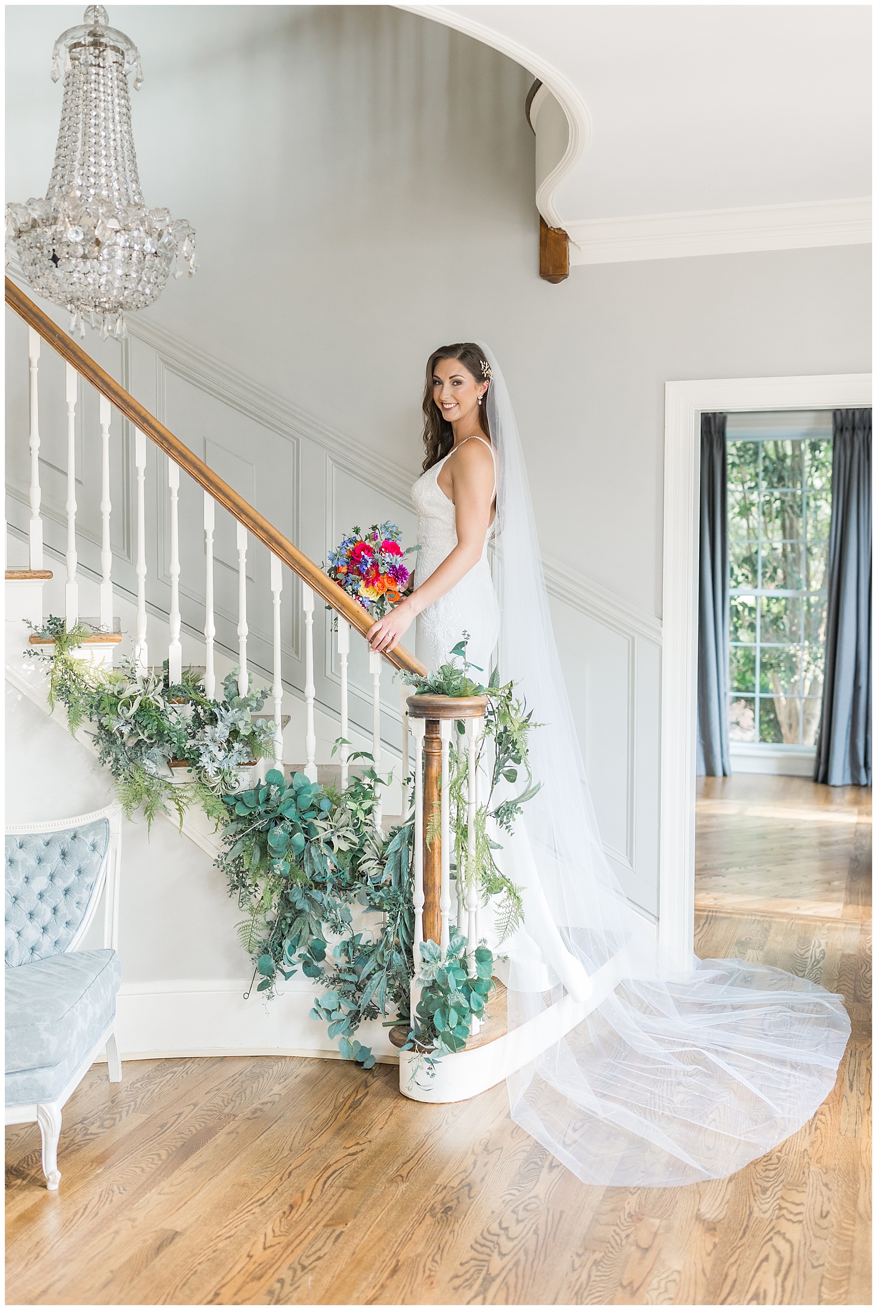 Randi’s sweet sister, Kara, came all the way from Kentucky to help with the session, see Randi in her dress for the first time, and also enjoy seeing The Highgrove for the first time too! I just love a sister bond, so it was extra special having her there with us to help! I loved hearing them brag on their mom who did all of Randi’s alterations (including making CUSTOM straps for Randi’s dress and CUSTOM making the veil with all of those beautiful “raindrops” on it!) Amazing!!! To be completely honest, I was beyond blown away with seeing Randi’s engagement ring for the first time in person – it is the most beautiful ring I’ve ever seen! Ben did an incredible job with designing it! I’m just obsessed! I loved that Randi also wore her Grandmother’s ring on her right hand – she had similar style with a classic simple gold band with her diamond. I loved that.