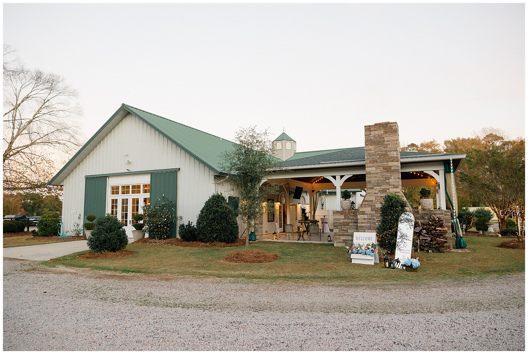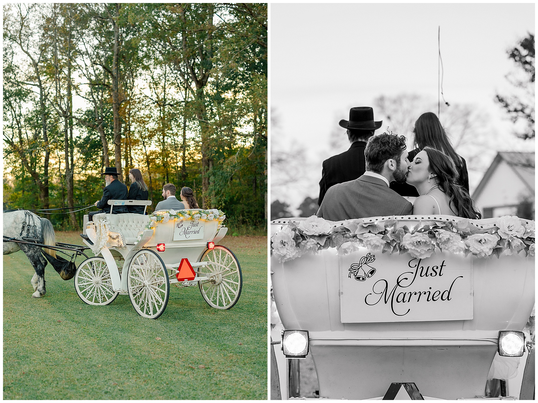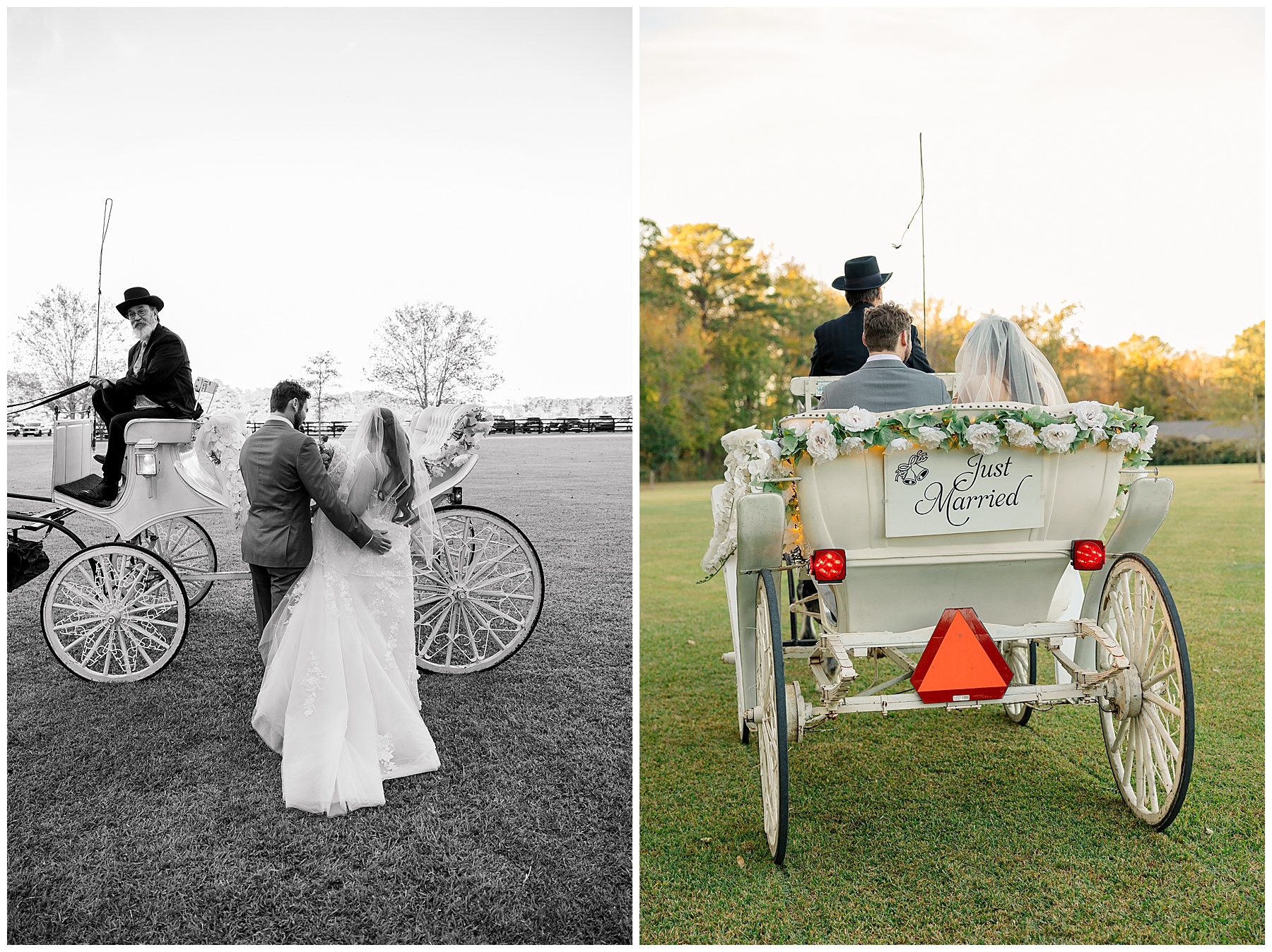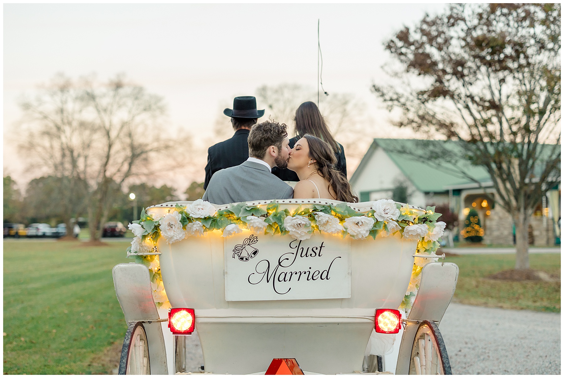 The ceremony space was just magical tucked into a little corner of the property with the sunset shining through the trees. I absolutely LOVED their welcome sign, with all the colorful flowers on it! Wow! Samantha & her dad were brought to the ceremony by horse & carriage, and afterwards, Nathan & Sam left the ceremony for a private carriage ride in it too! It was sooooo beautiful!