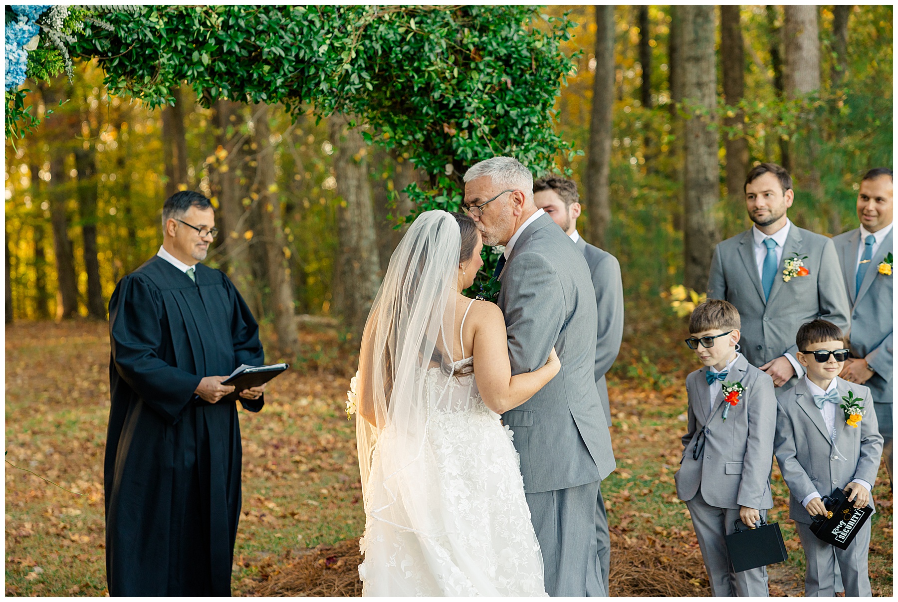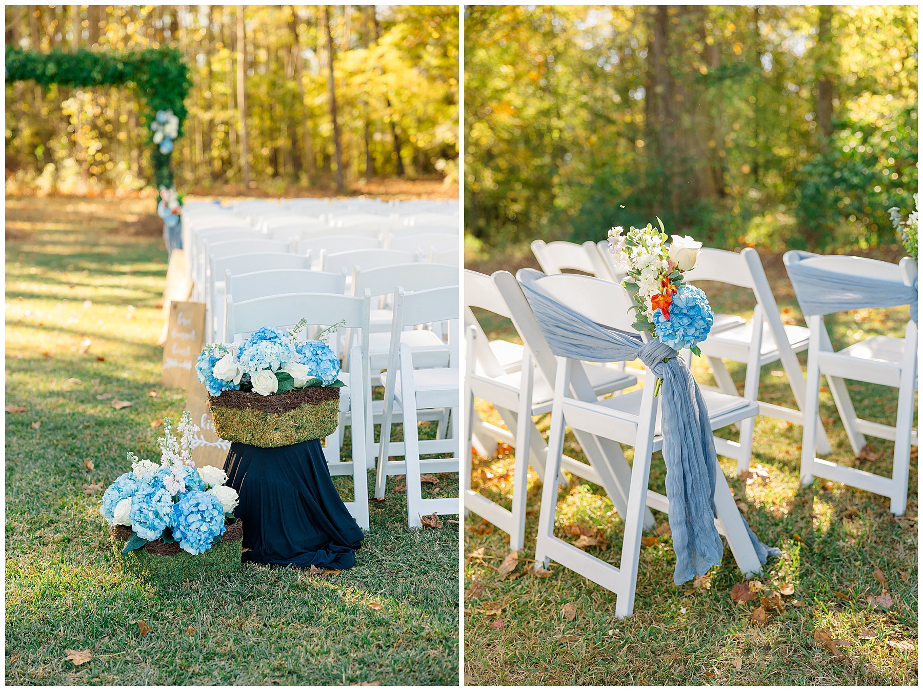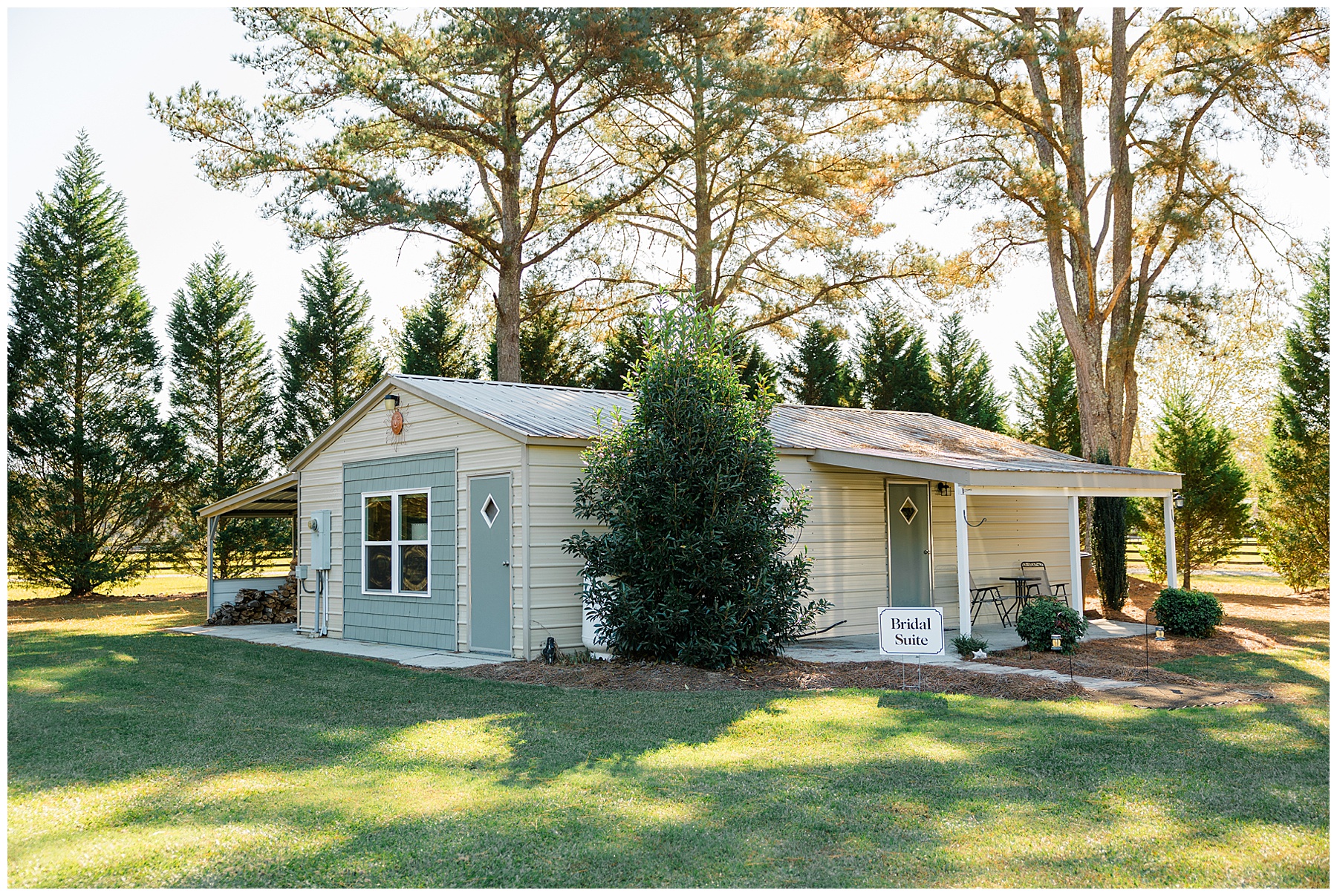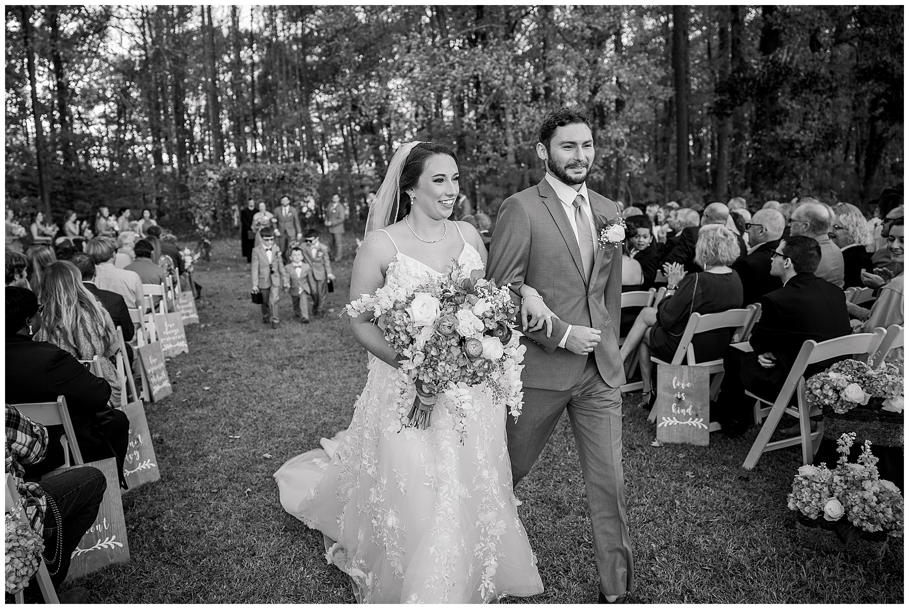 The ceremony space was just magical tucked into a little corner of the property with the sunset shining through the trees. I absolutely LOVED their welcome sign, with all the colorful flowers on it! Wow! Samantha & her dad were brought to the ceremony by horse & carriage, and afterwards, Nathan & Sam left the ceremony for a private carriage ride in it too! It was sooooo beautiful!