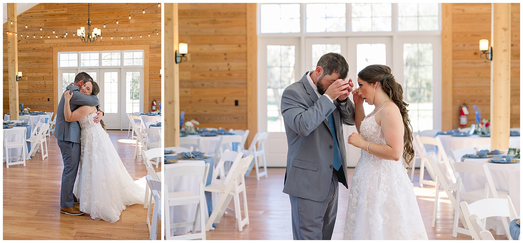 Samantha’s sweet mom & sisters helped her get ready, and her precious mother-in-law helped to pin a special gift into her dress. I just LOVE her dress, and was so excited to photograph her again in it. Once Samantha was dressed, she had a sweet First Look with her older brother, Lee, and his reaction was soooo precious! After that, Samantha’s daddy, Danny, had his special moment with his little girl!