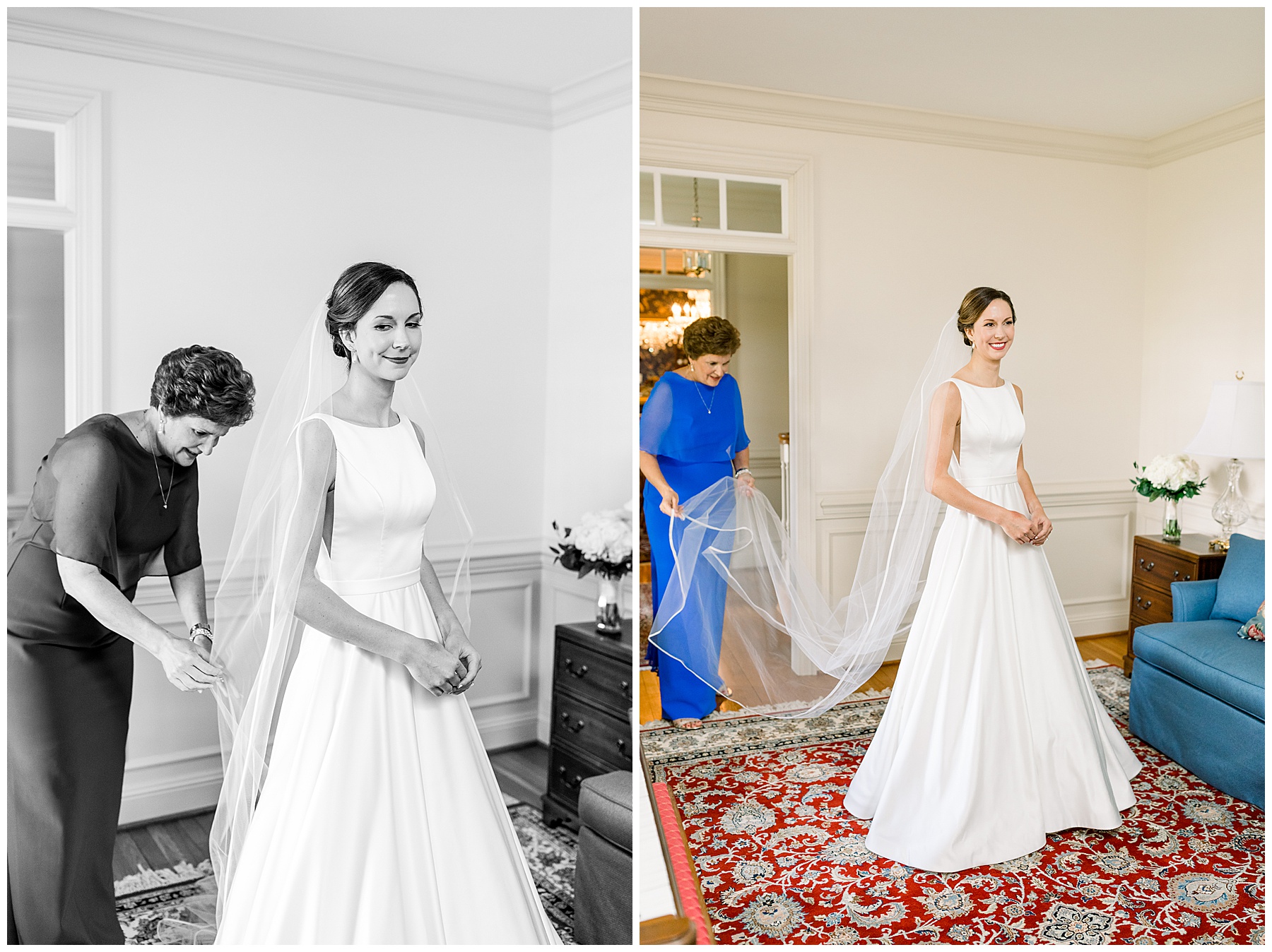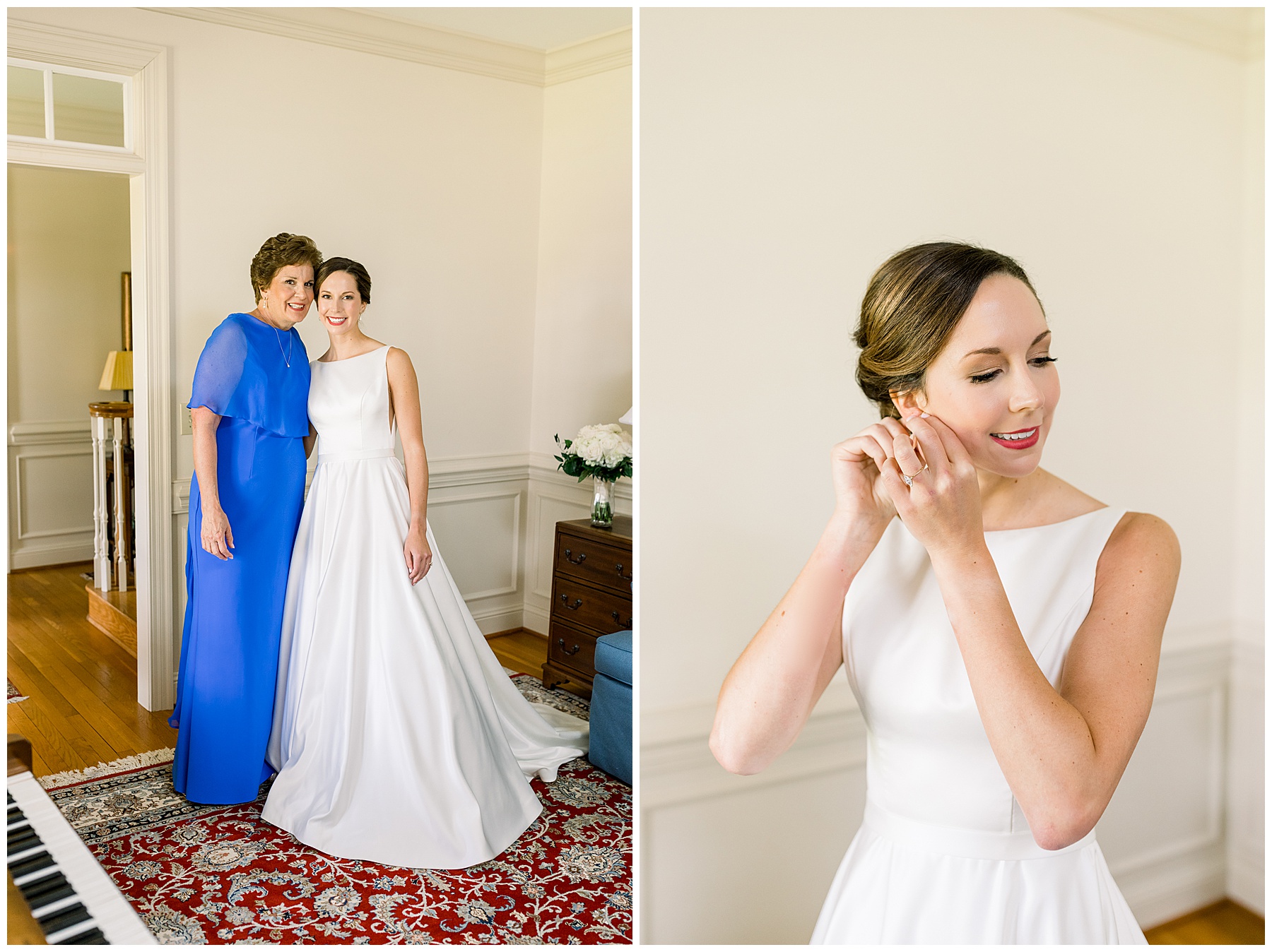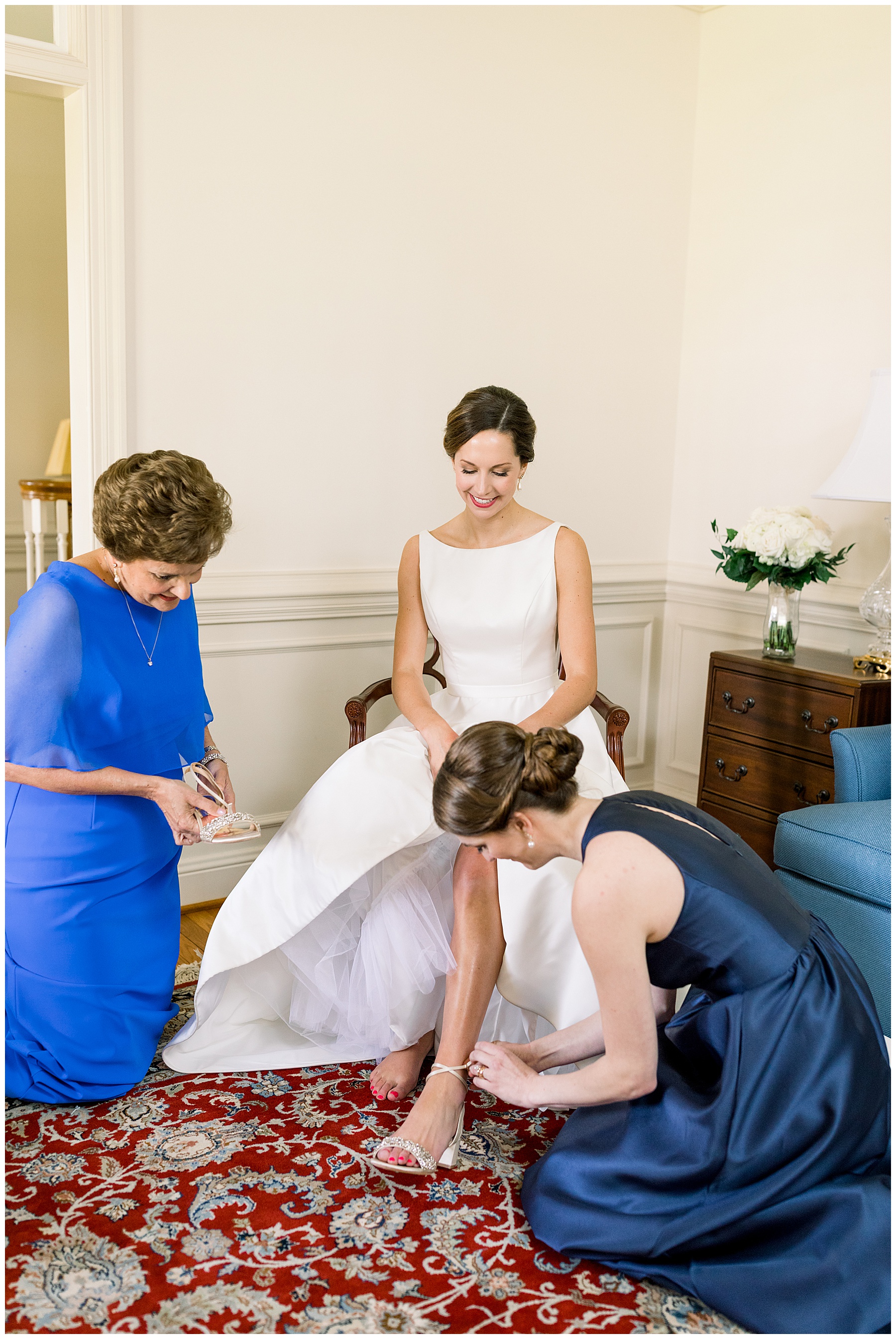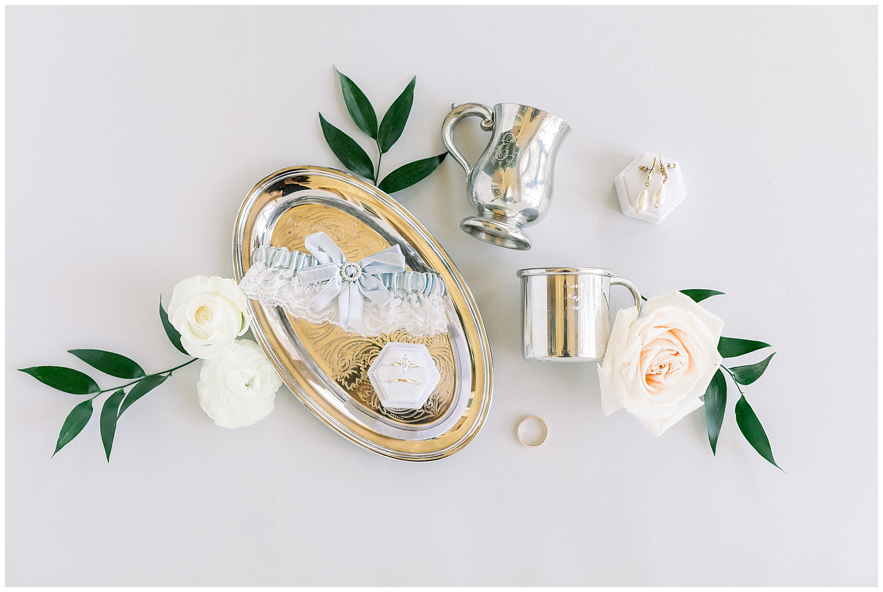 It was special to see Schuyler get ready in her childhood home. It was beautiful and fit the “traditional / elegant” theme of her wedding perfectly. Her sweet mom was so precious – offering us food & water, making sure we had all the details we needed, and was so accommodating! Katelyn (Schuyler’s sister in law and MOH was also the best – helping out, keeping things on schedule, and making everyone laugh) I loved the long robes the ladies wore getting ready, and we had the best morning of getting photos done. I especially loved photographing a few sentimental pieces of Schuyler’s: her MOM’s wedding earrings AND her mom’s garter, (Schuyler wore both of them on her wedding day too!) and some silver pieces from when she was born. So special!!!! I love when there are pieces passed down in a family & hearing the stories behind them. :)