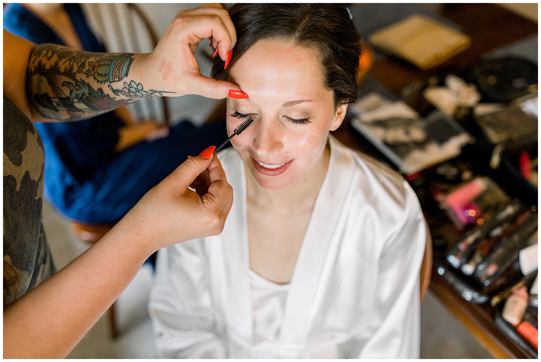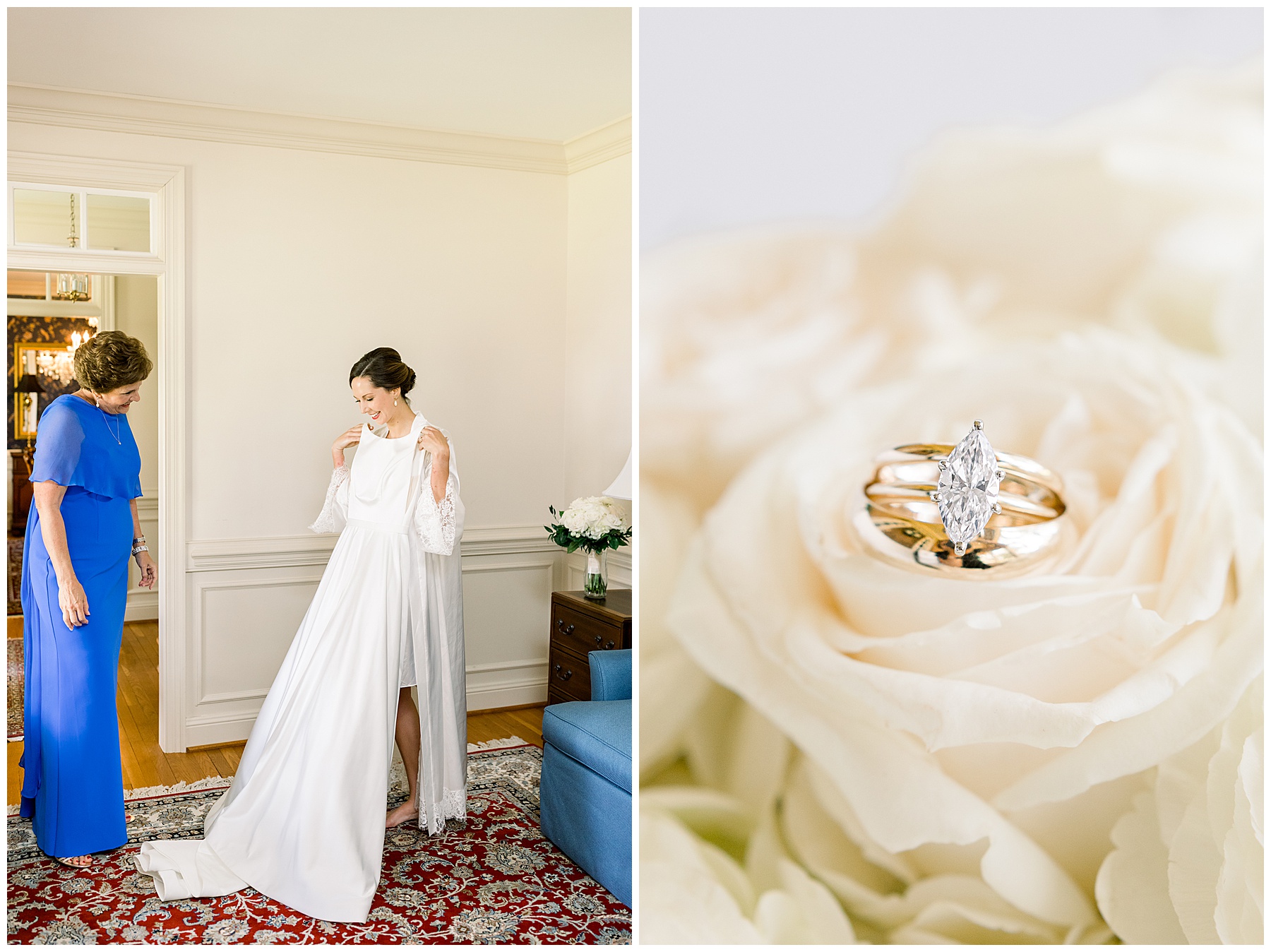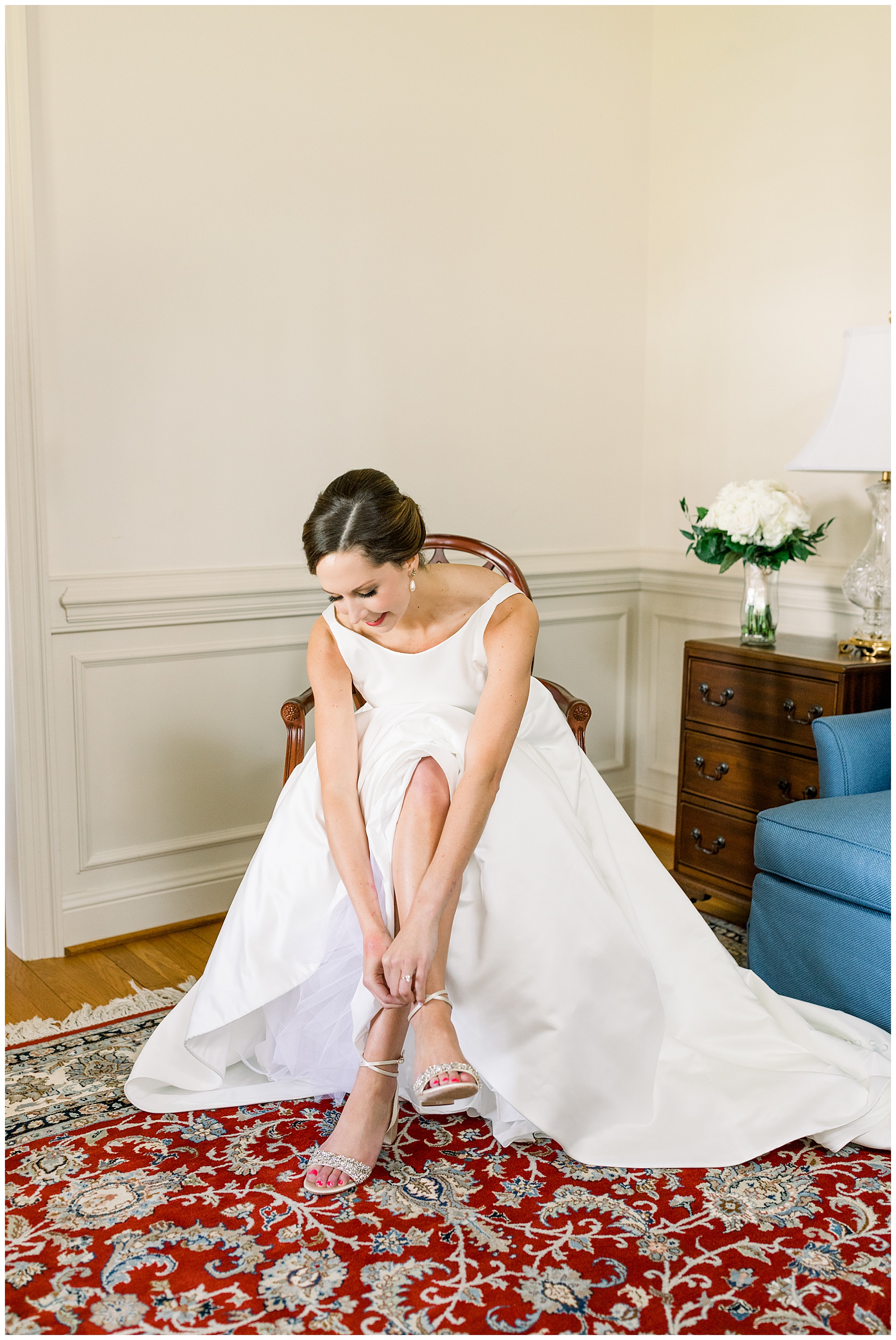 It was special to see Schuyler get ready in her childhood home. It was beautiful and fit the “traditional / elegant” theme of her wedding perfectly. Her sweet mom was so precious – offering us food & water, making sure we had all the details we needed, and was so accommodating! Katelyn (Schuyler’s sister in law and MOH was also the best – helping out, keeping things on schedule, and making everyone laugh) I loved the long robes the ladies wore getting ready, and we had the best morning of getting photos done. I especially loved photographing a few sentimental pieces of Schuyler’s: her MOM’s wedding earrings AND her mom’s garter, (Schuyler wore both of them on her wedding day too!) and some silver pieces from when she was born. So special!!!! I love when there are pieces passed down in a family & hearing the stories behind them. :)