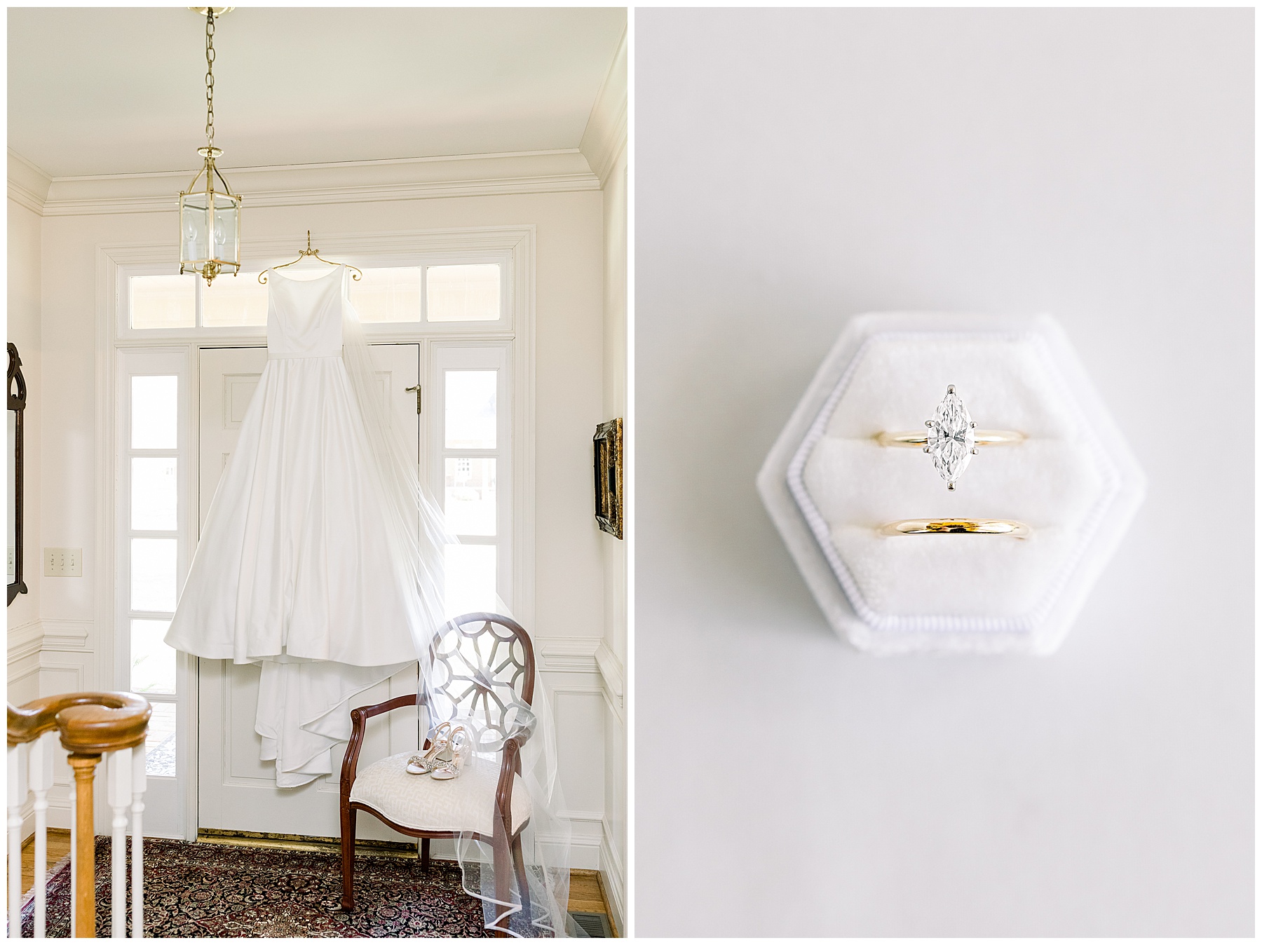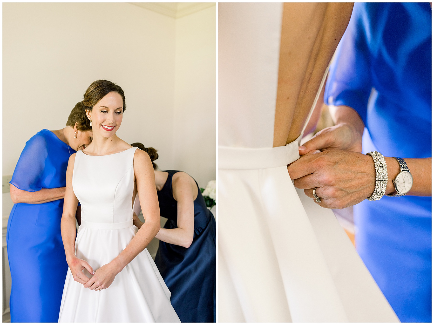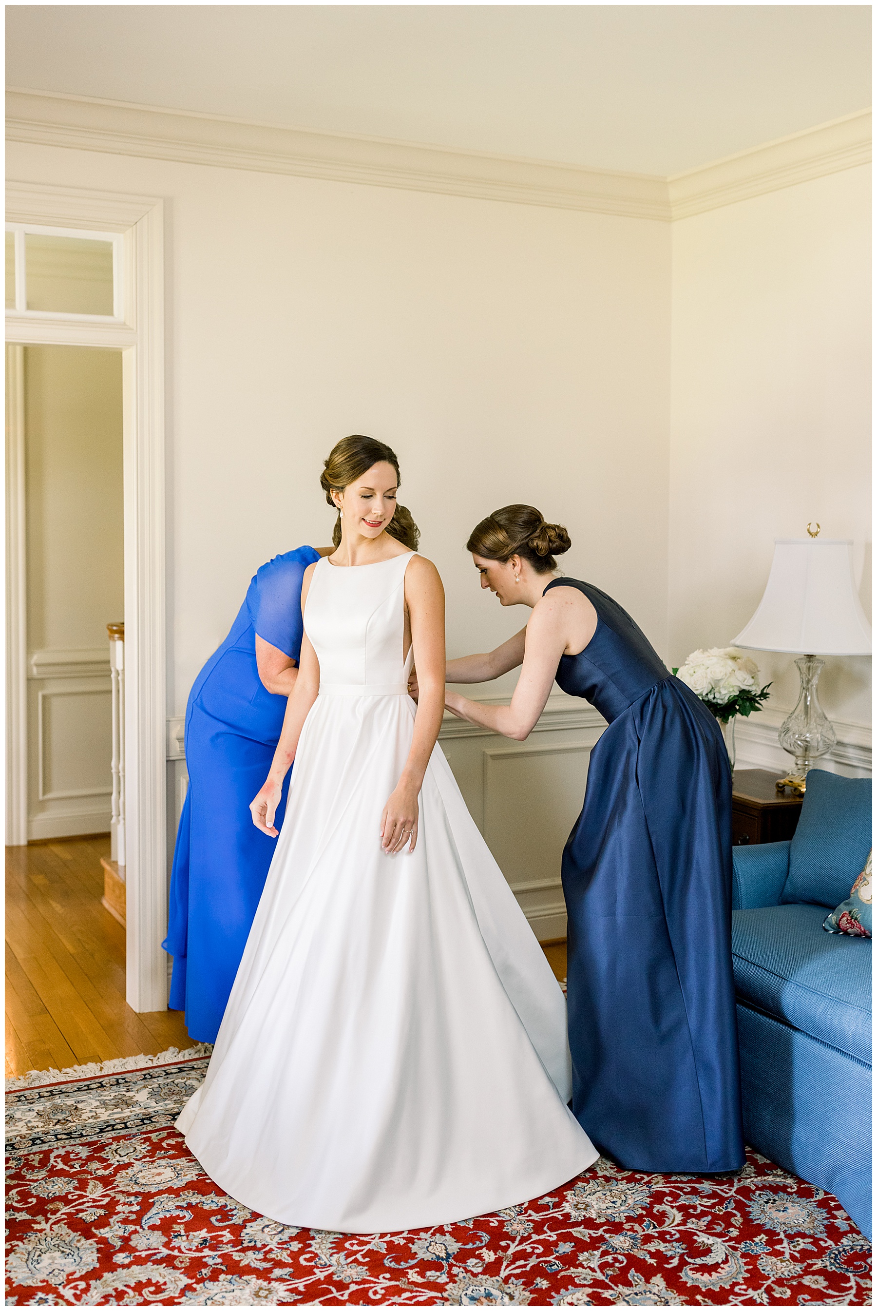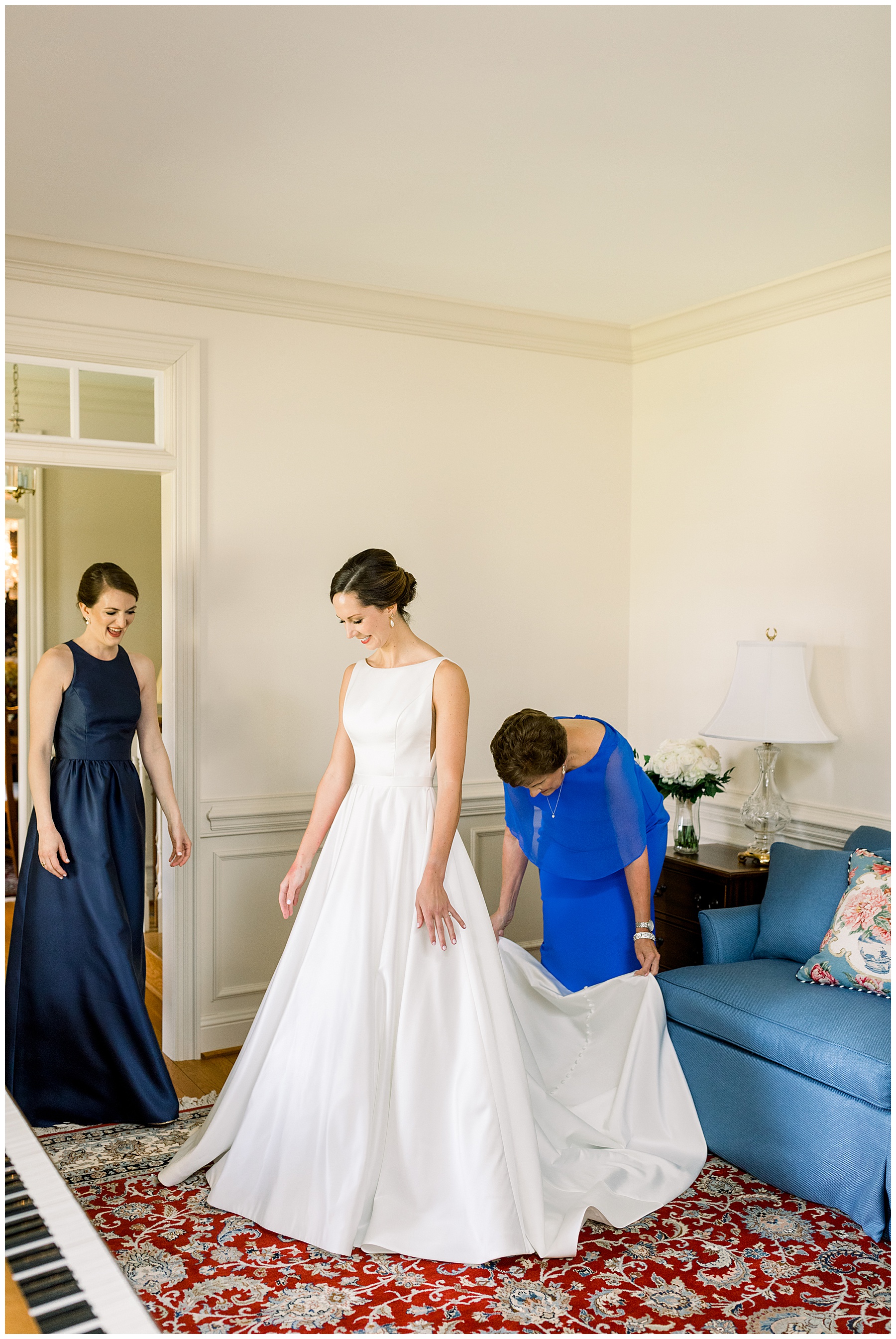 It was special to see Schuyler get ready in her childhood home. It was beautiful and fit the “traditional / elegant” theme of her wedding perfectly. Her sweet mom was so precious – offering us food & water, making sure we had all the details we needed, and was so accommodating! Katelyn (Schuyler’s sister in law and MOH was also the best – helping out, keeping things on schedule, and making everyone laugh) I loved the long robes the ladies wore getting ready, and we had the best morning of getting photos done. I especially loved photographing a few sentimental pieces of Schuyler’s: her MOM’s wedding earrings AND her mom’s garter, (Schuyler wore both of them on her wedding day too!) and some silver pieces from when she was born. So special!!!! I love when there are pieces passed down in a family & hearing the stories behind them. :)