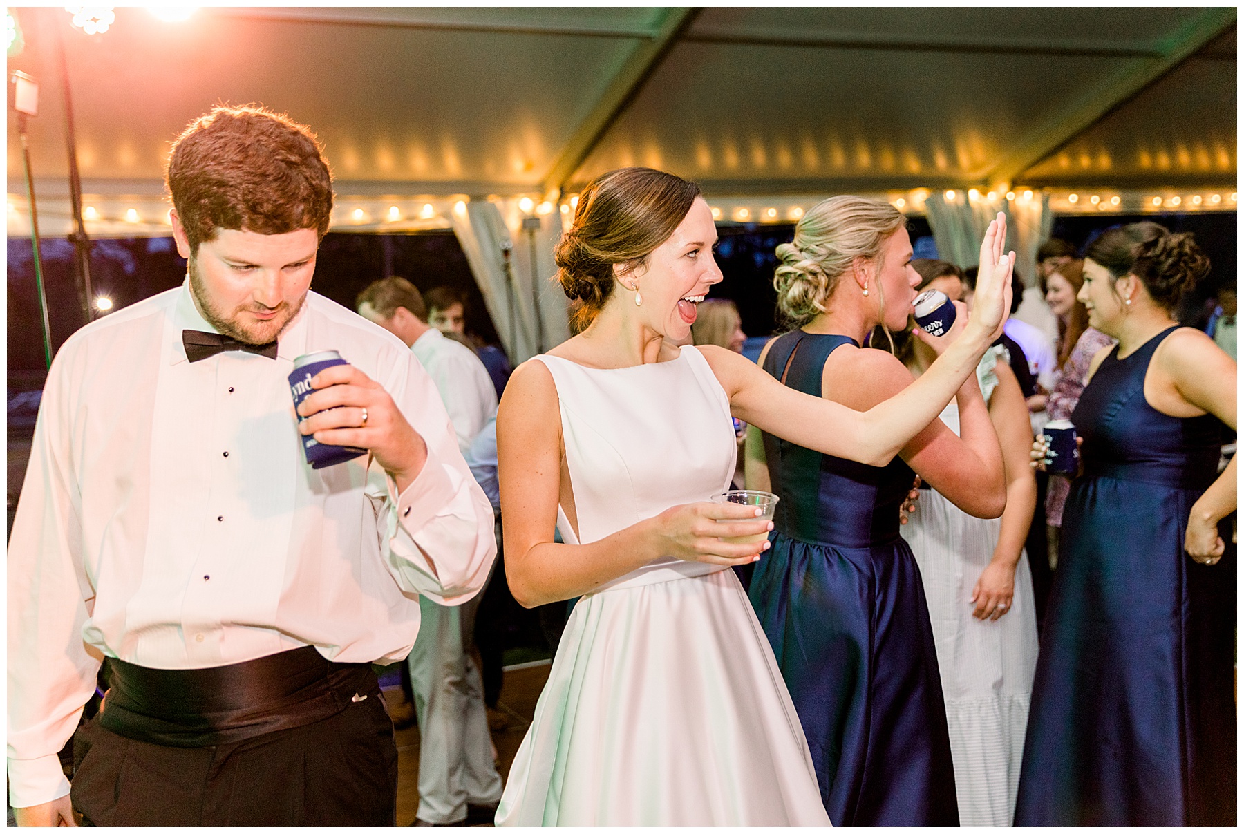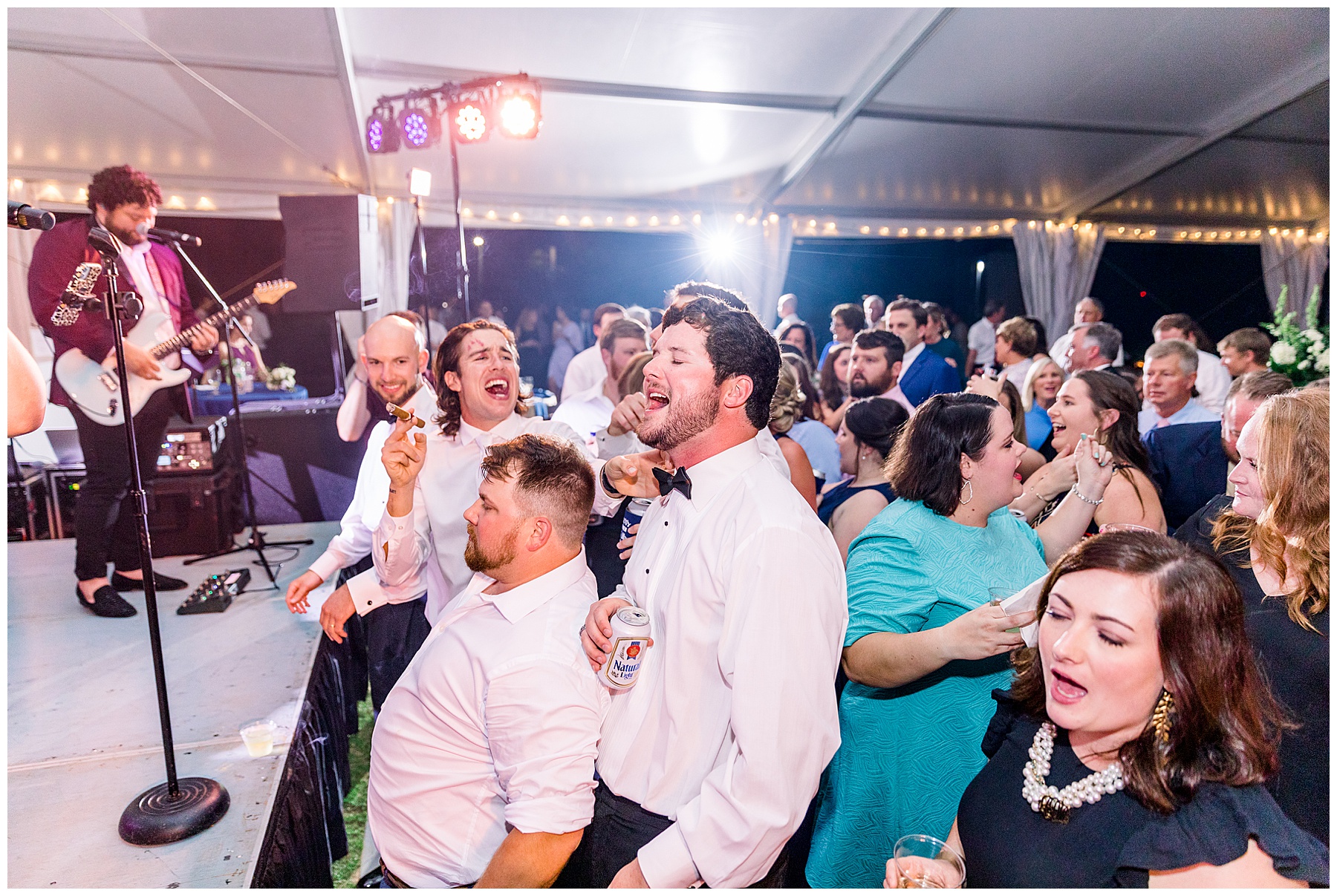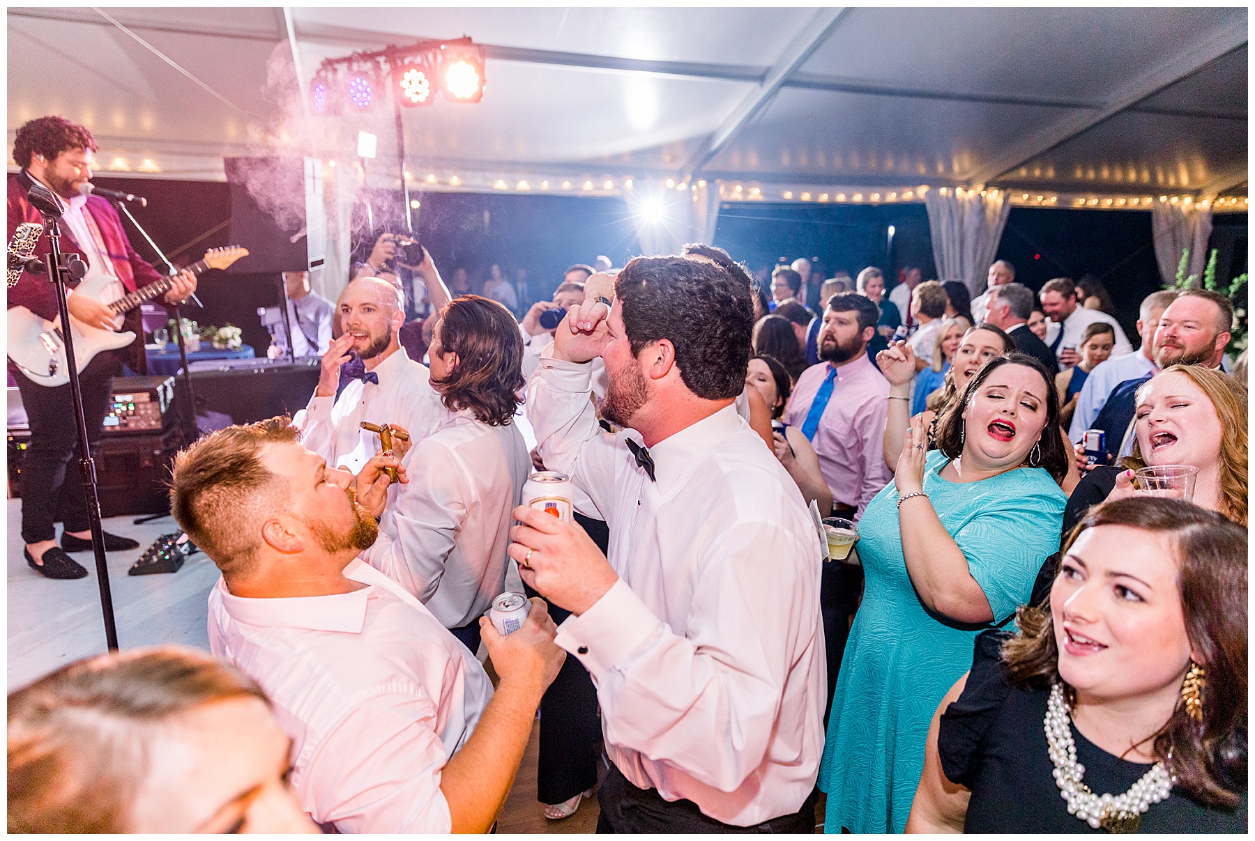Thankfully, we finished all the photos without a downpour, and we headed into the reception early! Win win!!! The reception kicked off with a bang, with food by Something Different and bartending by Brewmasters Mobile (both from Wilson, yay for our little hometown!) and best of all, The Band Punch was there to give one HECK of a PARTY!!!!