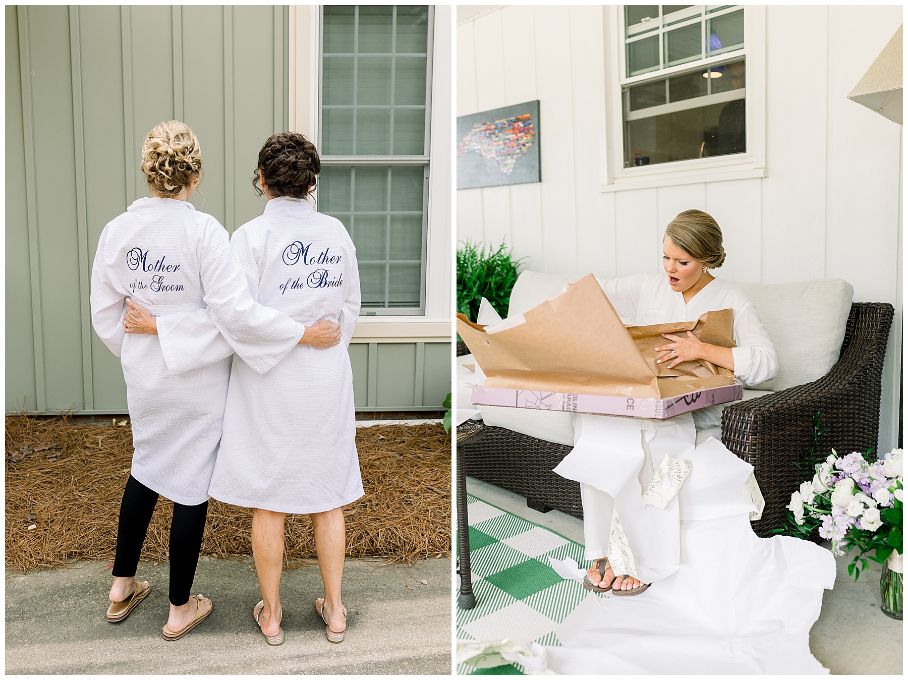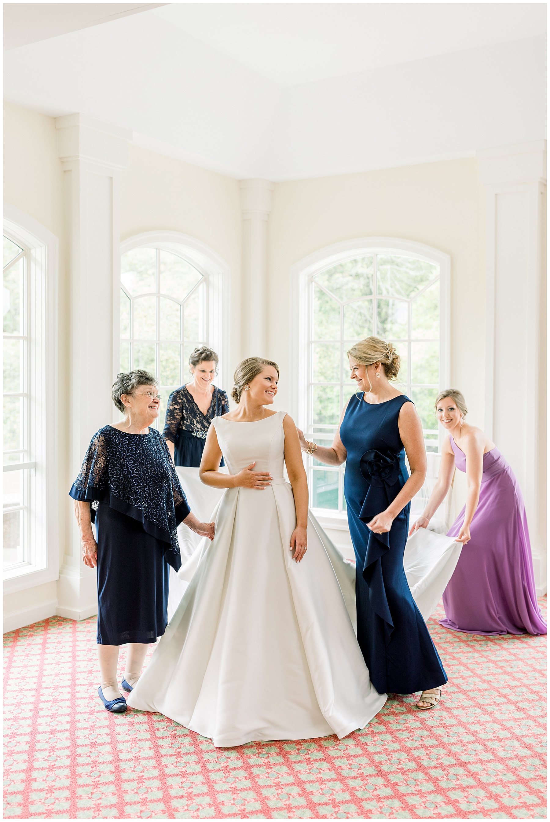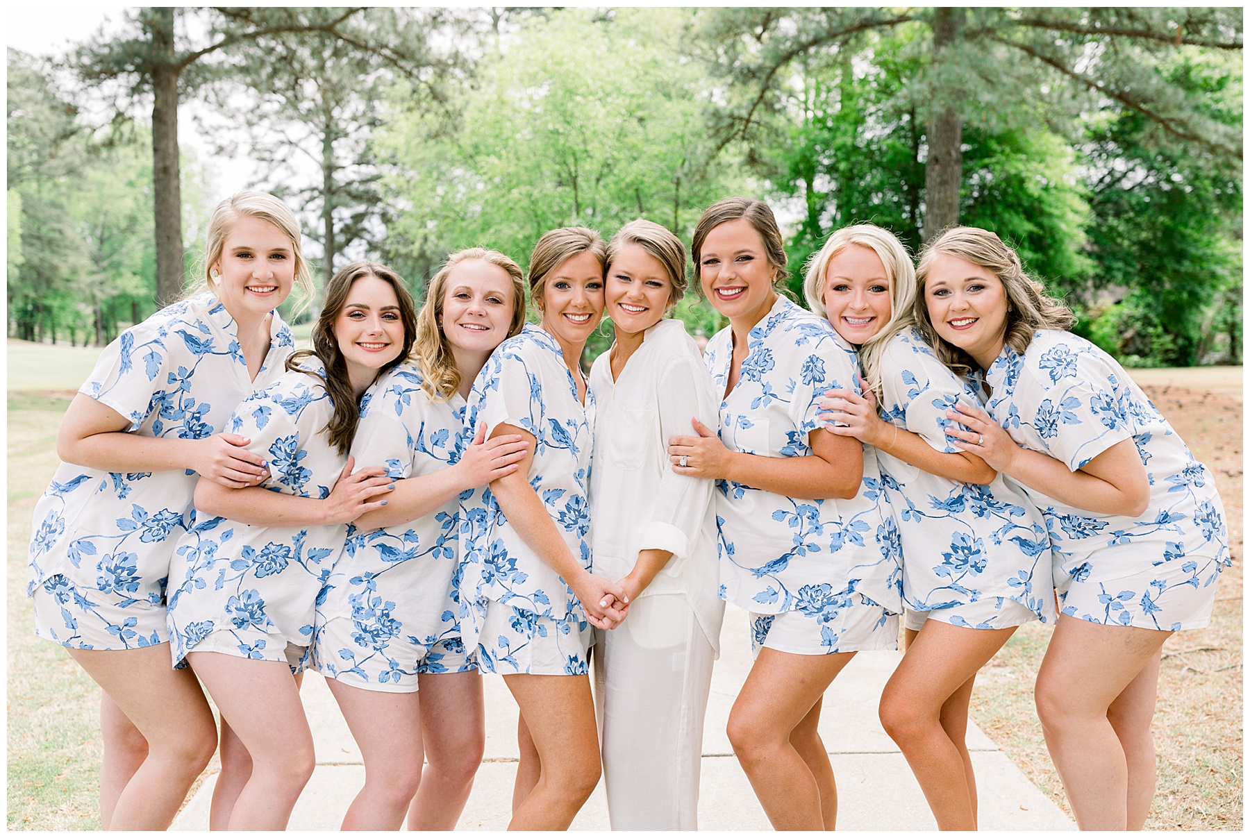 We started off the day with the girls who were all ready EARLY (yayyy for that!) and they enjoyed snacks, hanging out, and lounging in their cute pjs! Shannon opened a sweet gift from Daniel – a custom watercolor portrait. After getting dressed with 3 generations of ladies in her family PLUS including her new mother-in-law (so precious!) Shannon had a First Look with her bridesmaids and with her daddy. What a sweet morning!