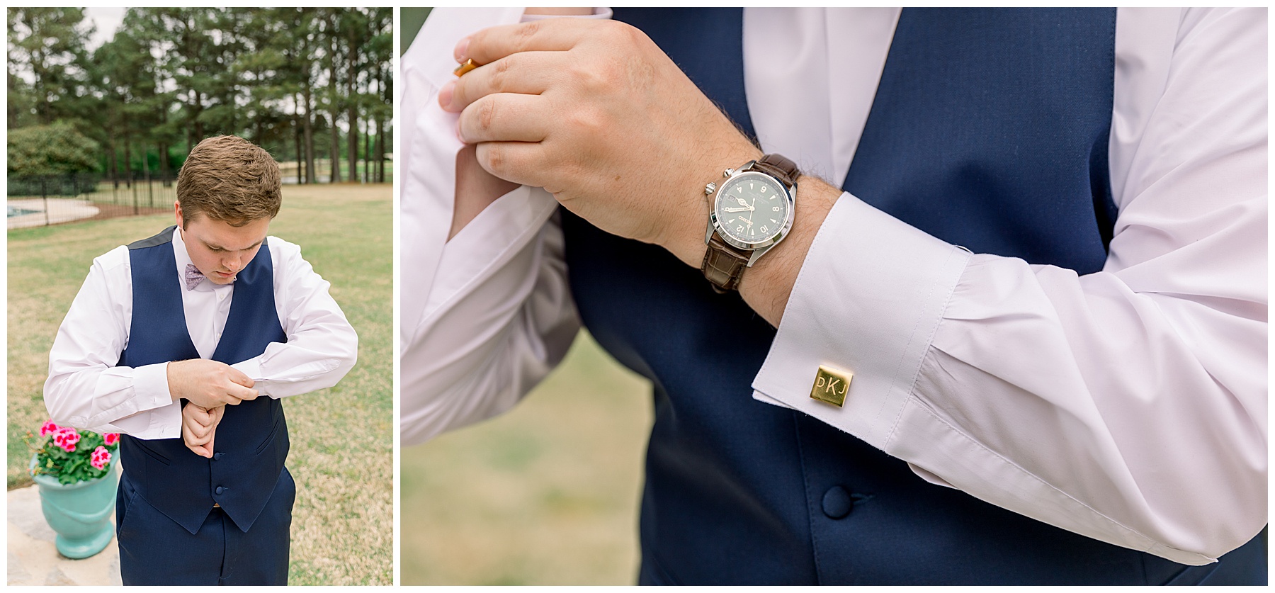 Daniel and the guys were so easy going, and Phillip had a fun time with them at Daniel’s grandparents home! They had a beautiful pond backdrop for photos, and Shannon surprised Daniel with monogrammed cufflinks to wear during his photos.