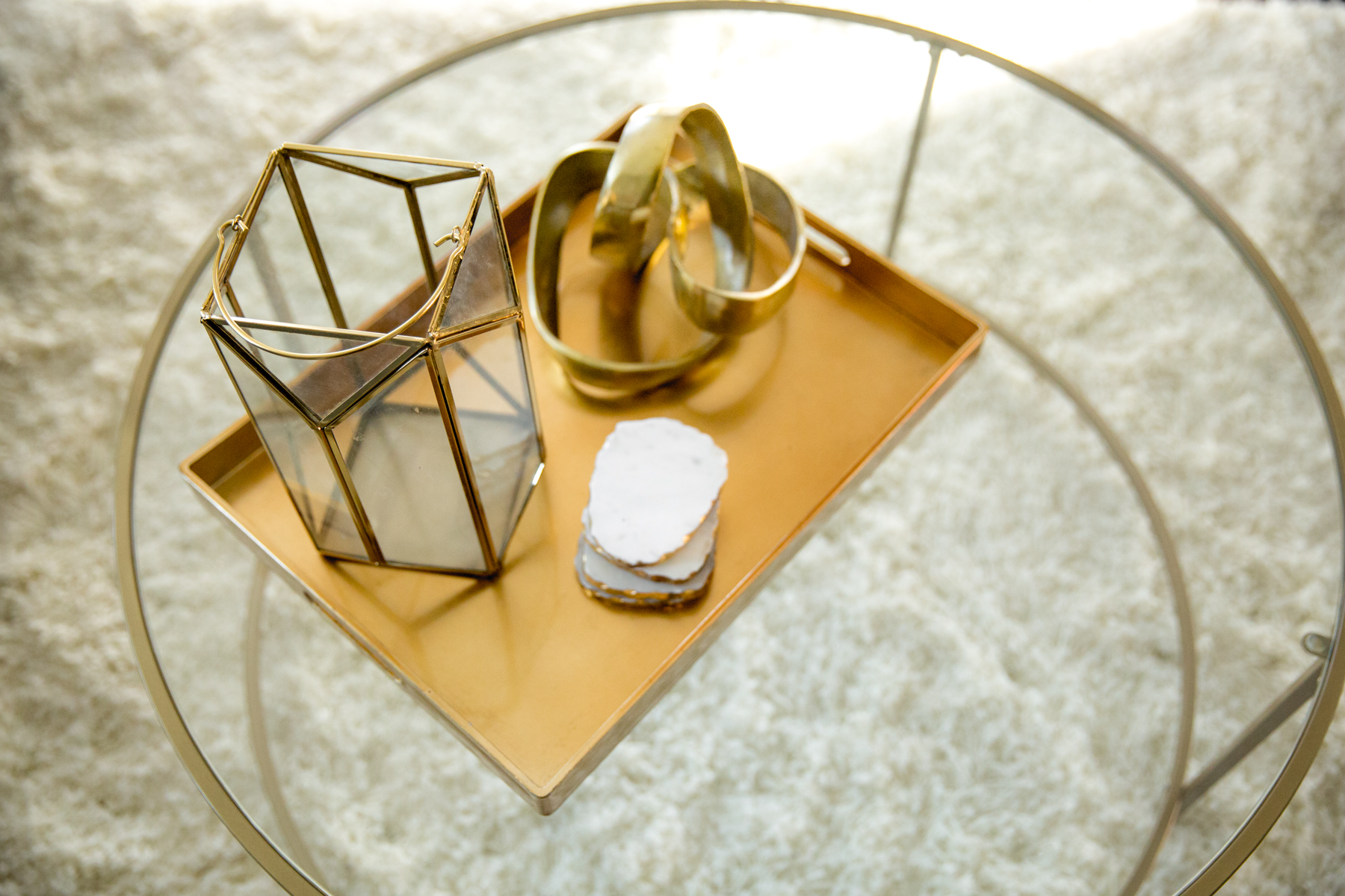My sisters & mom gave me some of the gold décor pieces, and I found the shag rug and coffee table online (with a coupon!!!) to finish out the room.